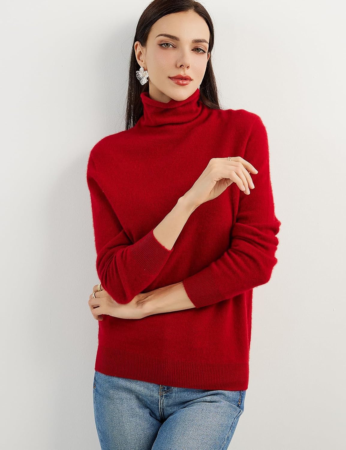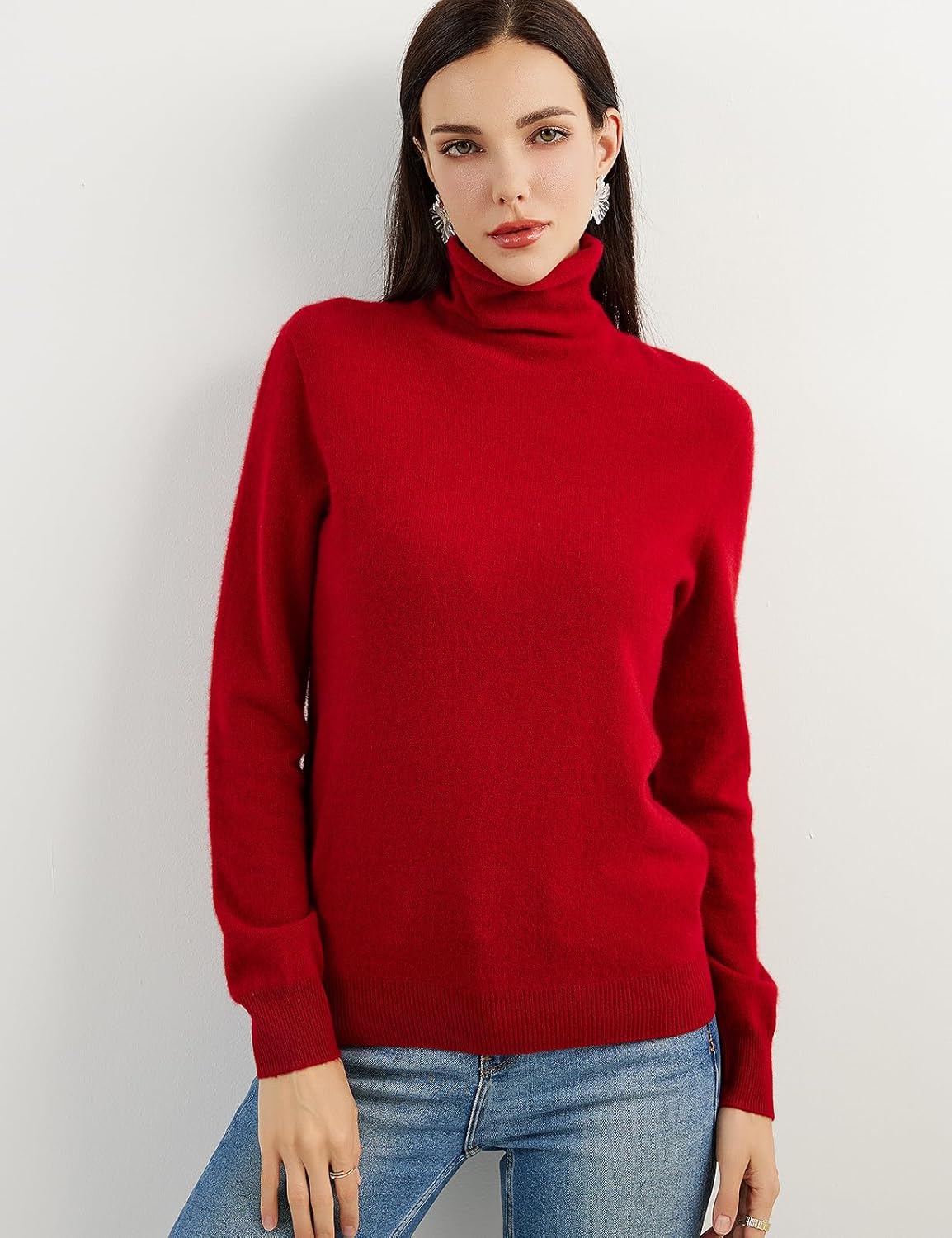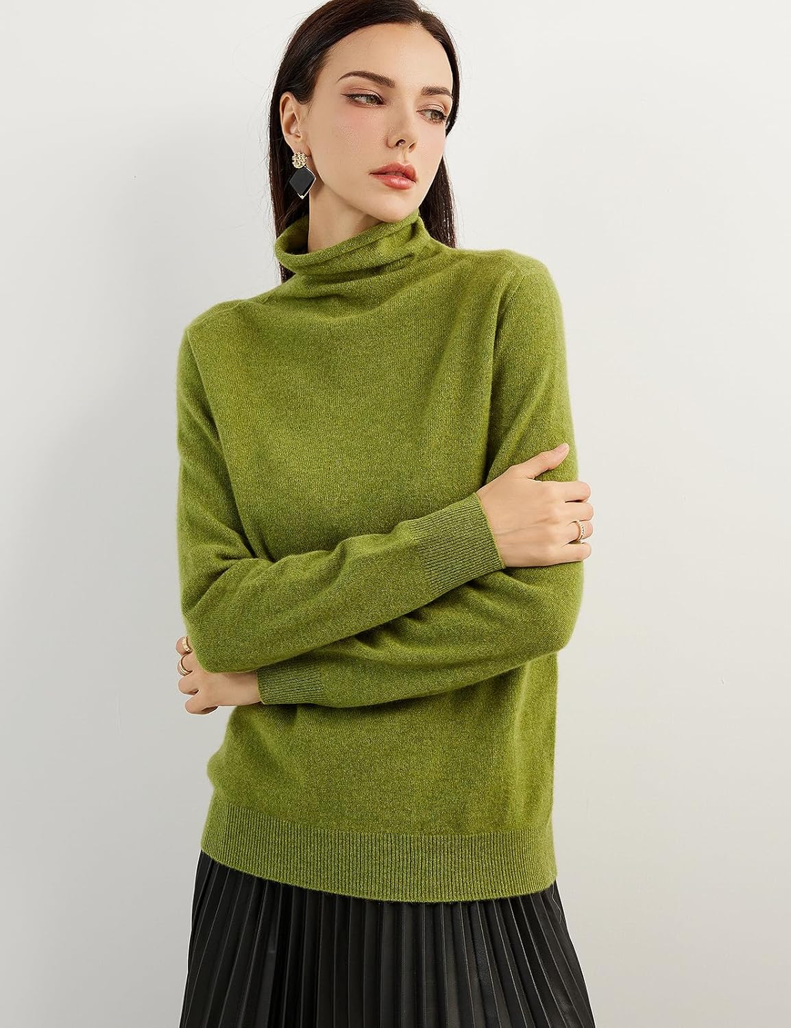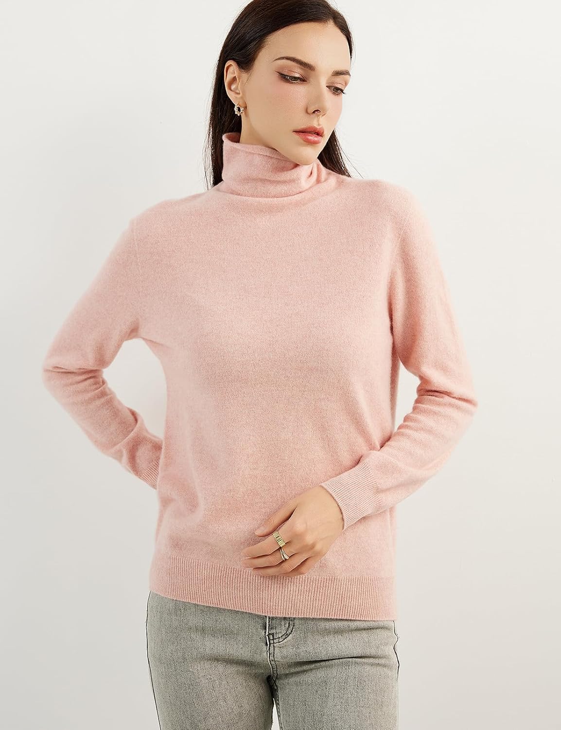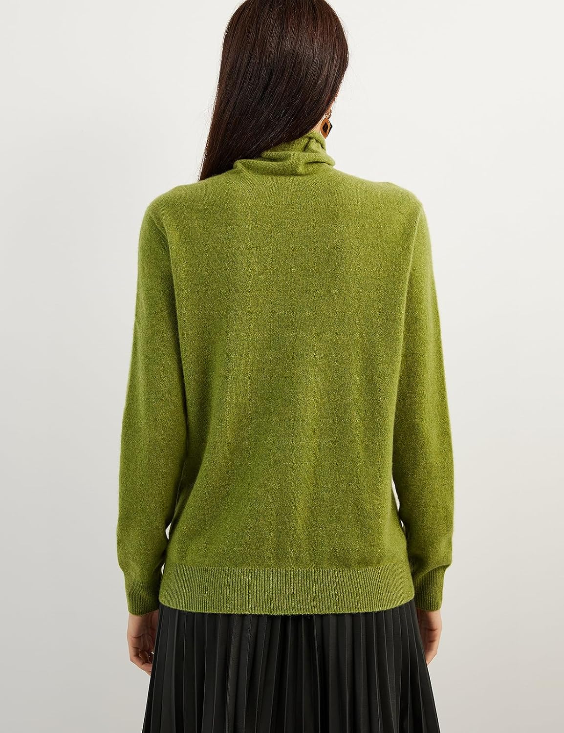 Fine cashmere sweater. Even though turtlenecks are not her thing, my wife still loved this one. It's super soft and fits true to size. Everything about it is nice and warm. The black color is very classy. The price is a little high, but it is cashmere. It makes a fine gift.