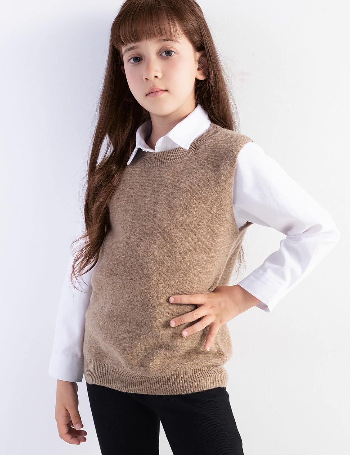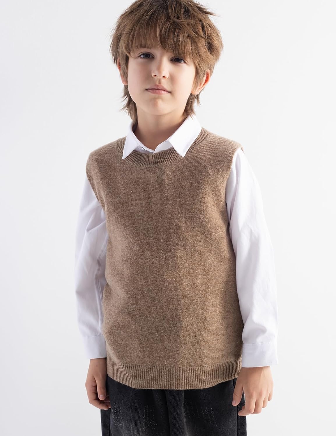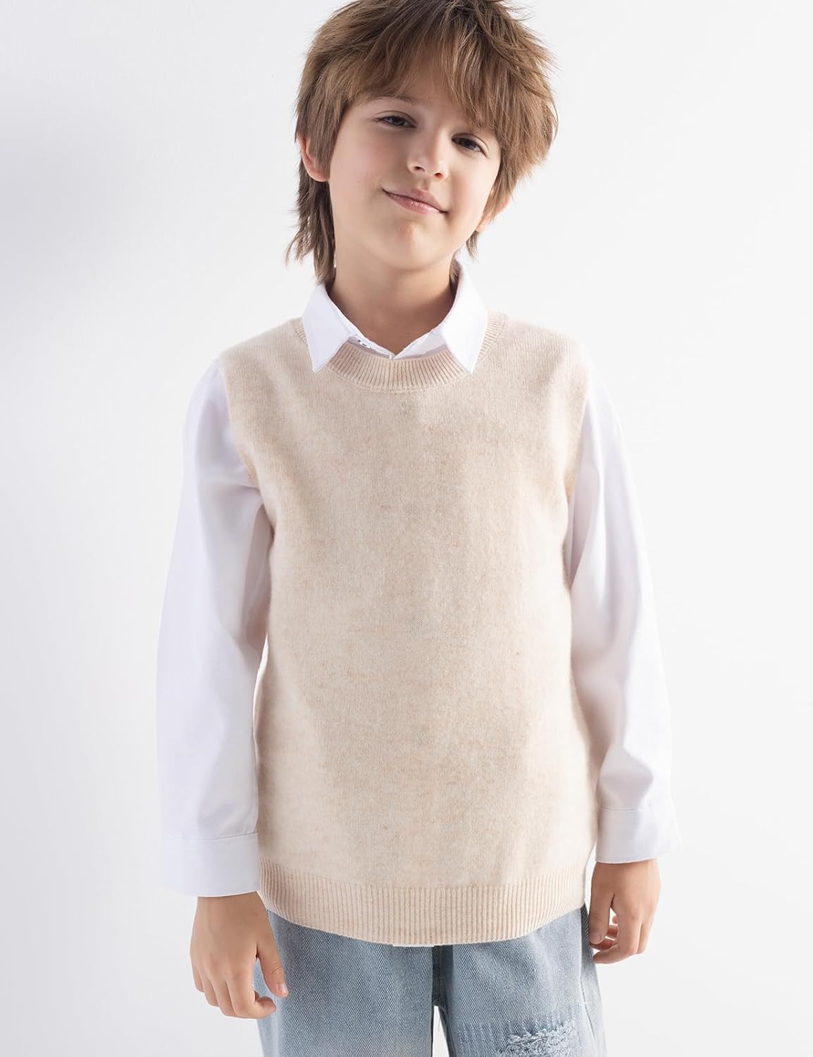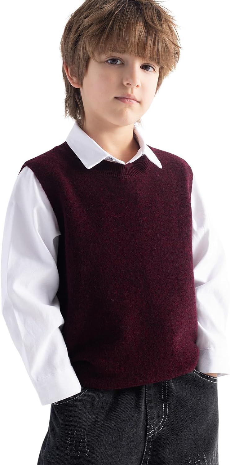 남아 및 여아 100% 메리노 울 케이블 크루넥 스웨터 조끼