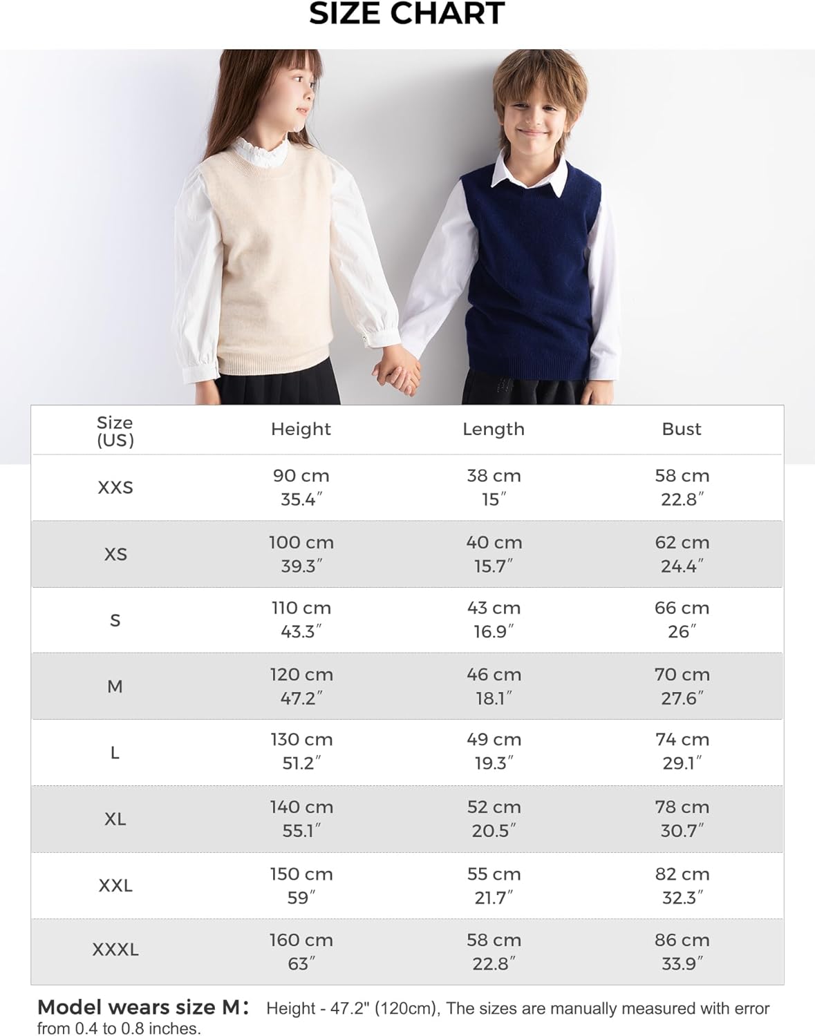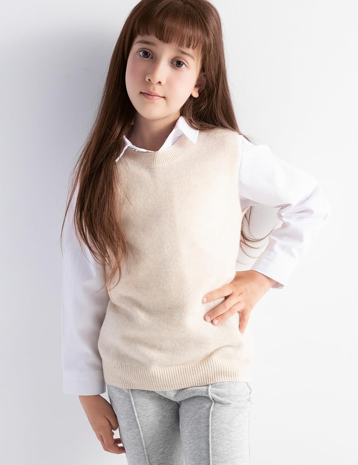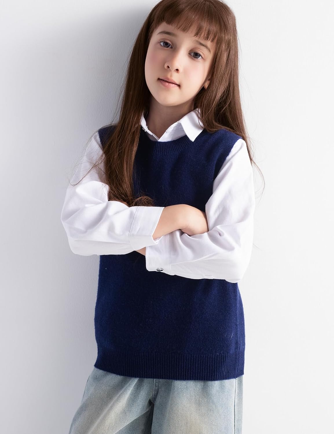 남아 및 여아 100% 메리노 울 케이블 크루넥 스웨터 조끼
