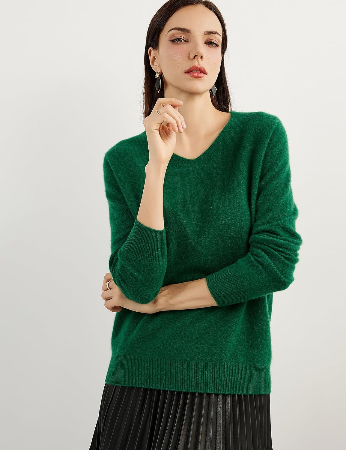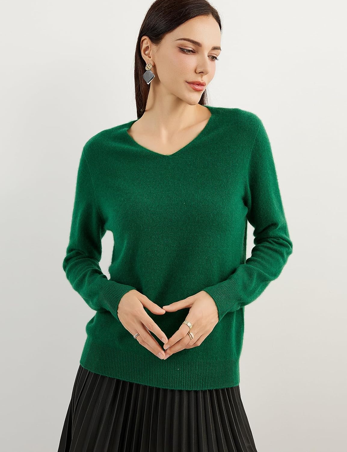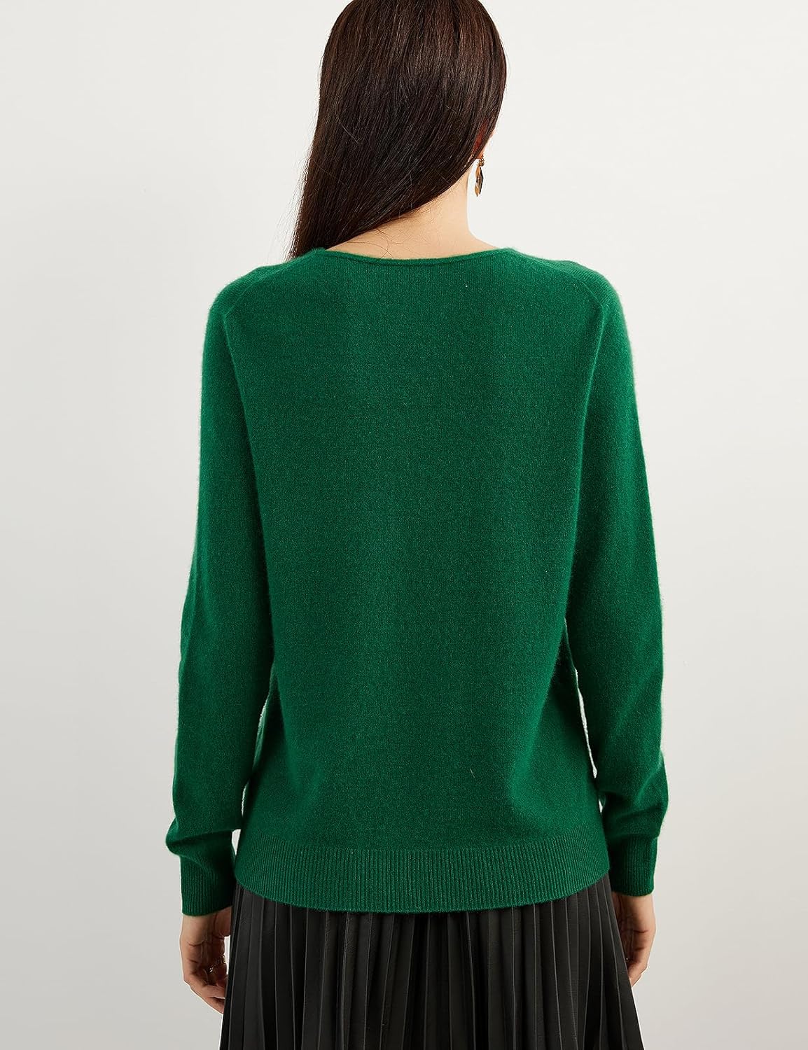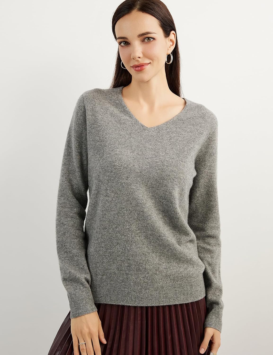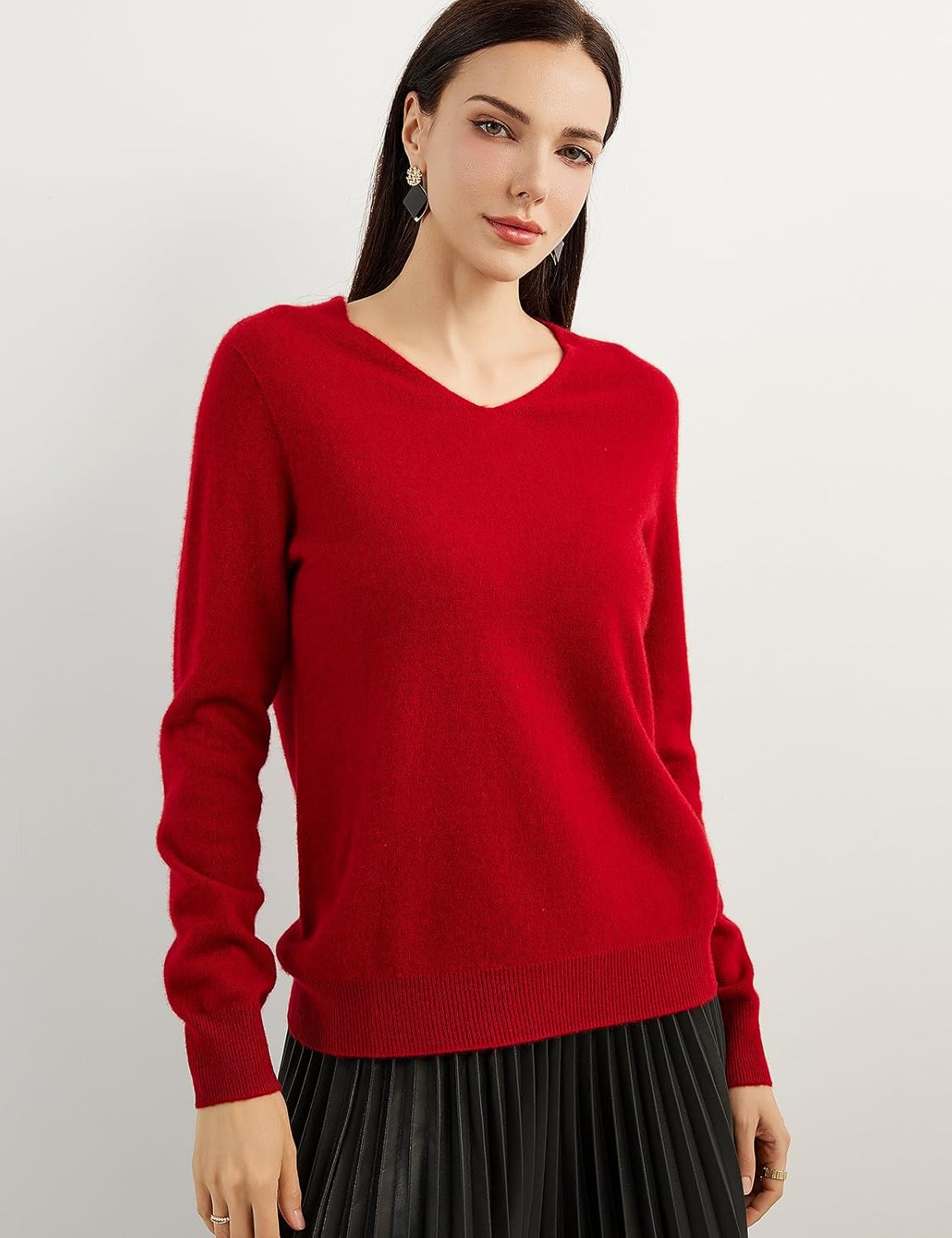 Beautiful, well made, deliciously soft and comfortable black cashmere.The maker uses some kind of unique woven knitting structure that eliminates seams, the whole sweater is woven from one yarn or several strands at one time. This seamless technology eliminates stitches at the shoulders, sides and underarms allowing for ease of movement and stretch and makes for a most incredible fit. .Fits perfectly on my size small wife and she not only looks great in it but she loves it.A great wardrobe addition-cashmere, especially in black goes with everything.Priced right too.