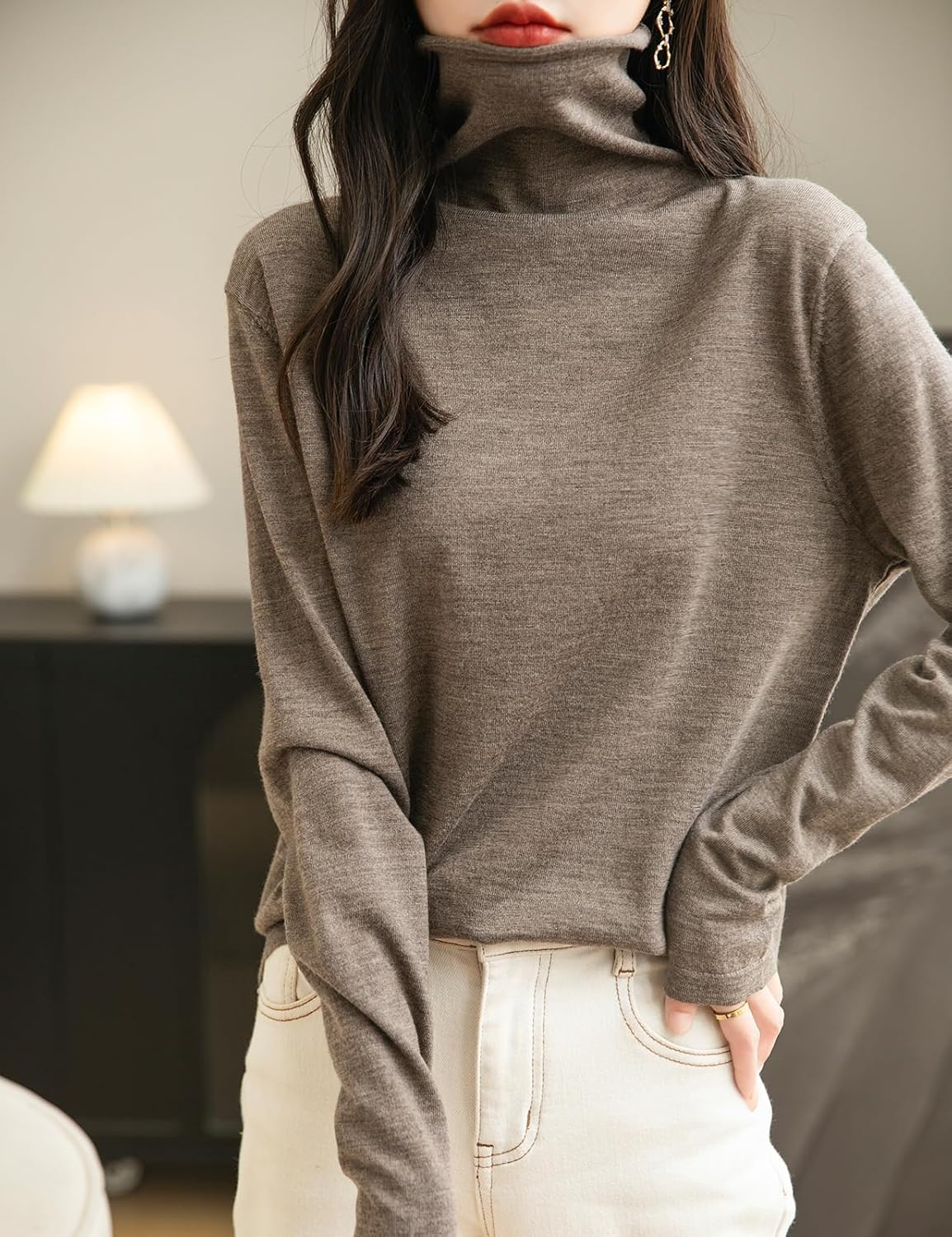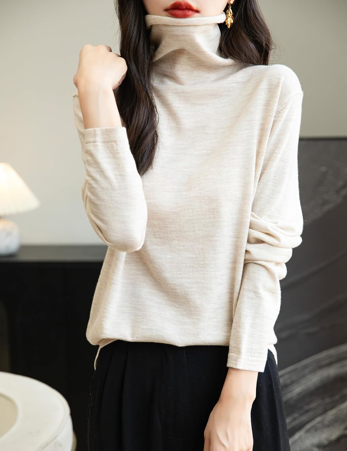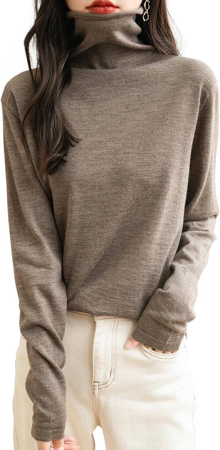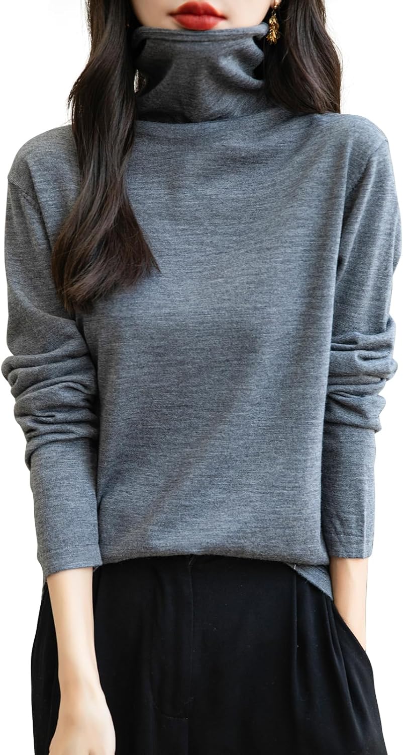100% 메리노 울 터틀넥 여행용 티셔츠 스웨터