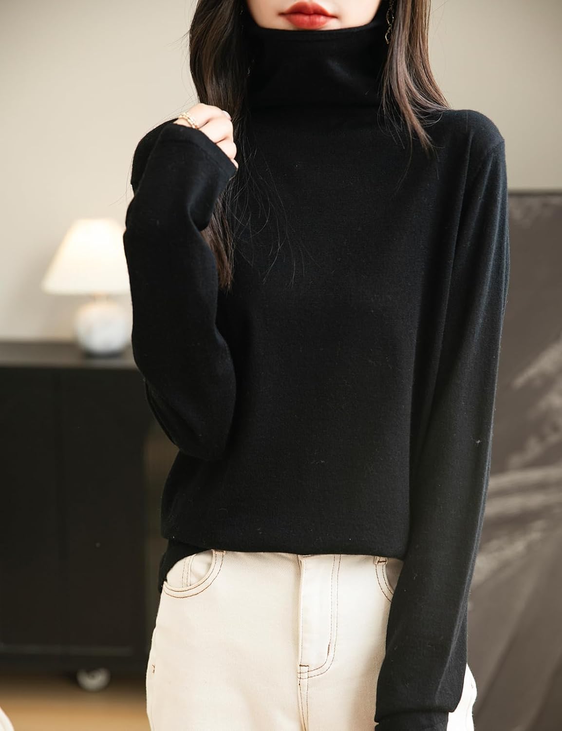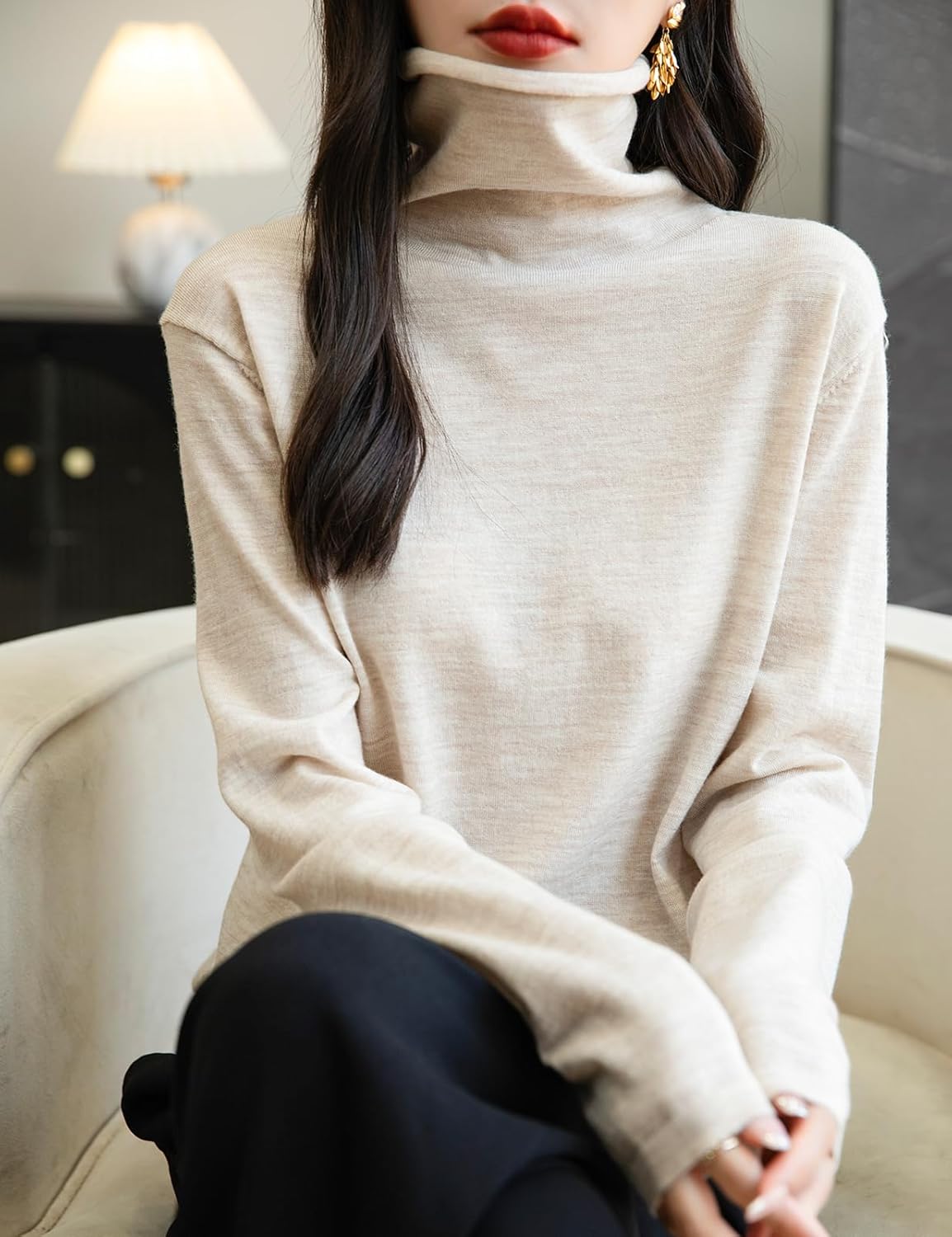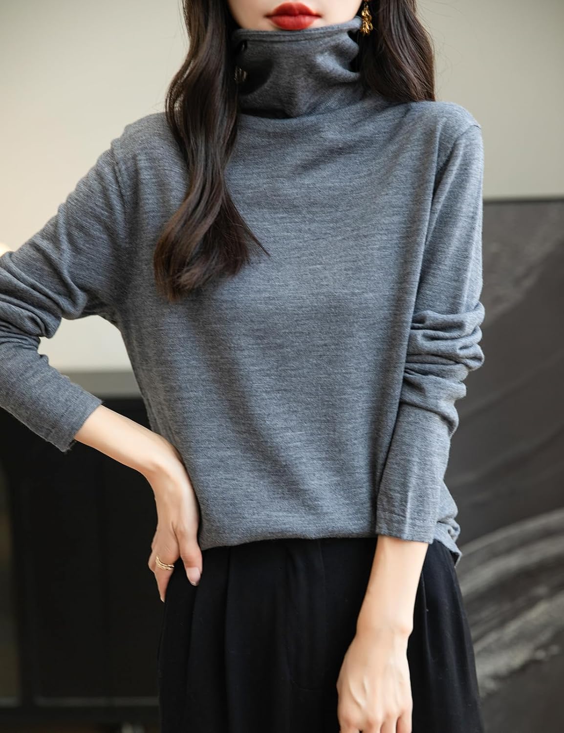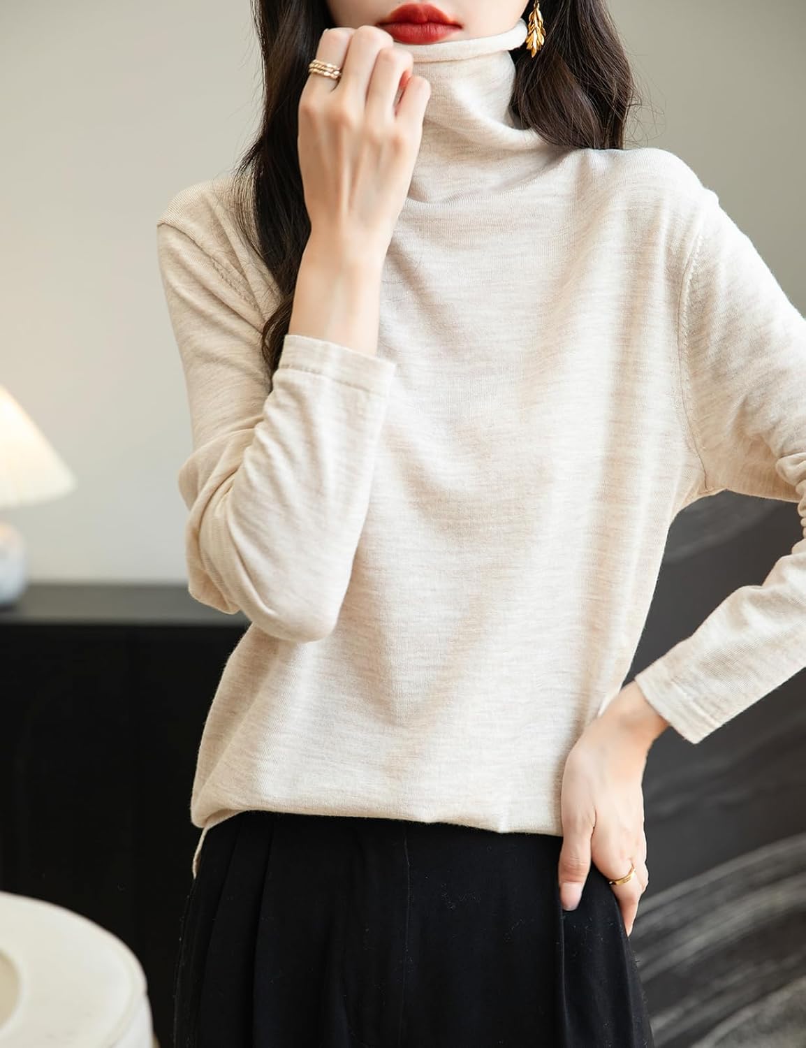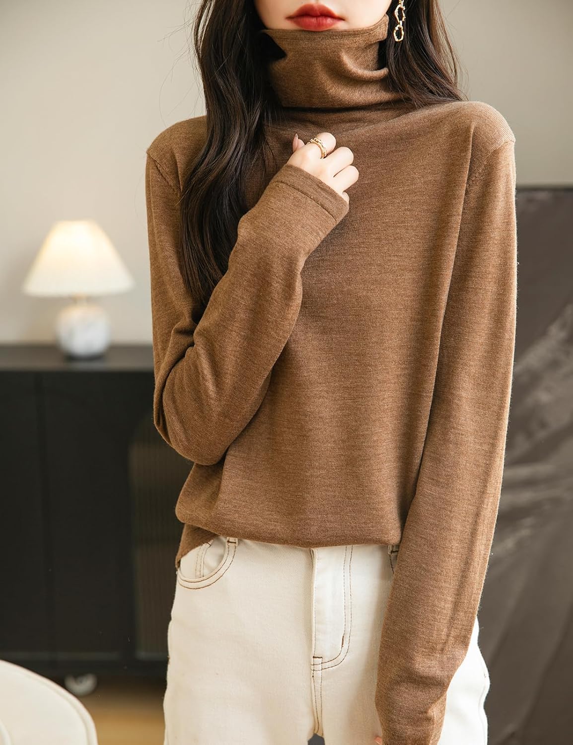 100% 메리노 울 터틀넥 여행용 티셔츠 스웨터
