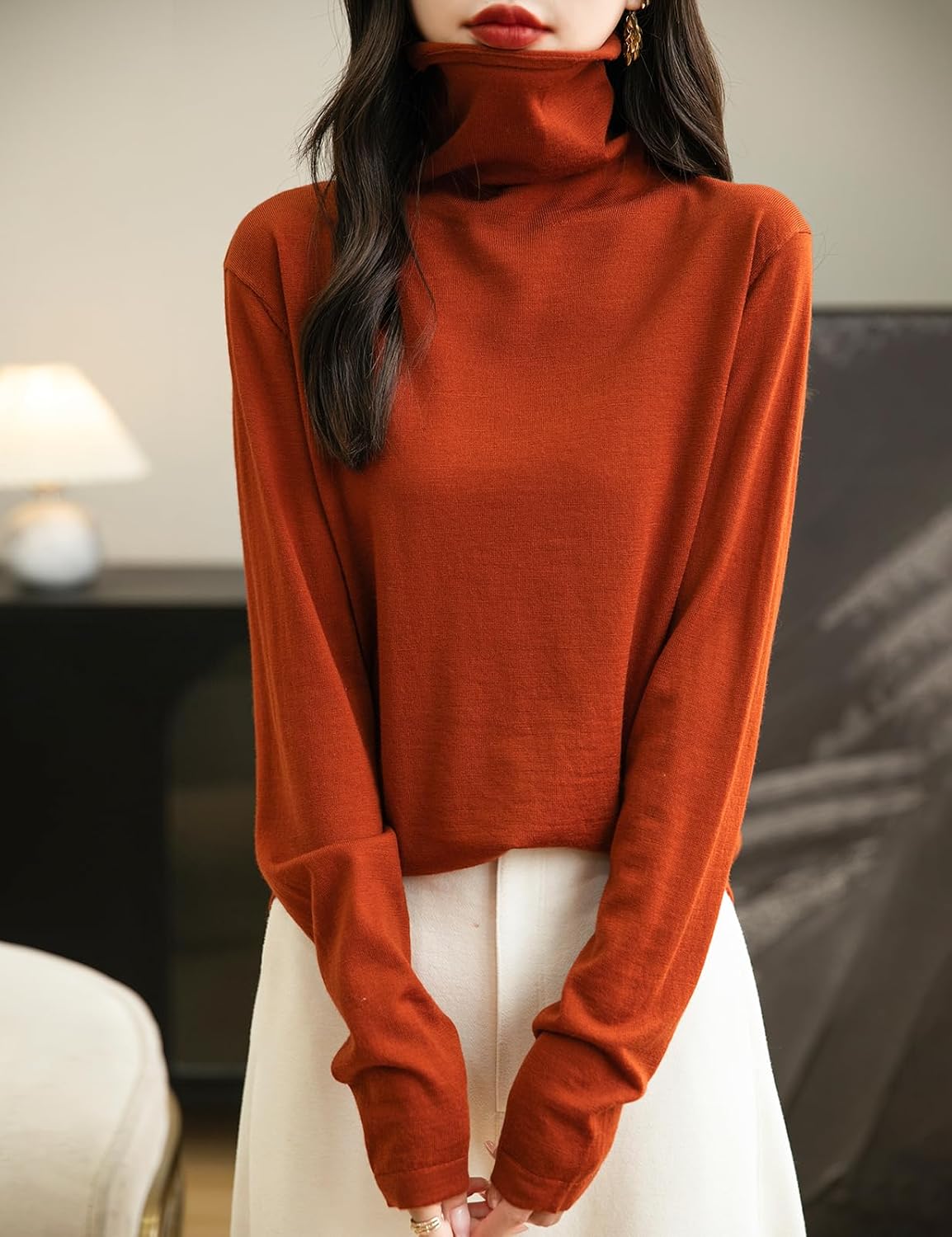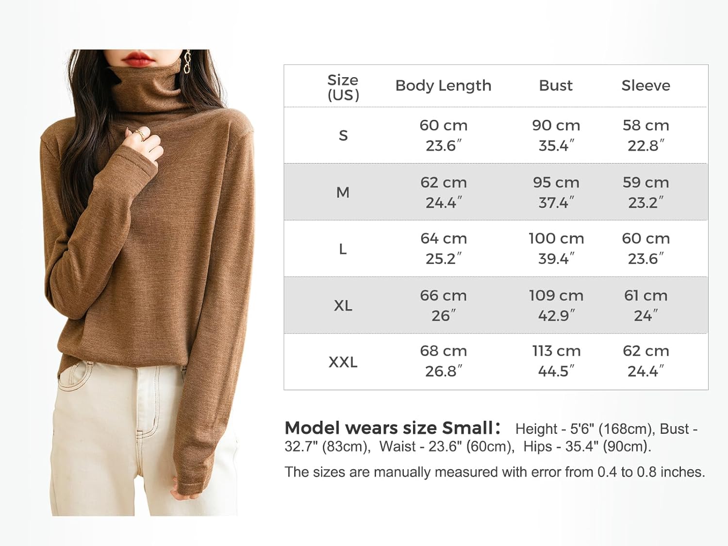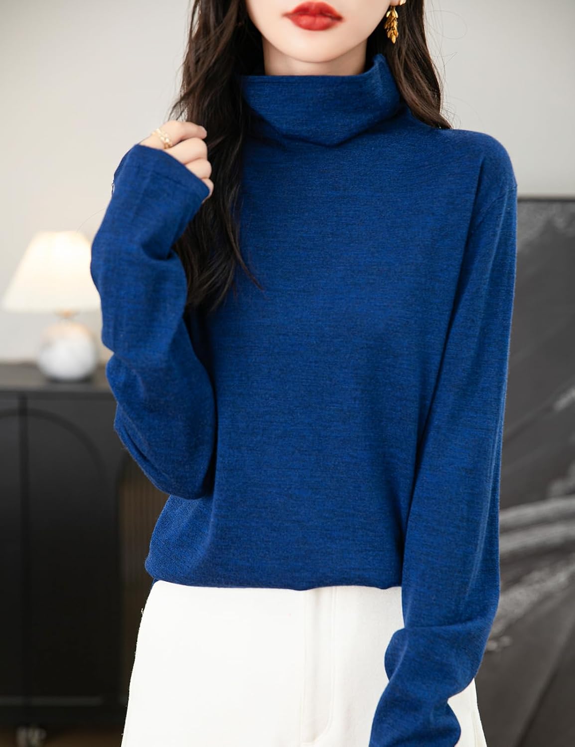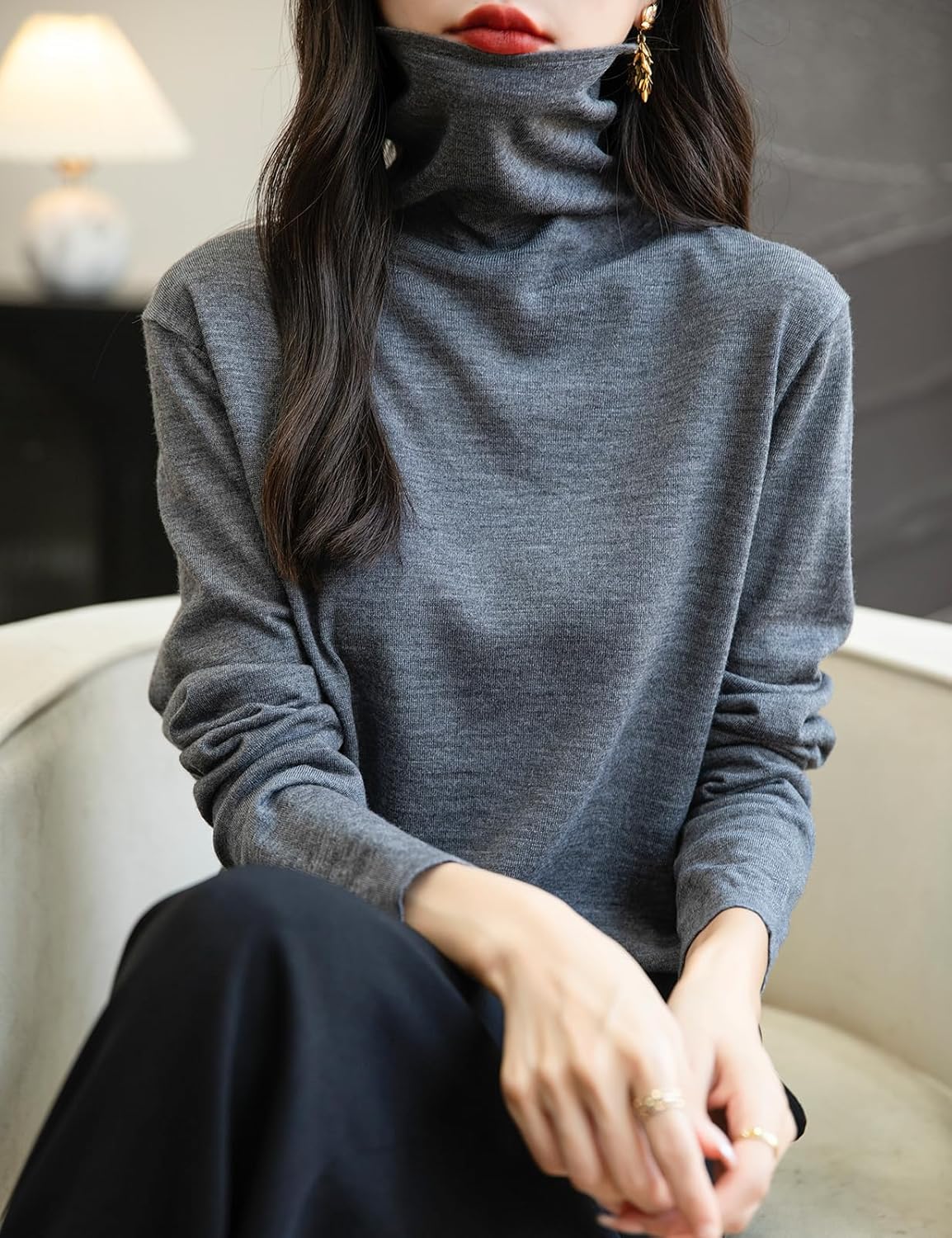 100% 메리노 울 터틀넥 여행용 티셔츠 스웨터