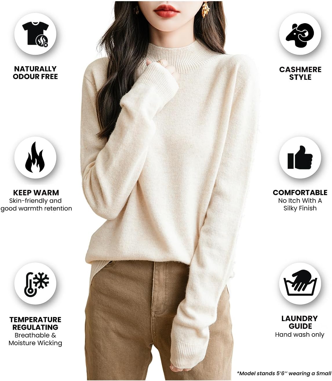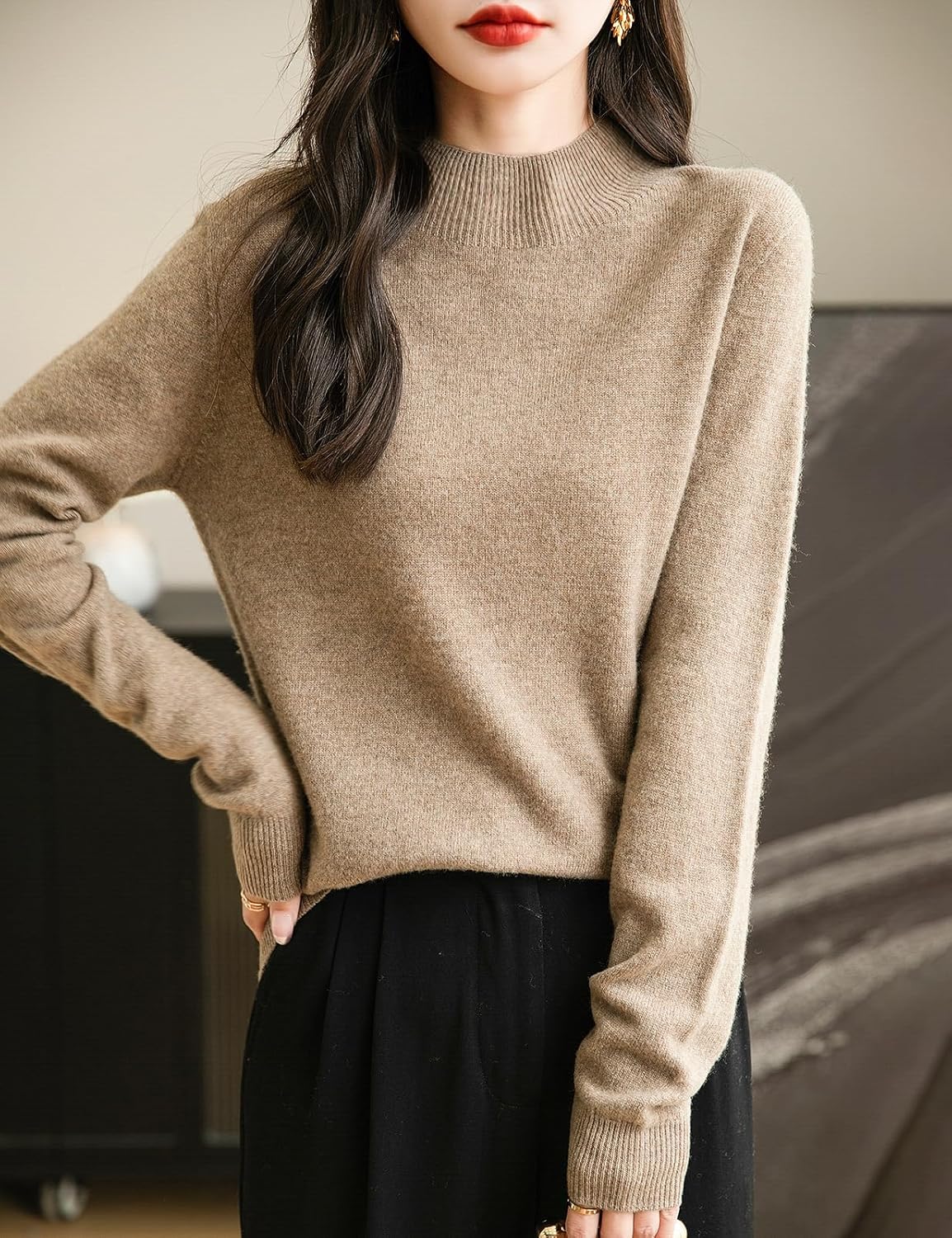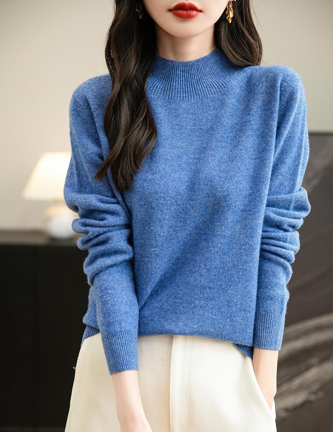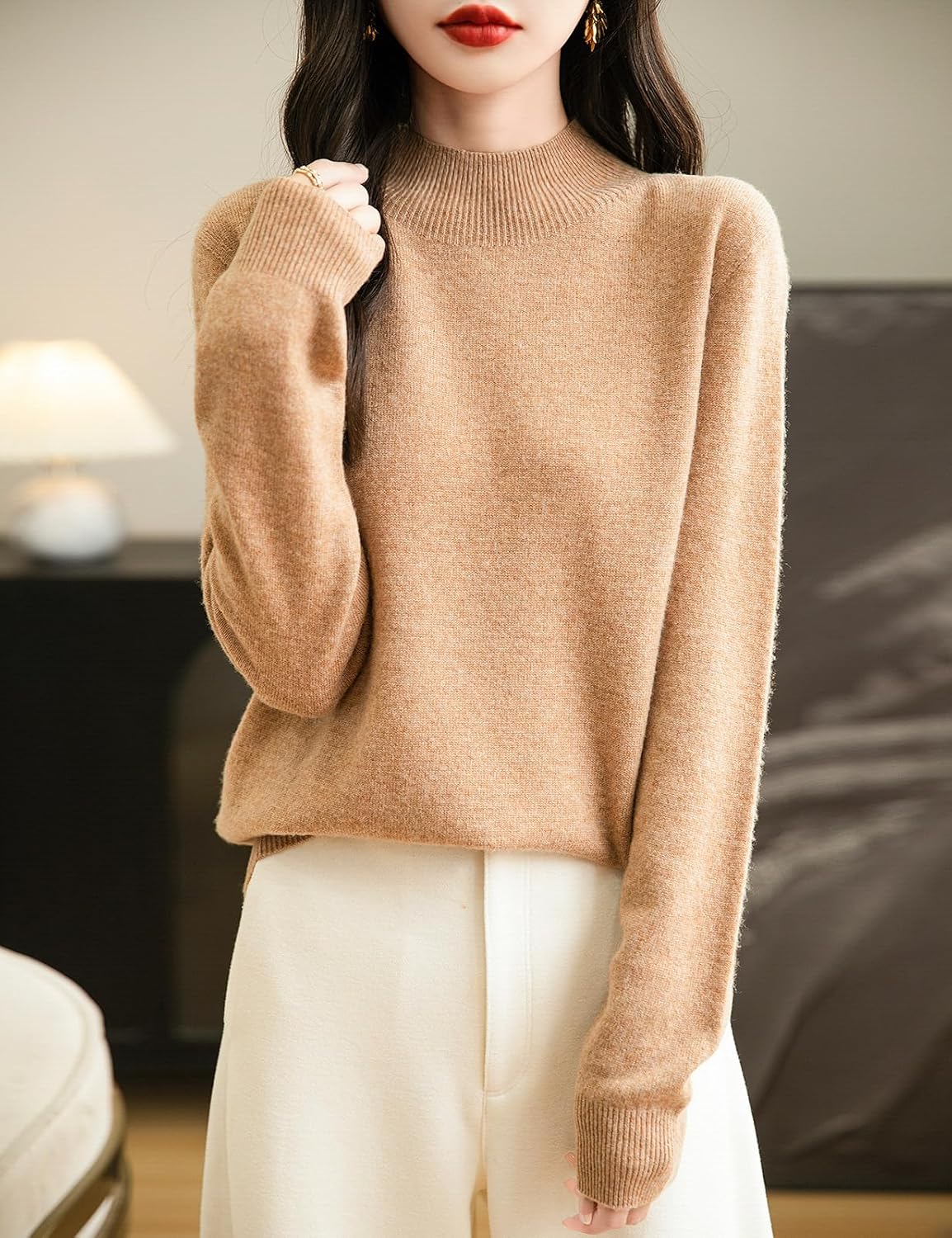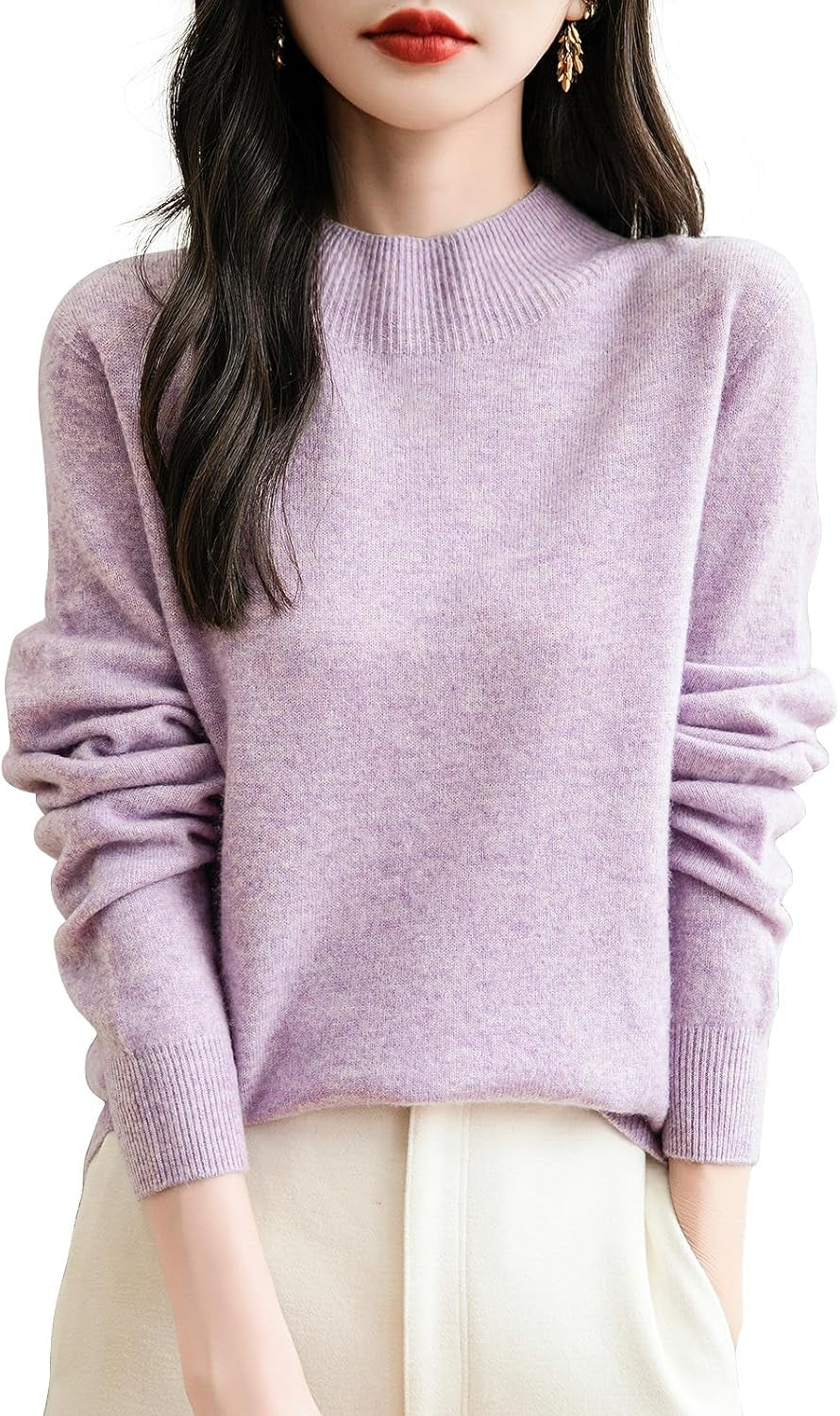 100% 메리노 울 심리스 목넥 스웨터