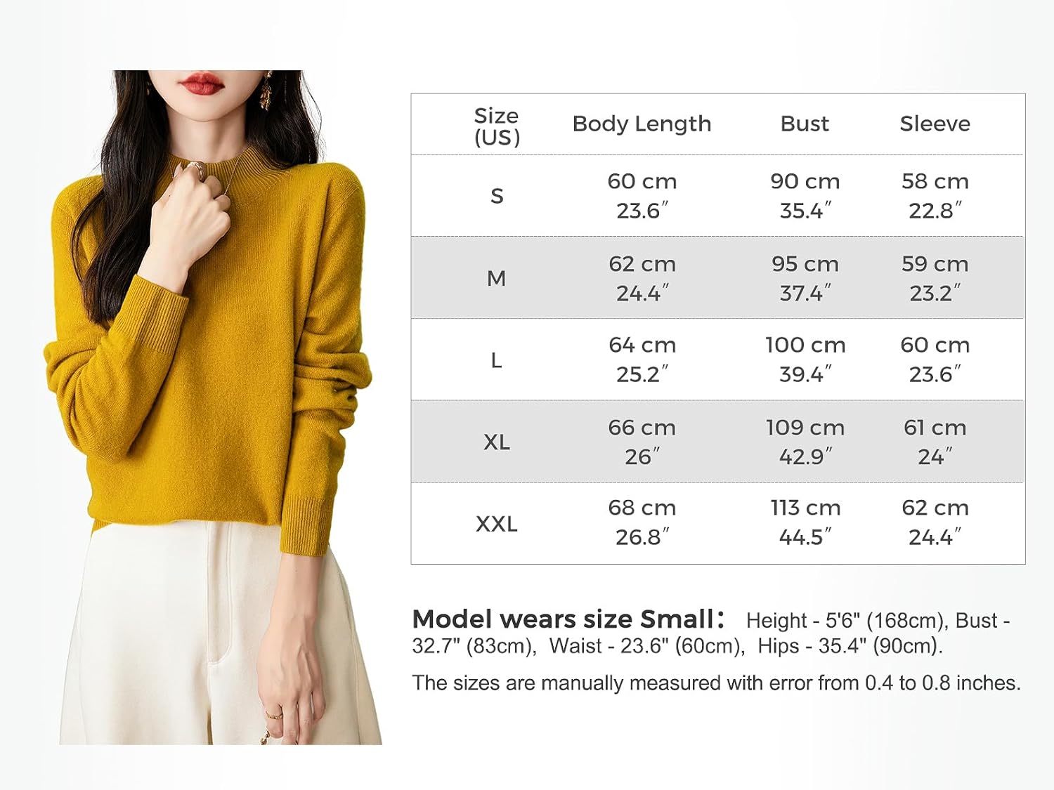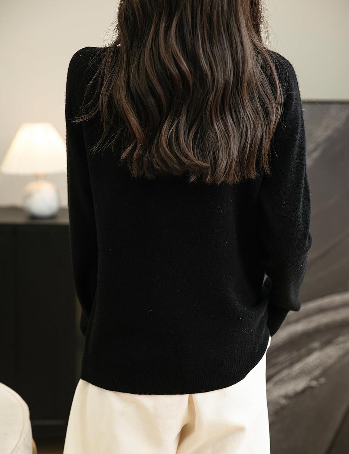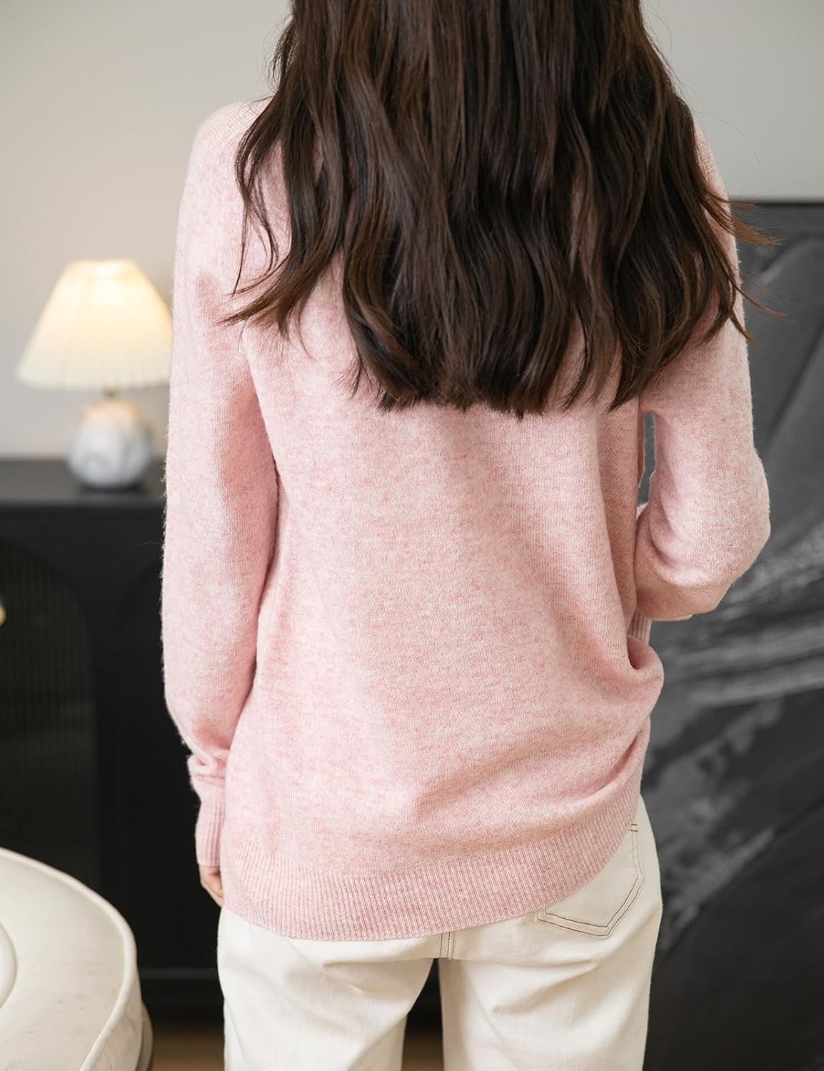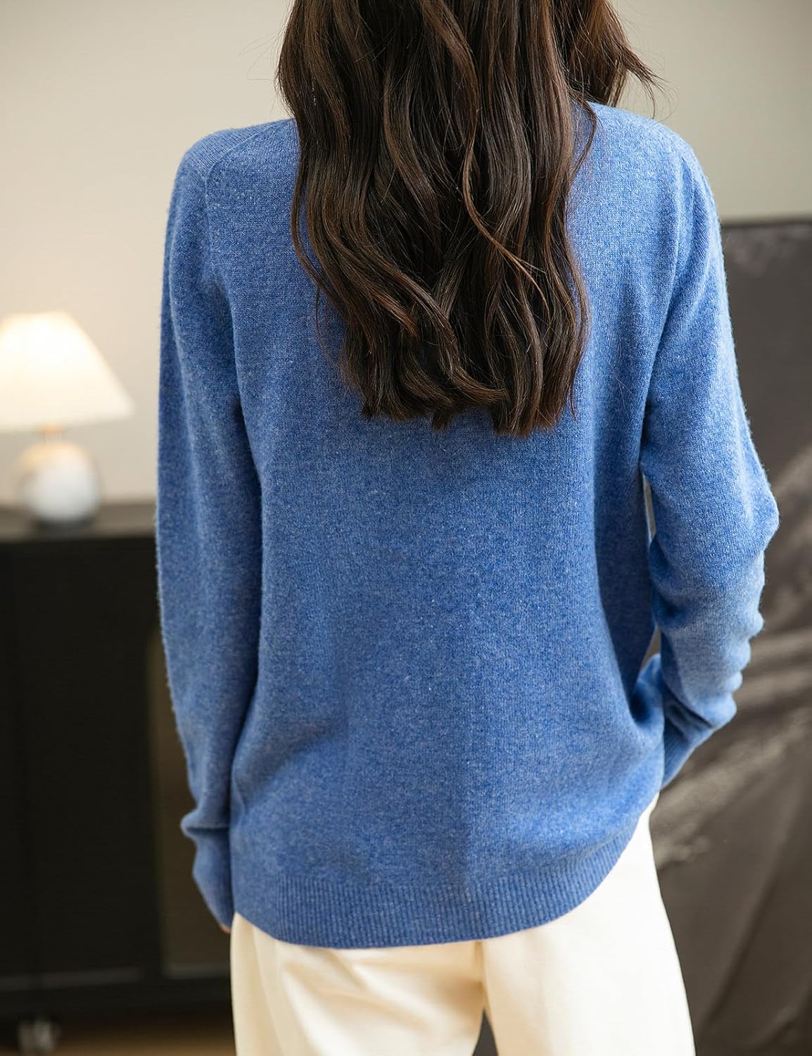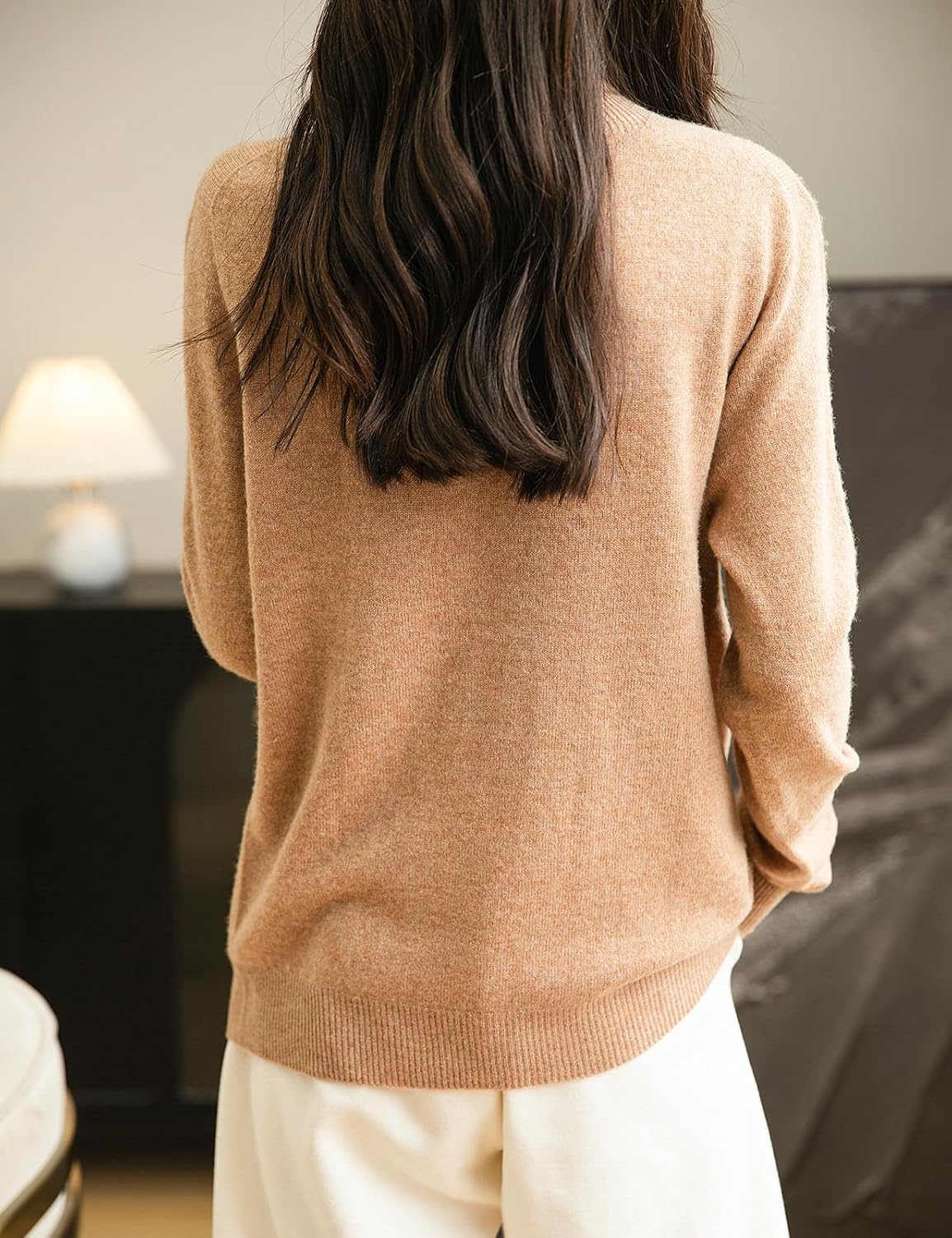 This sweater is very soft and luxurious in feel, and the fabric material seemed more high quality than expected for the price point. It was true to the size guide with a flattering cut. The fabric is thin, which I don’t think is a negative, and it still feels warm. Sadly, I have to return it, as the right front upper chest area has a faint imprint of a heart in it that should not be there. I may try to reorder to see if that issue was a one-off. Had it not been for the unexpected imprint, I would have definitely kept it.