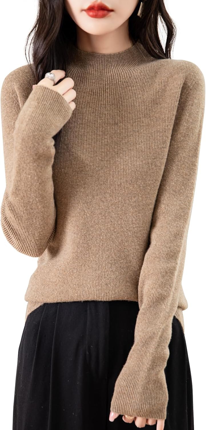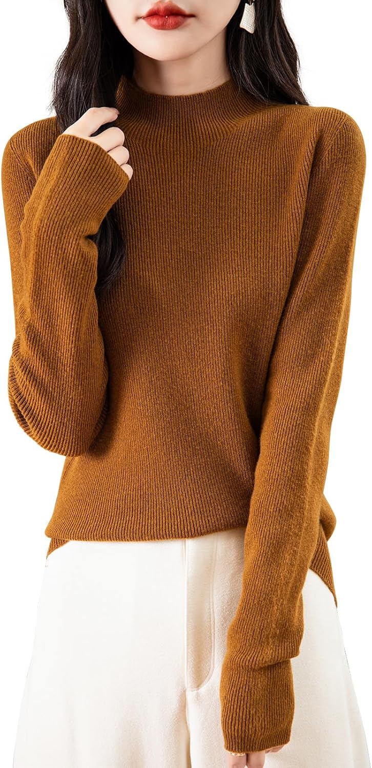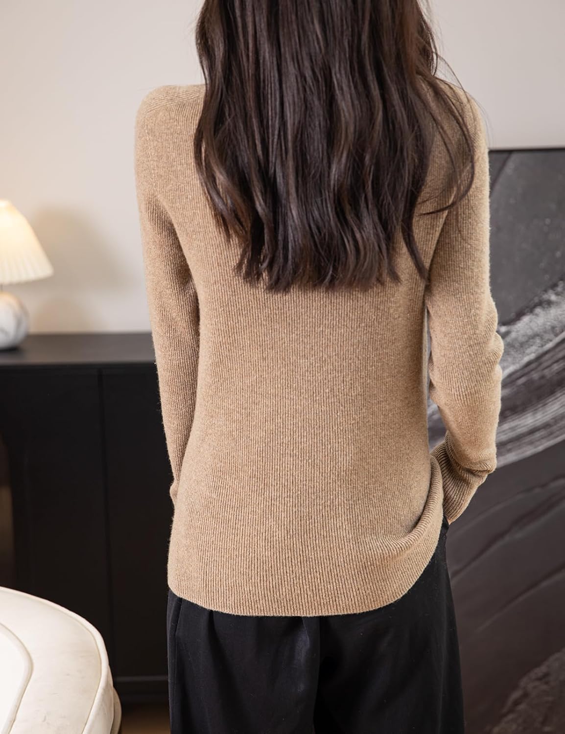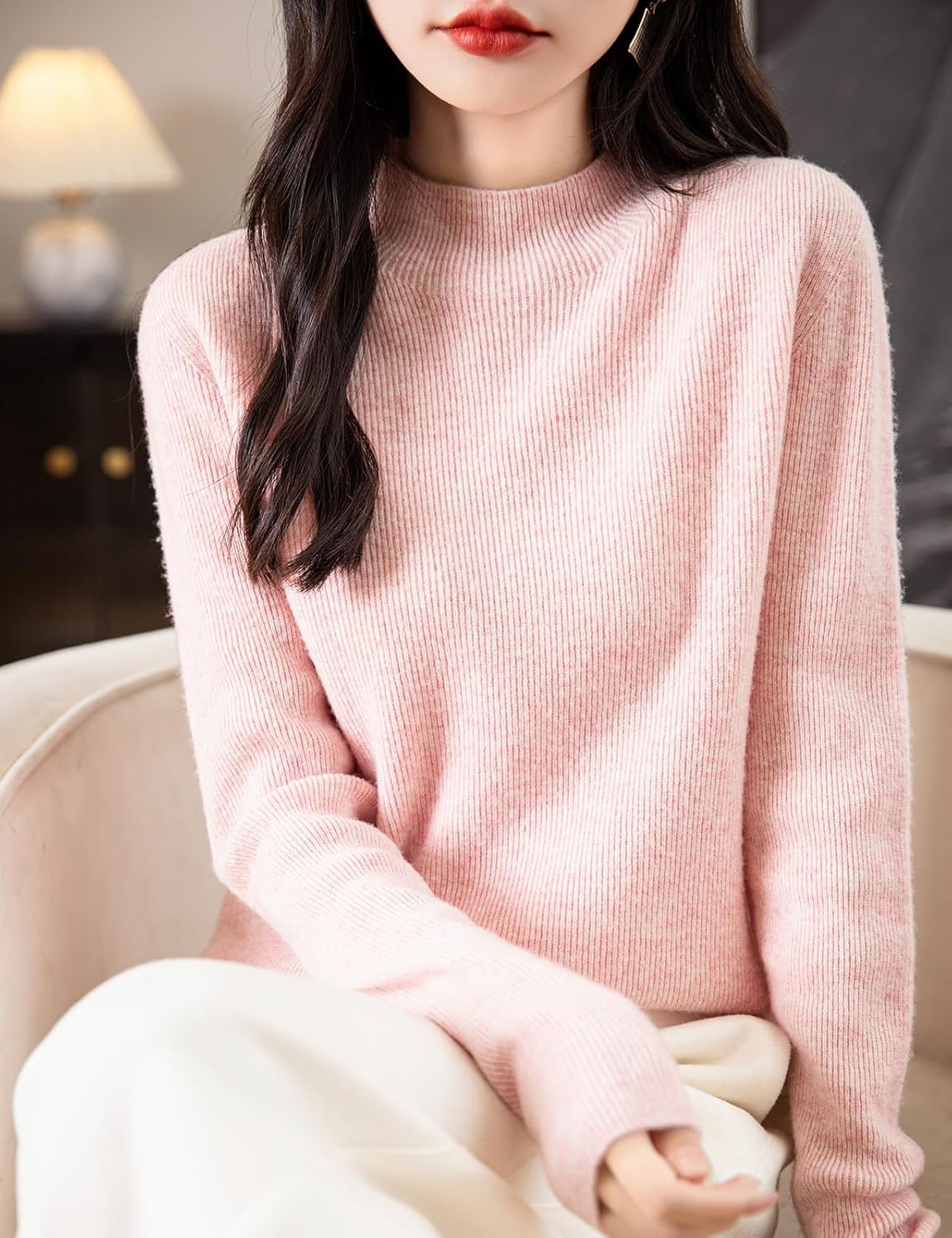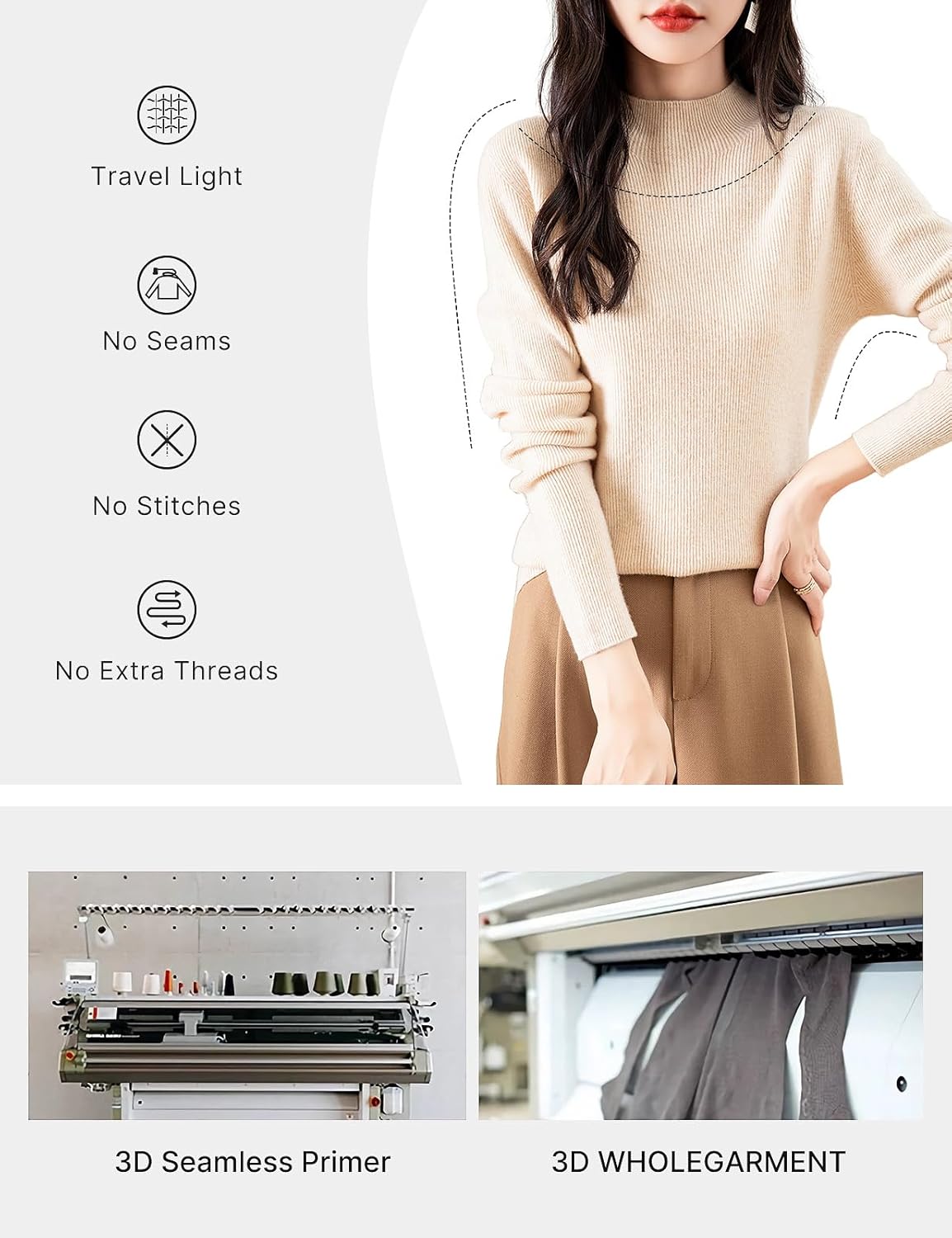 100% 메리노 울 심리스 골지 목넥 스웨터