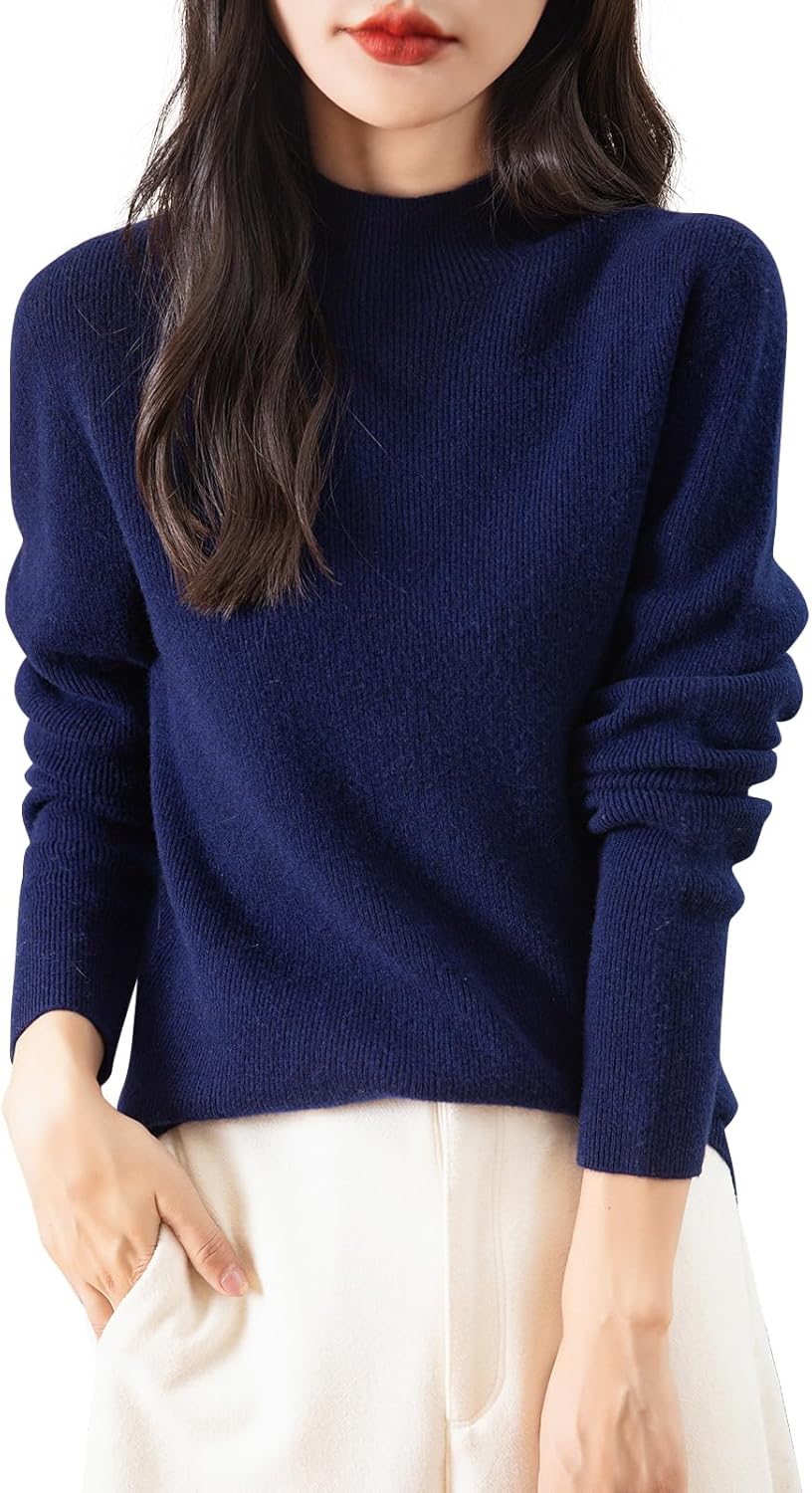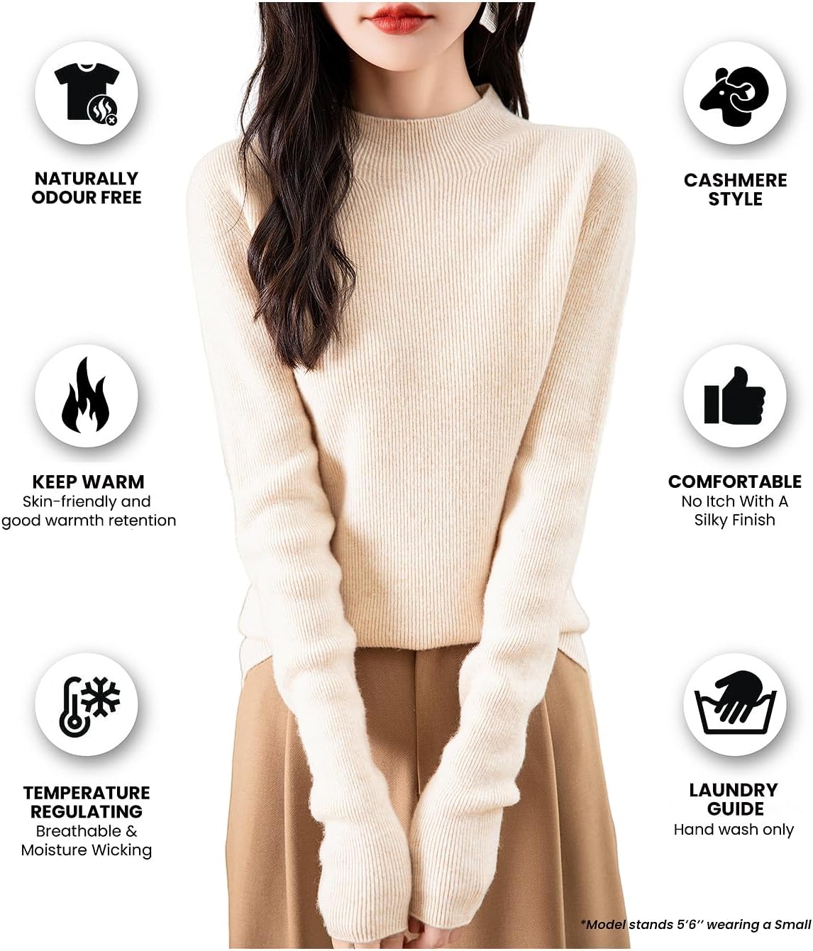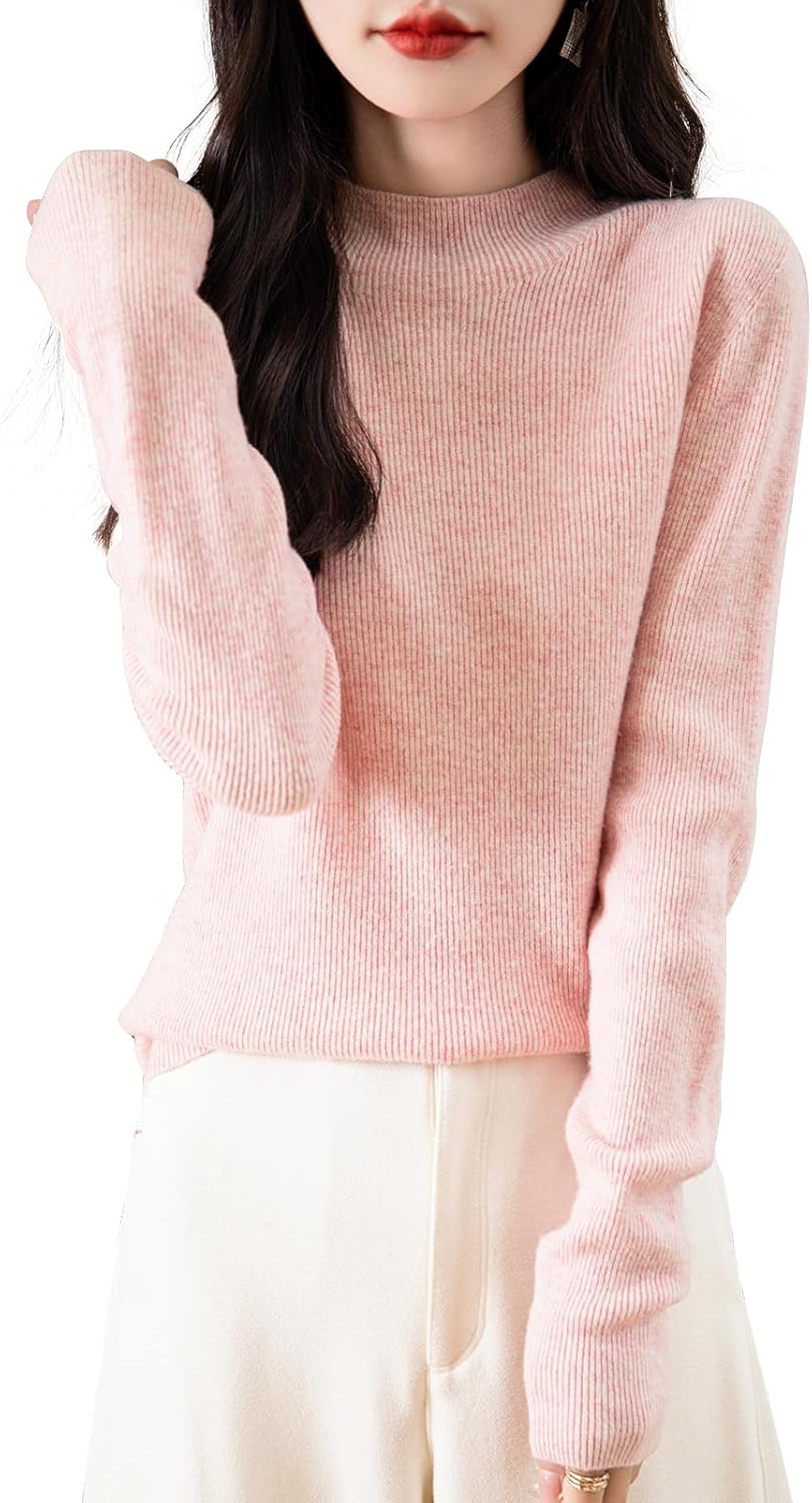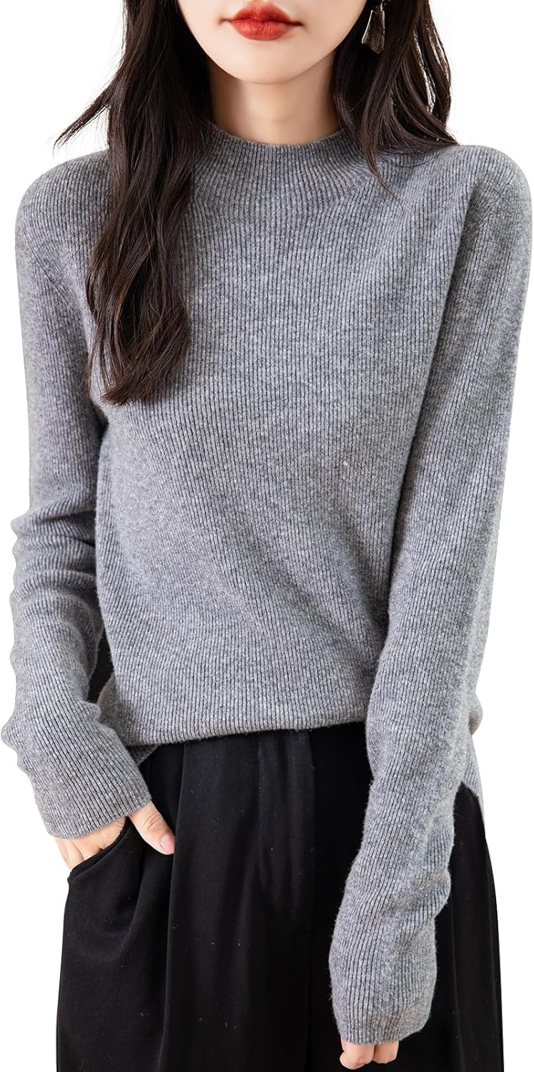 100% 메리노 울 심리스 골지 목넥 스웨터