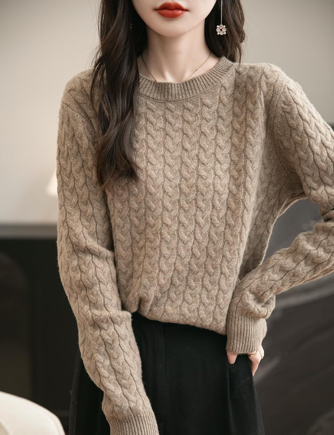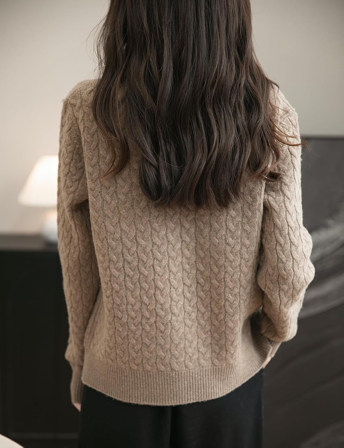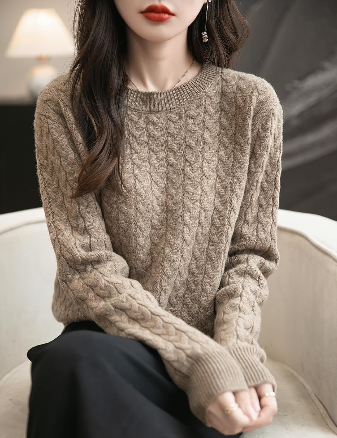 100% 메리노 울 크루넥 케이블 니트 스웨터