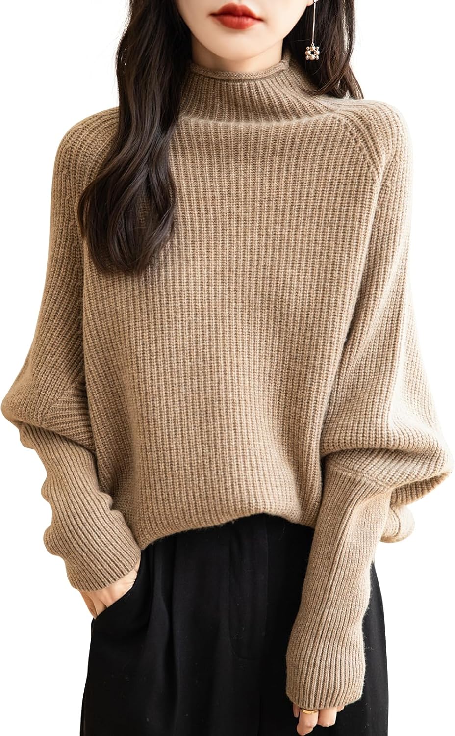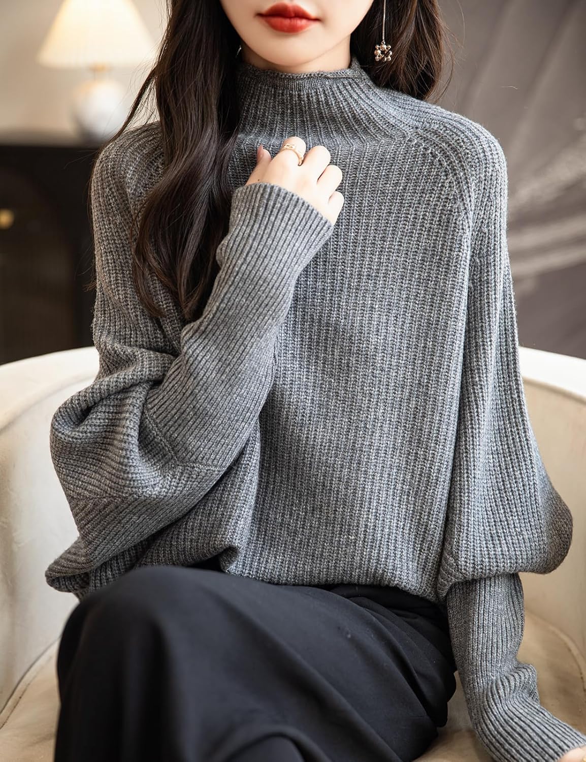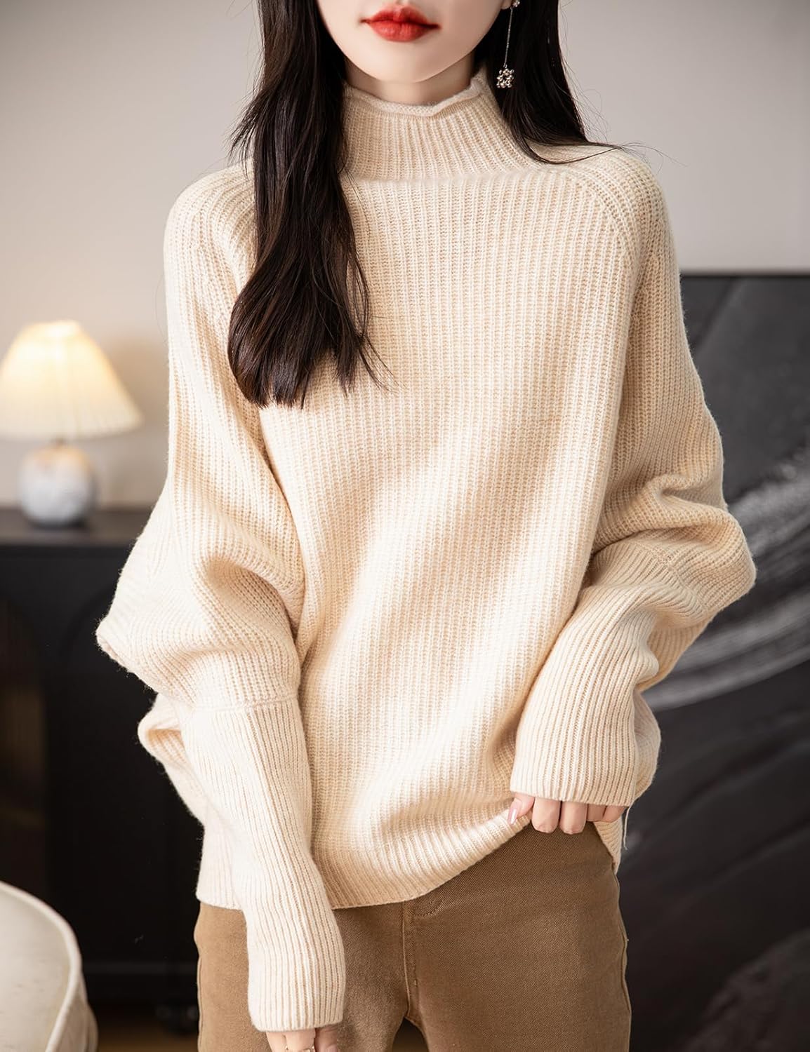 100% 메리노 울 모크넥 오버사이즈 배트윙 슬리브 스웨터