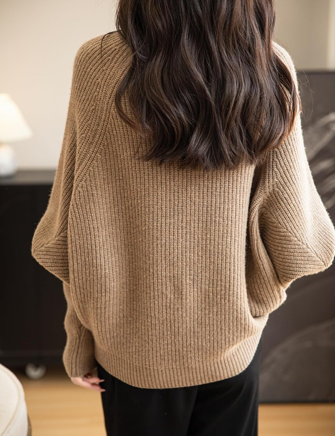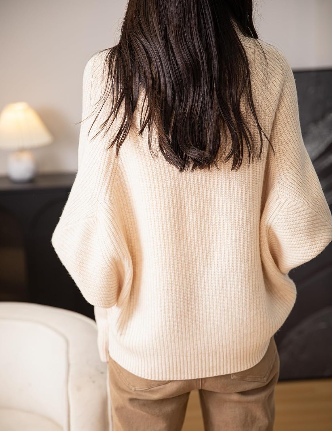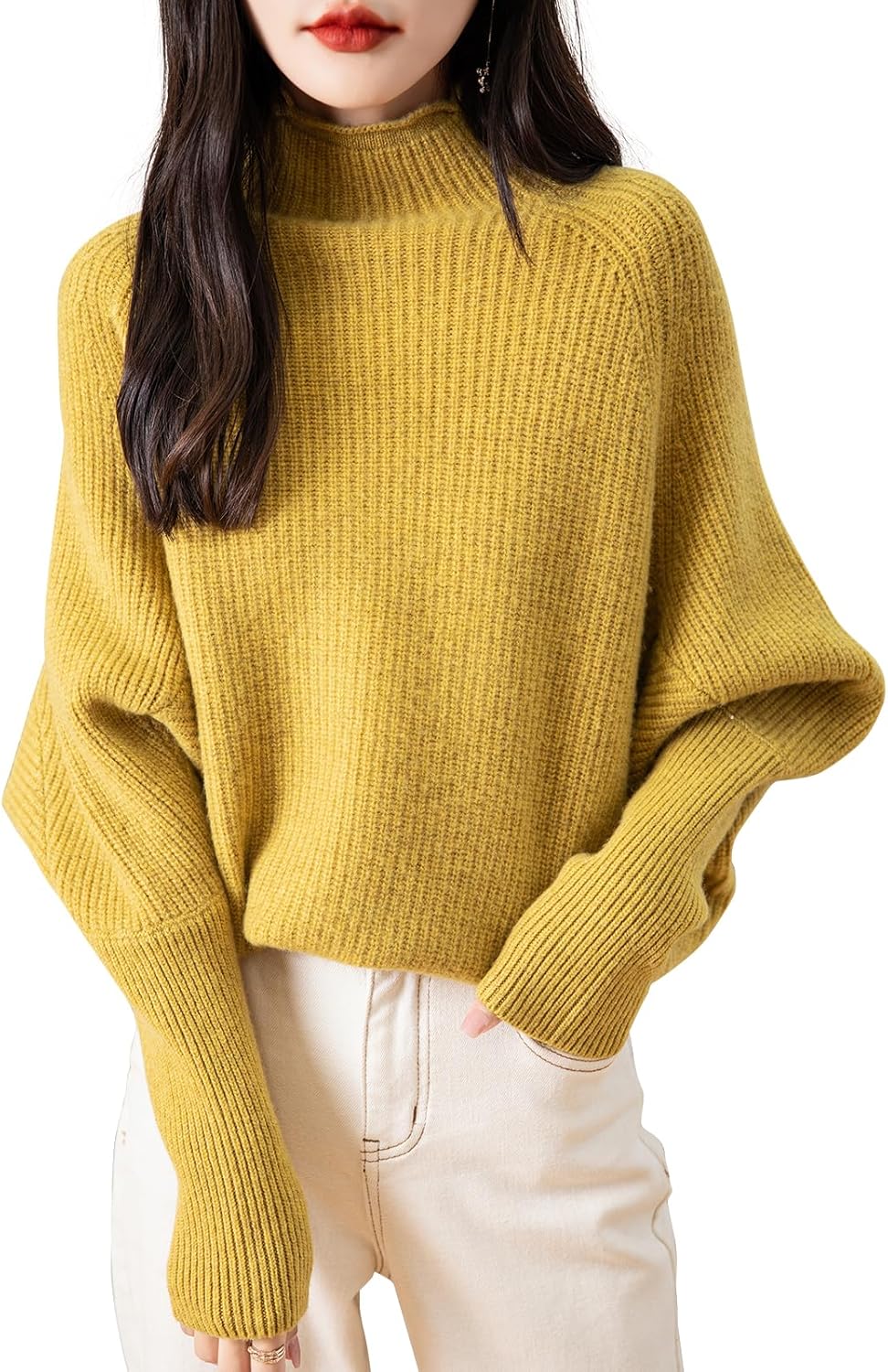100% 메리노 울 모크넥 오버사이즈 배트윙 슬리브 스웨터
