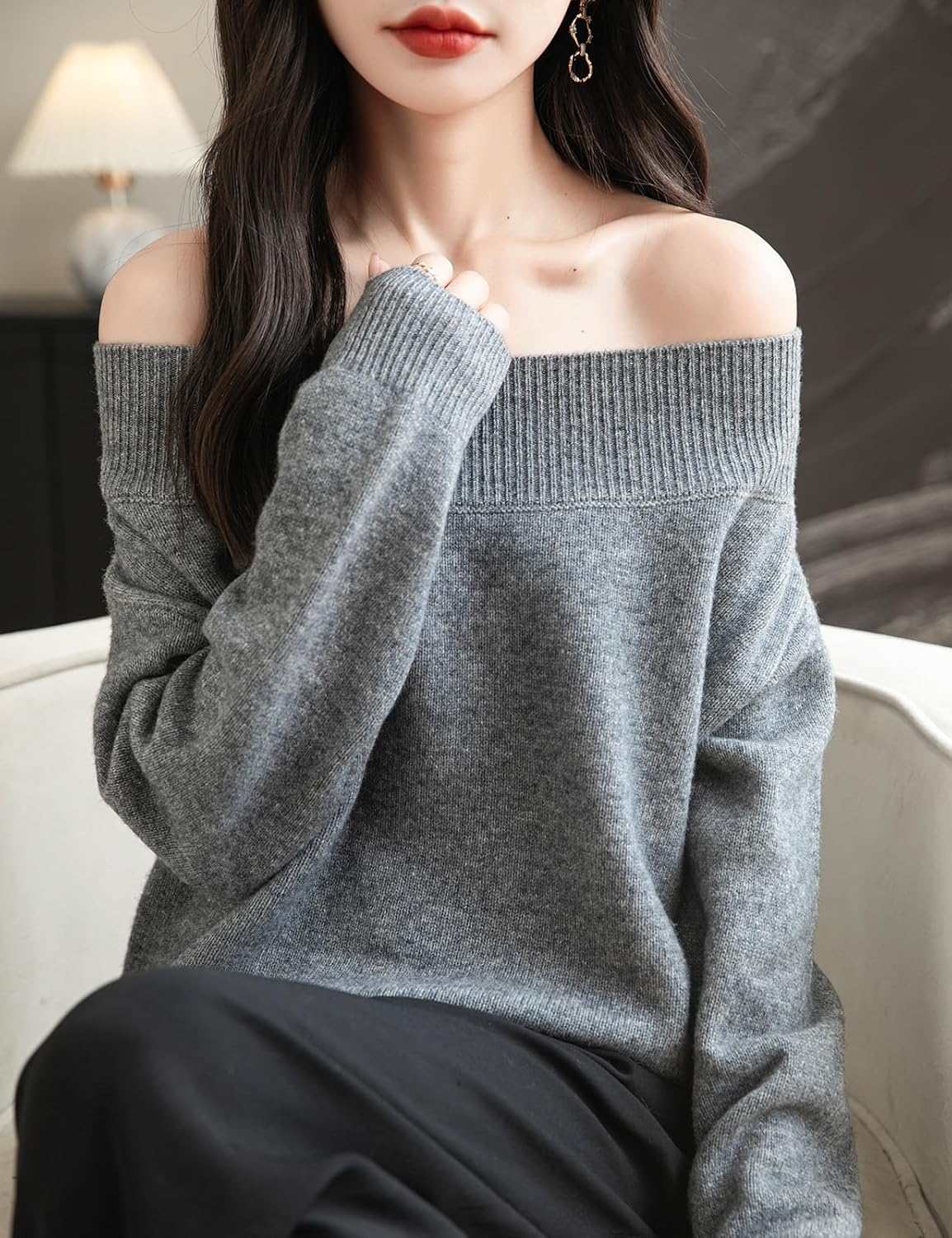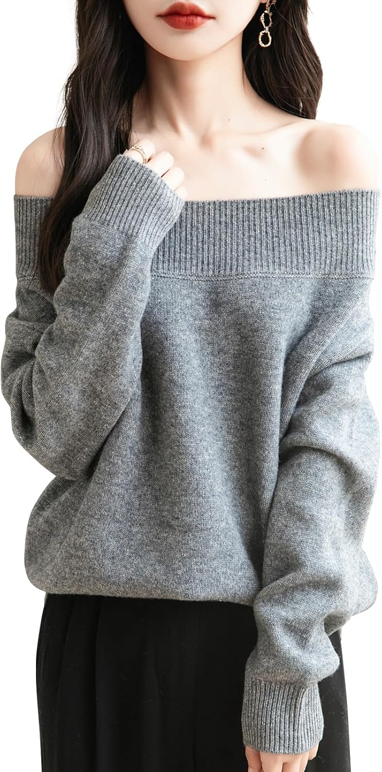 100% 메리노 울 오프 숄더 스웨터
