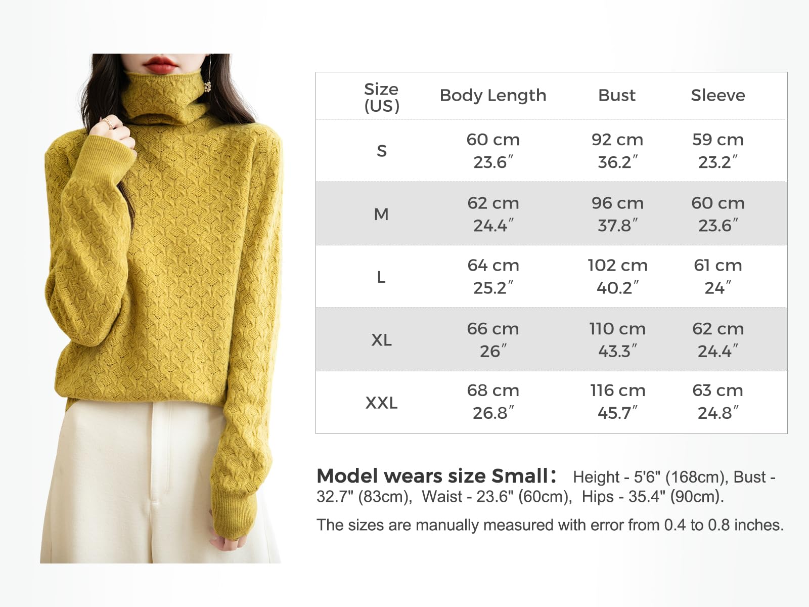 - 특징: 12게이지 고급 원단, 가벼움. 일반 핏, 단색, 터틀넥, 긴소매, 속이 빈 니트 디자인, 골지 커프스. 높은 신축성, 캐주얼 스타일. 가볍고 따뜻하며 부드럽고 착용감이 매우 편안합니다. 이 메리노 울 스웨터는 독특한 질감의 패턴이 겨울 옷장에 시각적인 흥미와 매력을 더합니다.