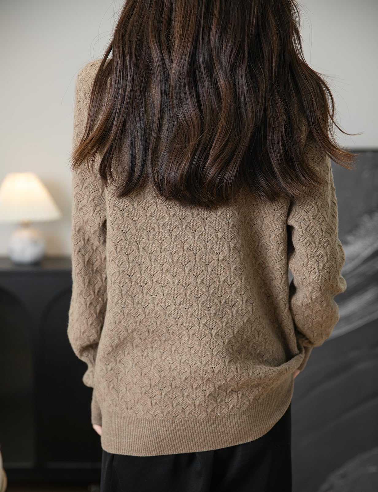 100% 메리노 울 터틀넥 할로우 니트 스웨터