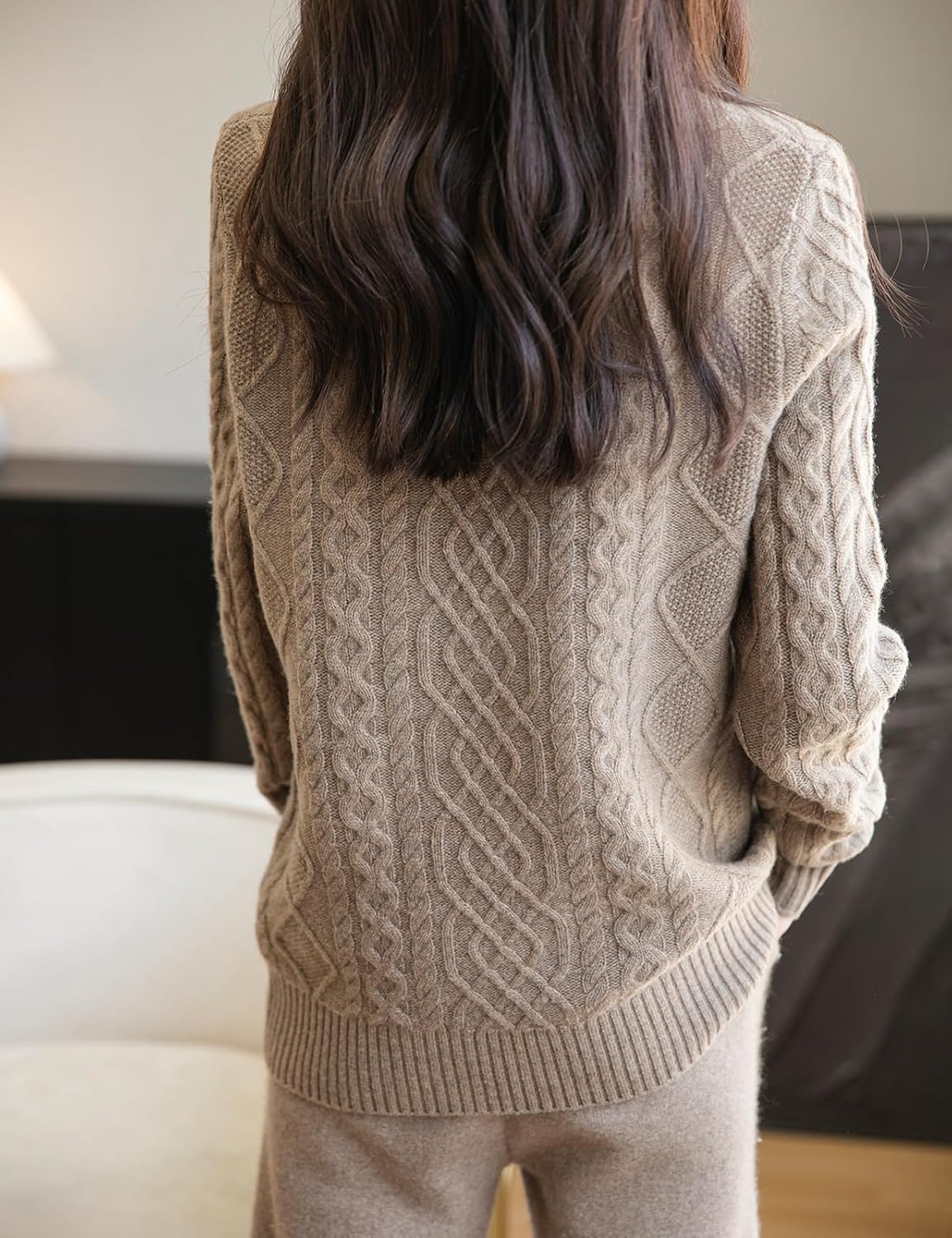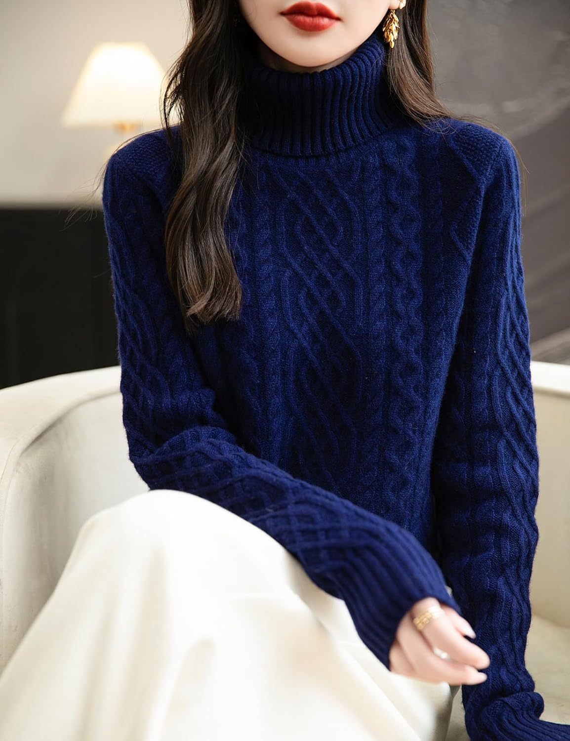 100% 메리노 울 빈티지 터틀넥 케이블 니트 스웨터