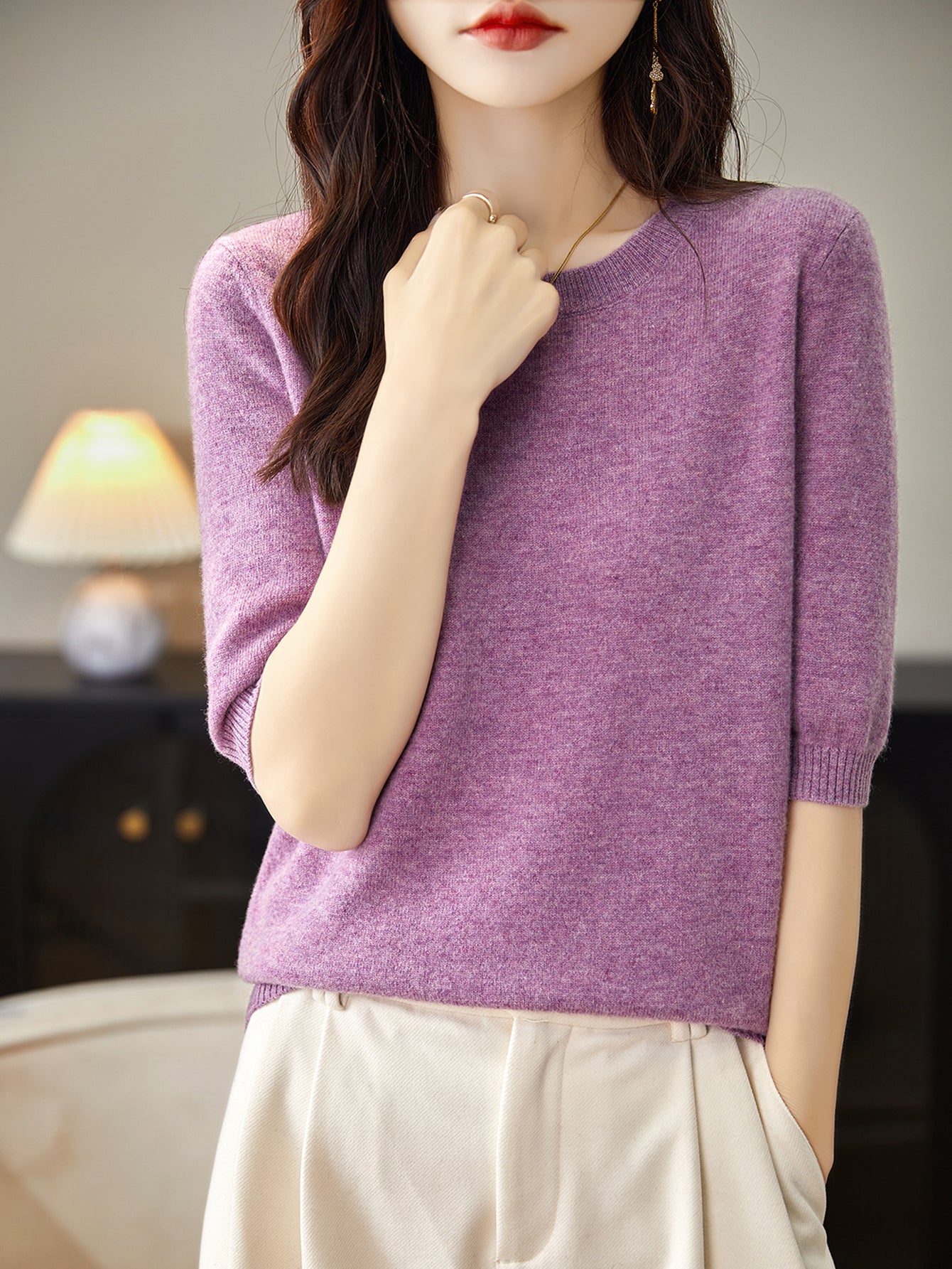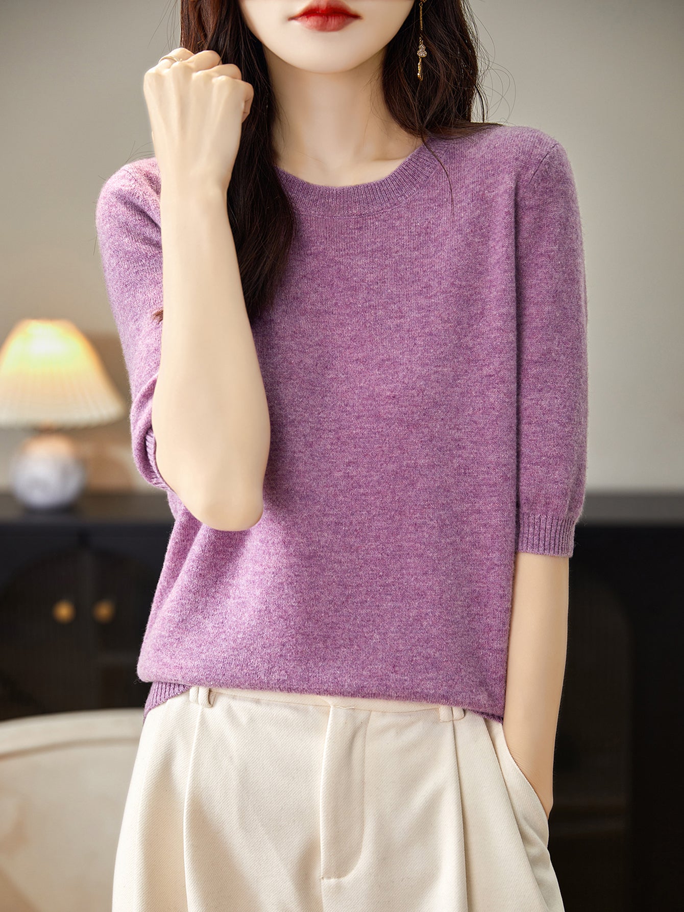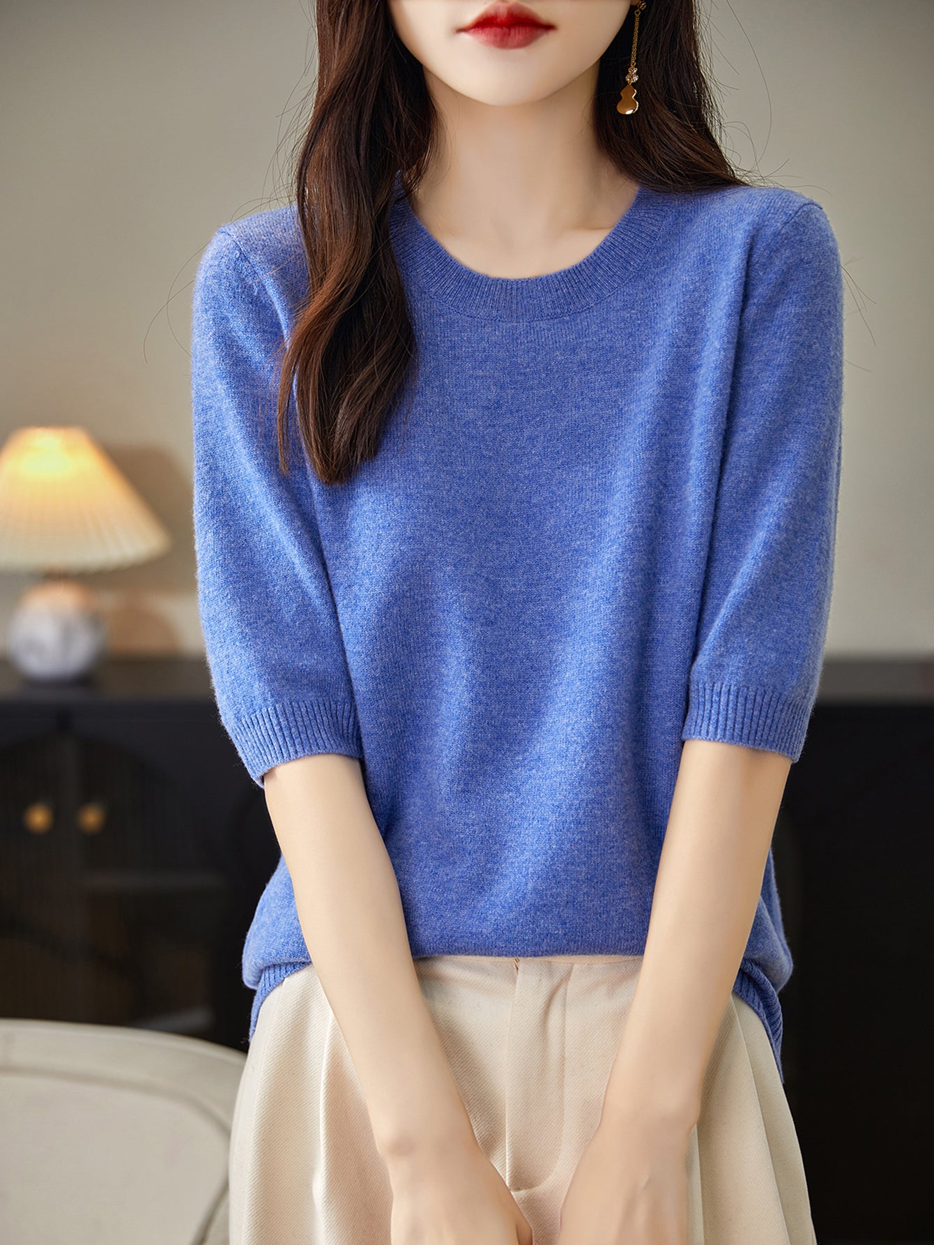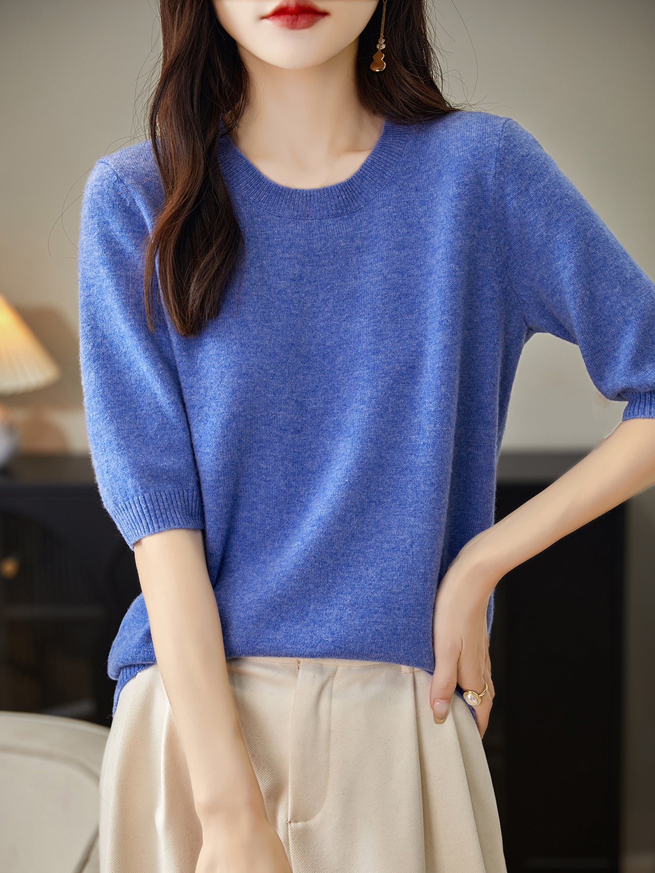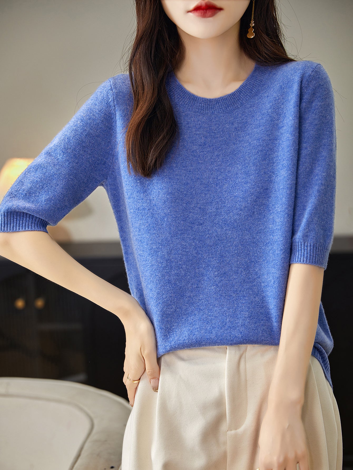 100% 메리노 울 크루넥 하프 슬리브 스웨터