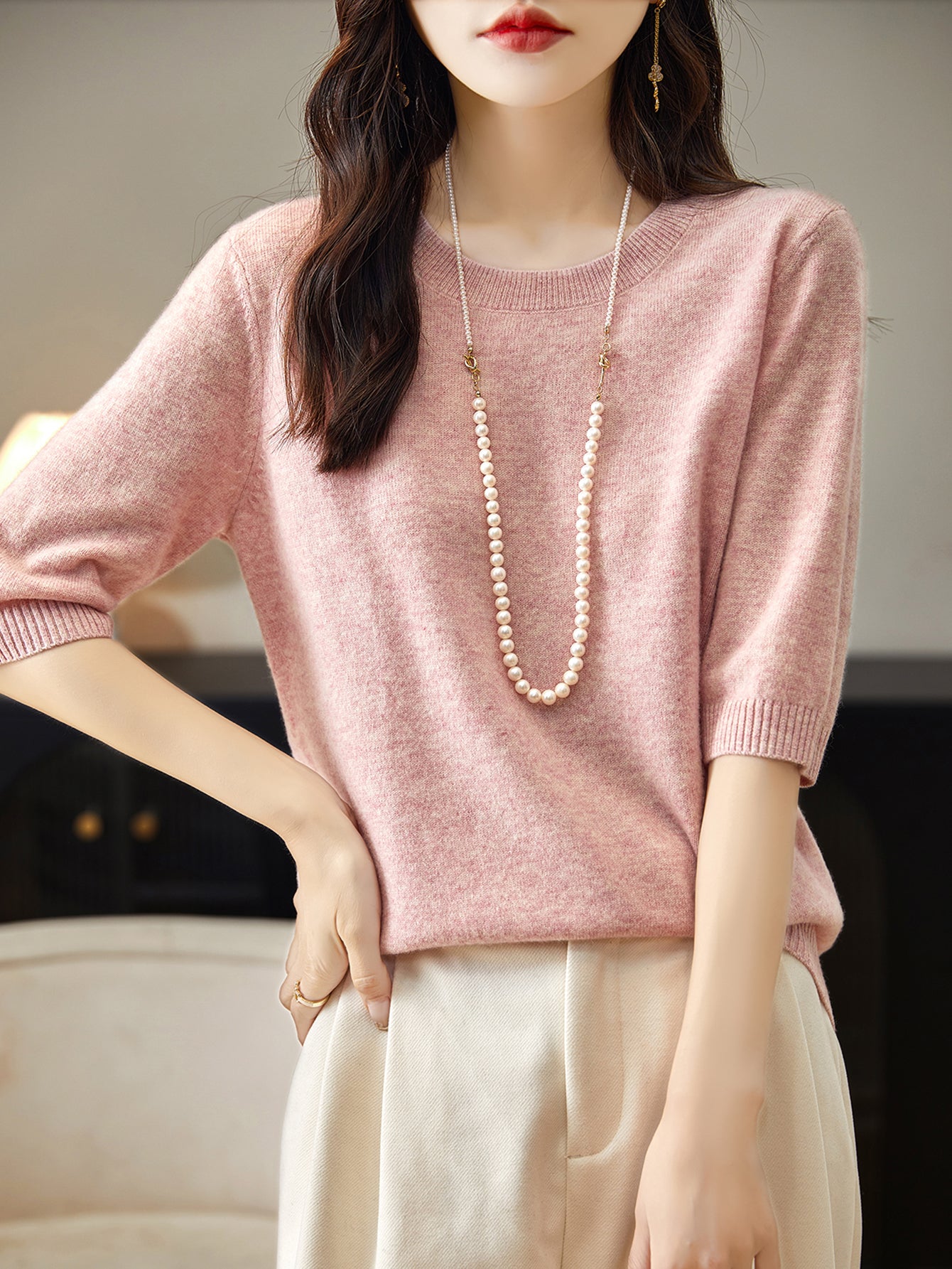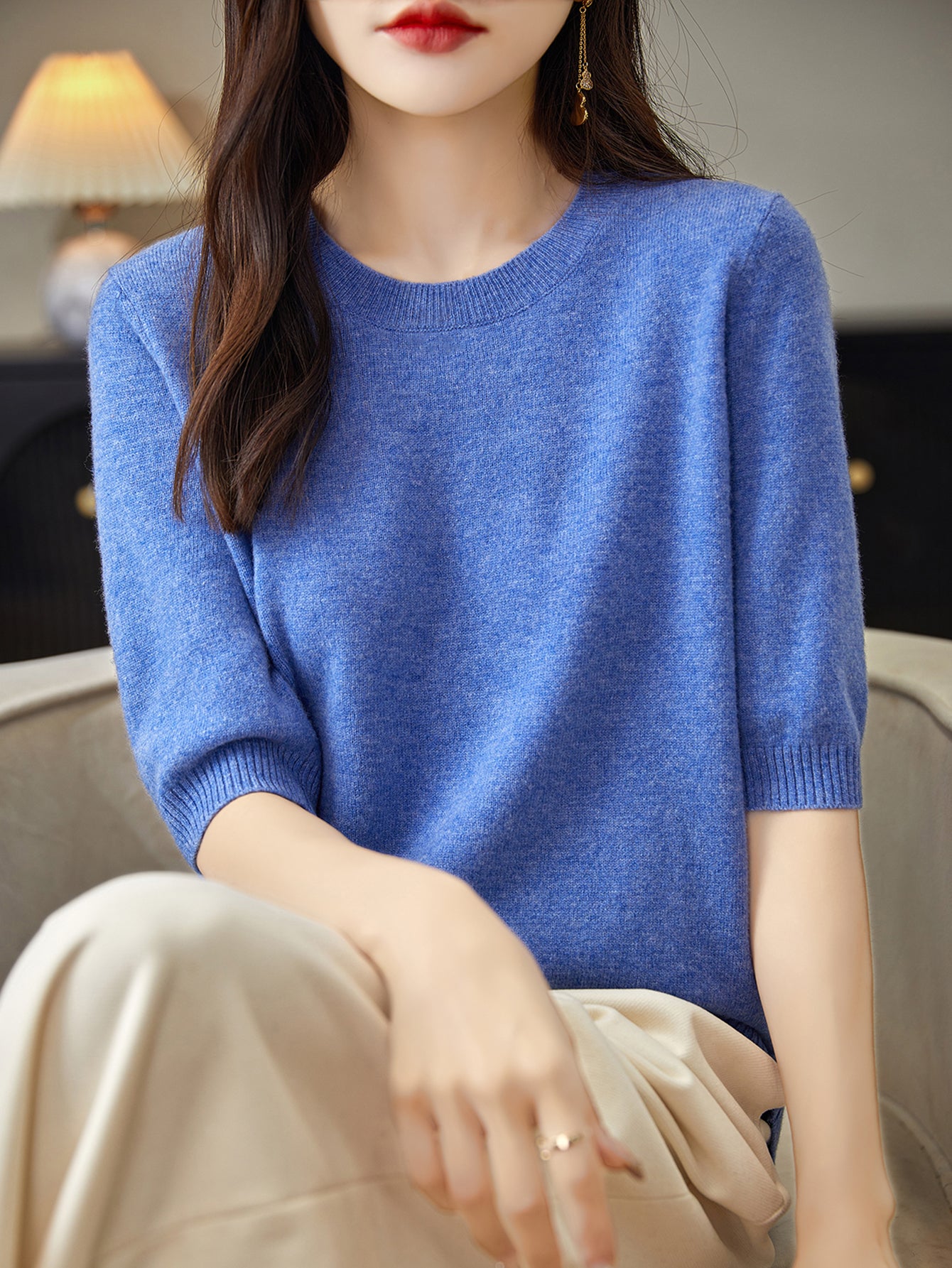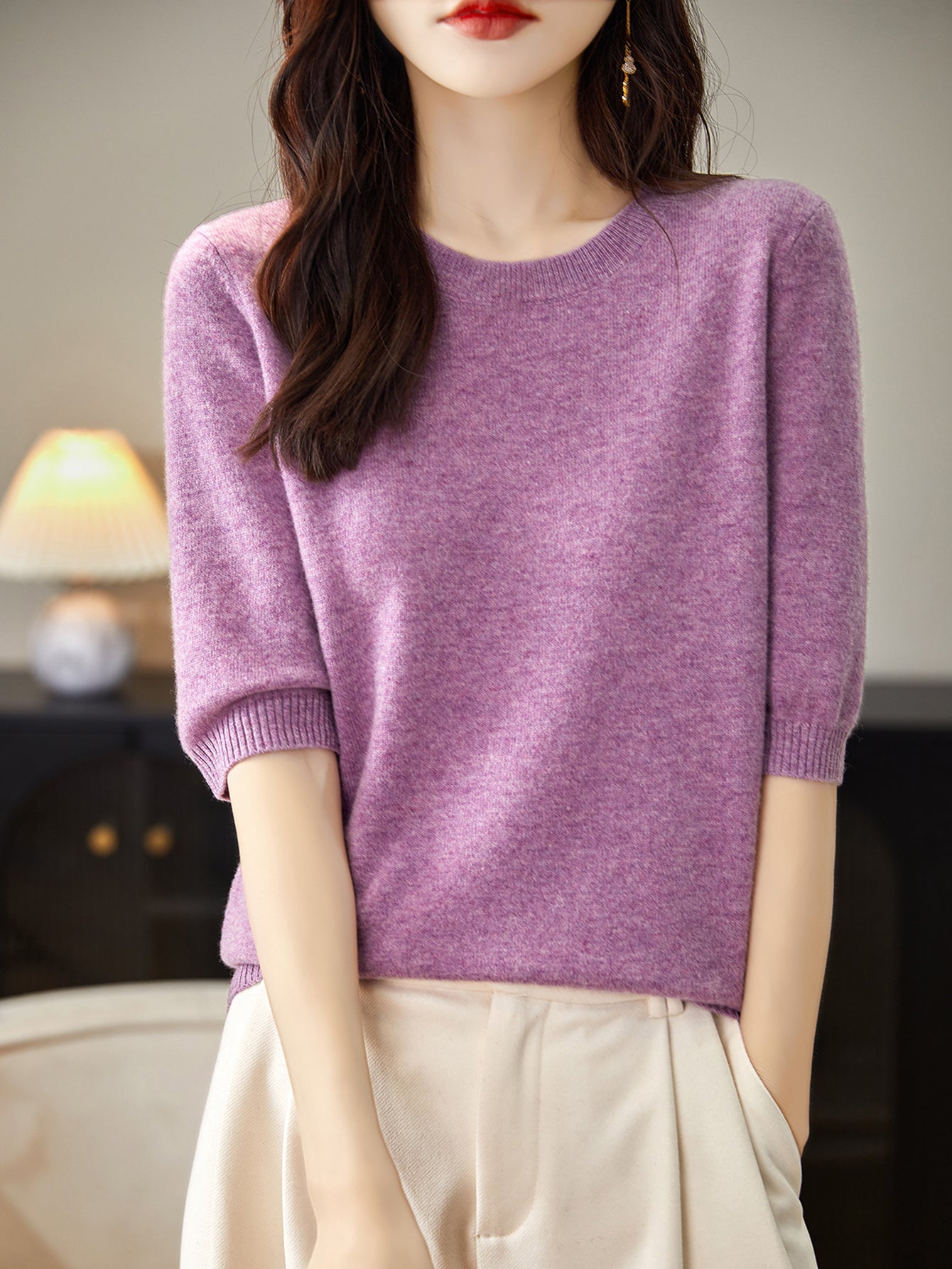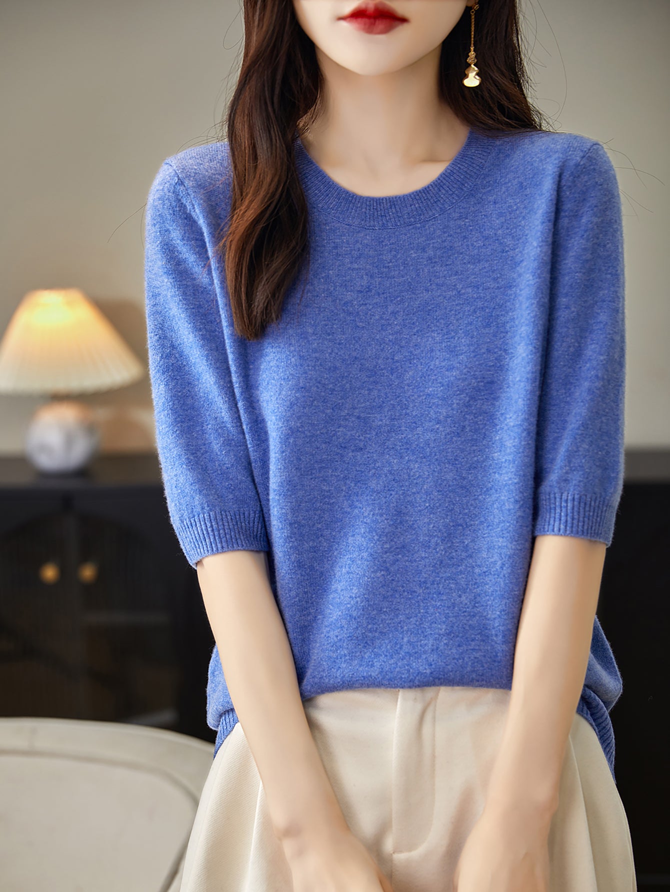 100% 메리노 울 크루넥 하프 슬리브 스웨터