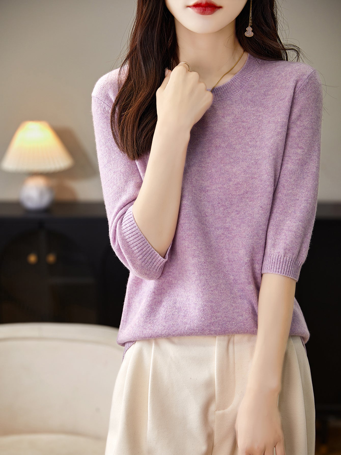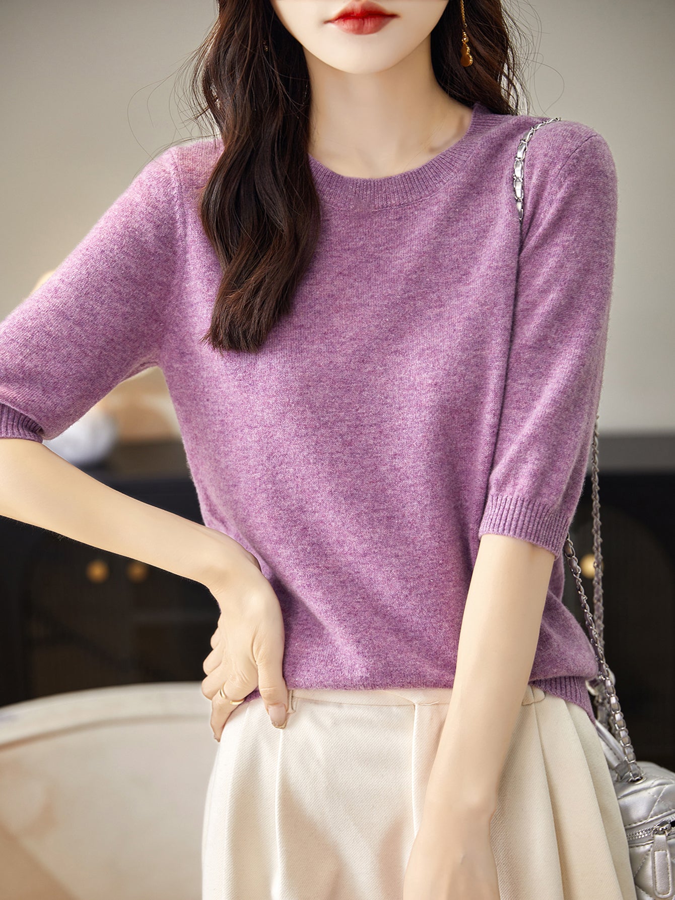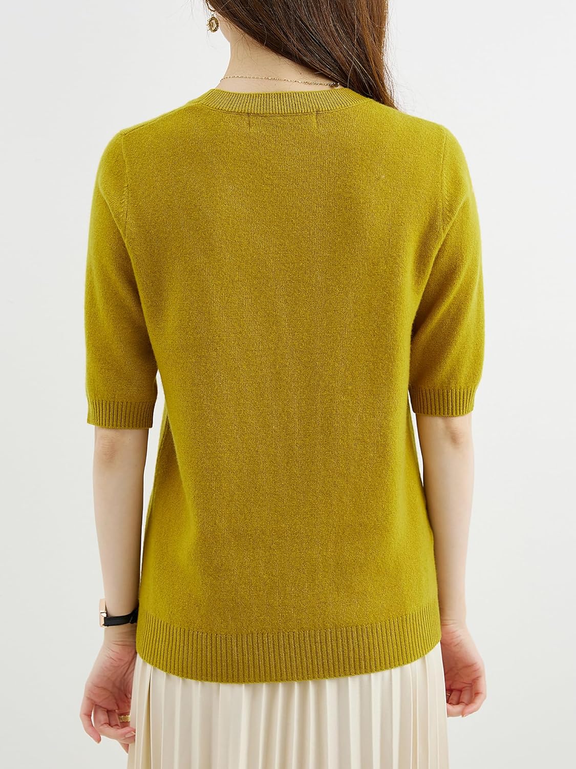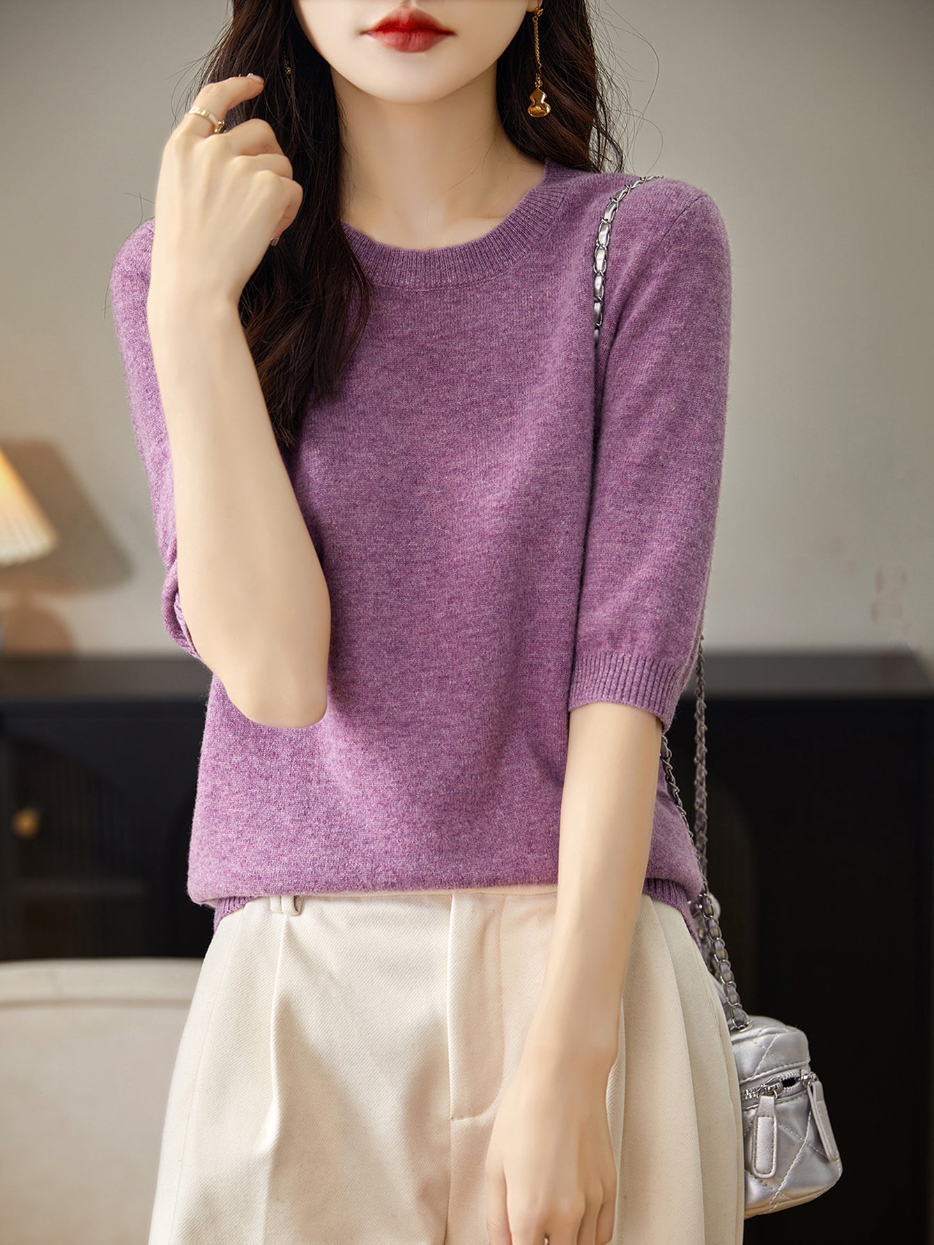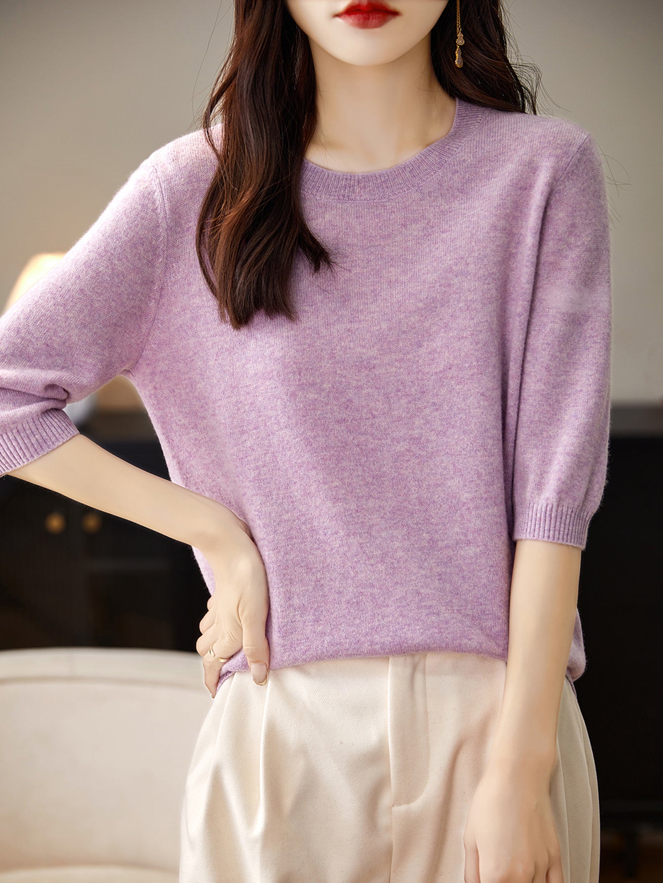 100% 메리노 울 크루넥 하프 슬리브 스웨터