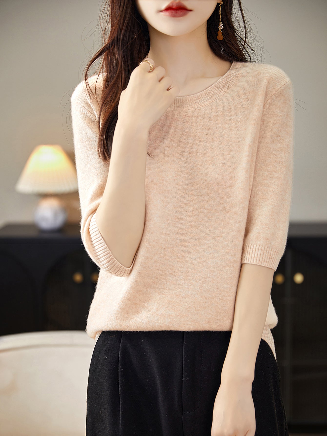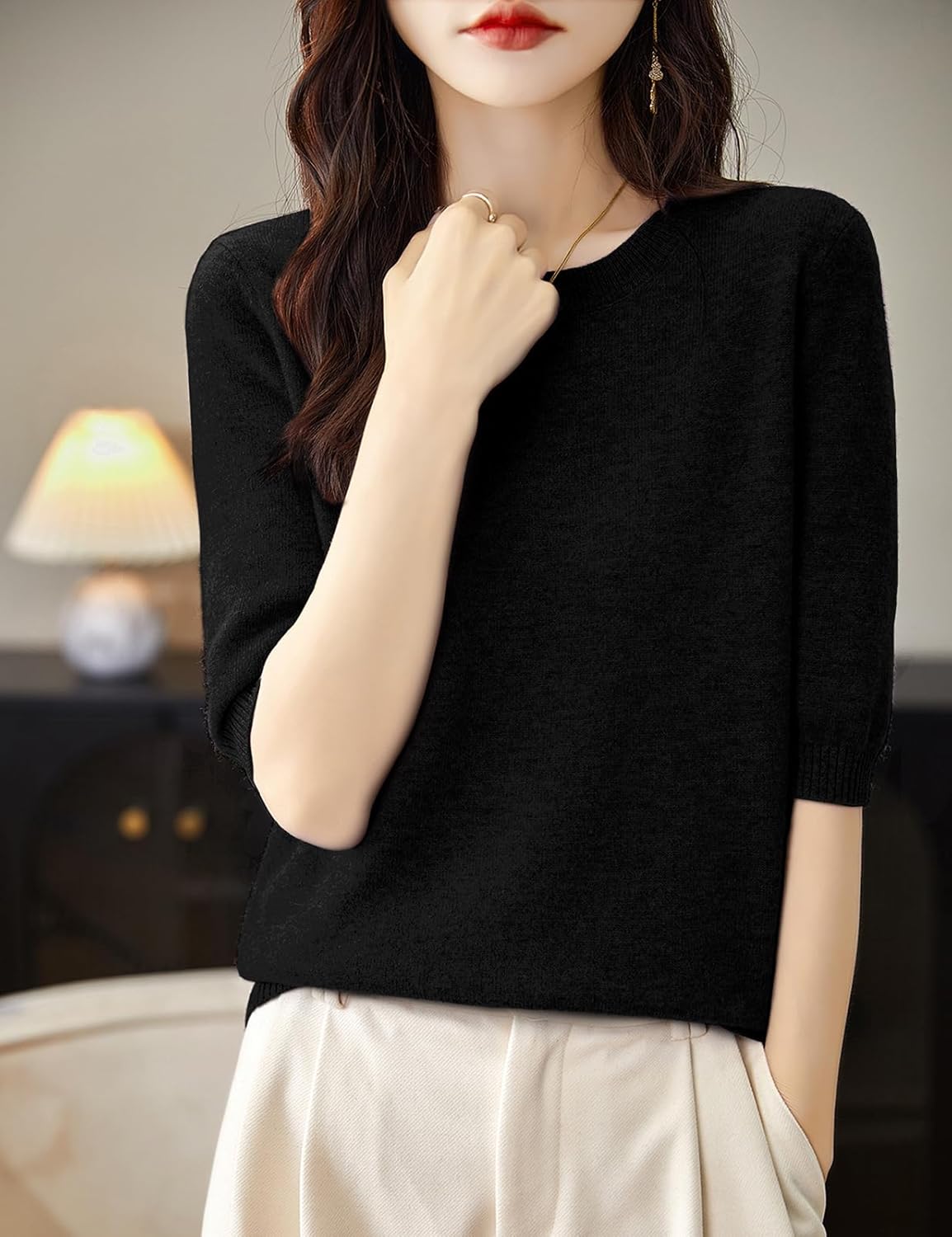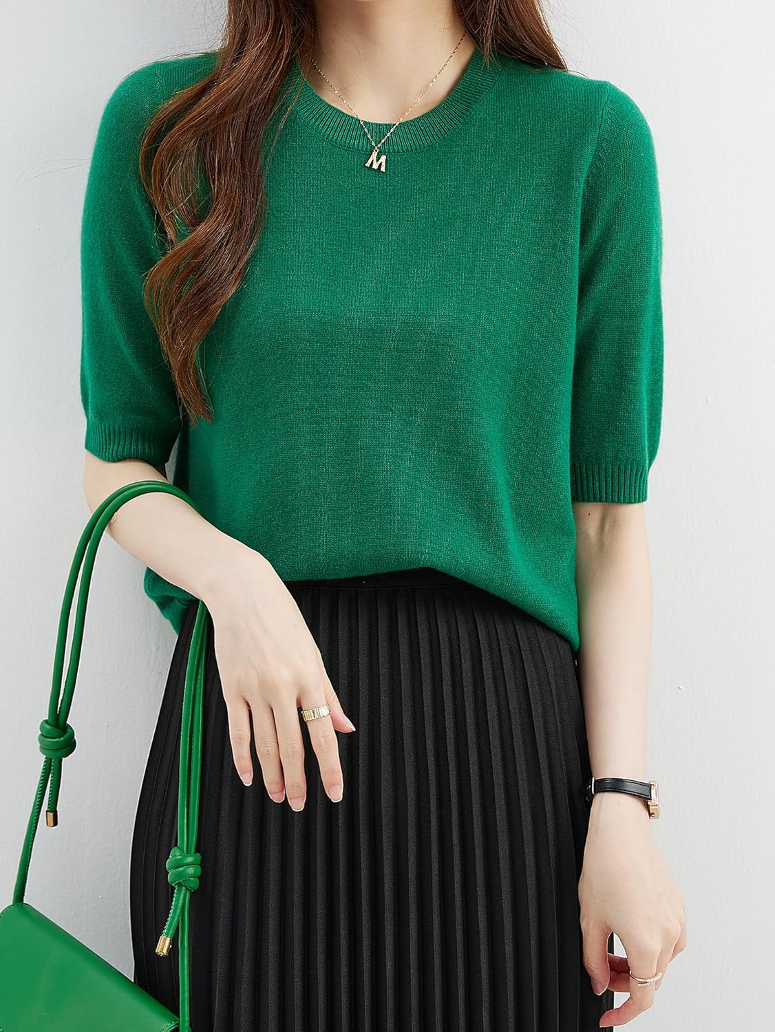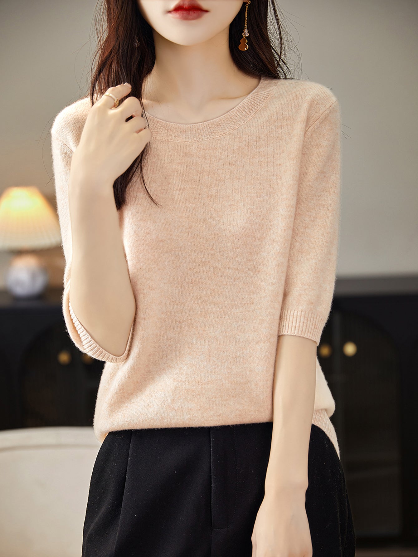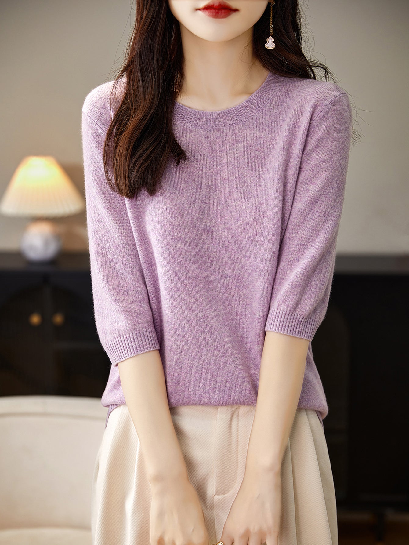 100% 메리노 울 크루넥 하프 슬리브 스웨터