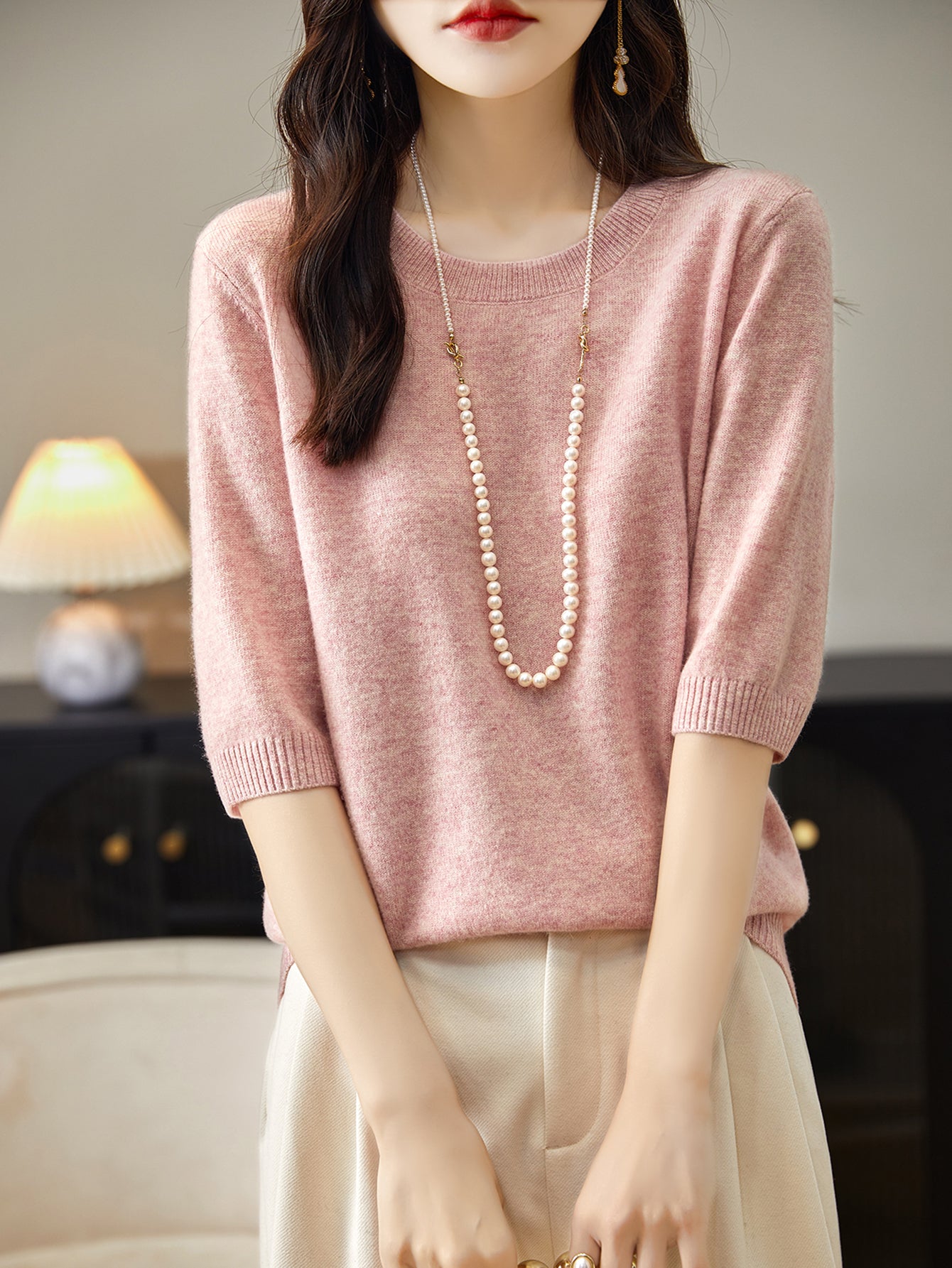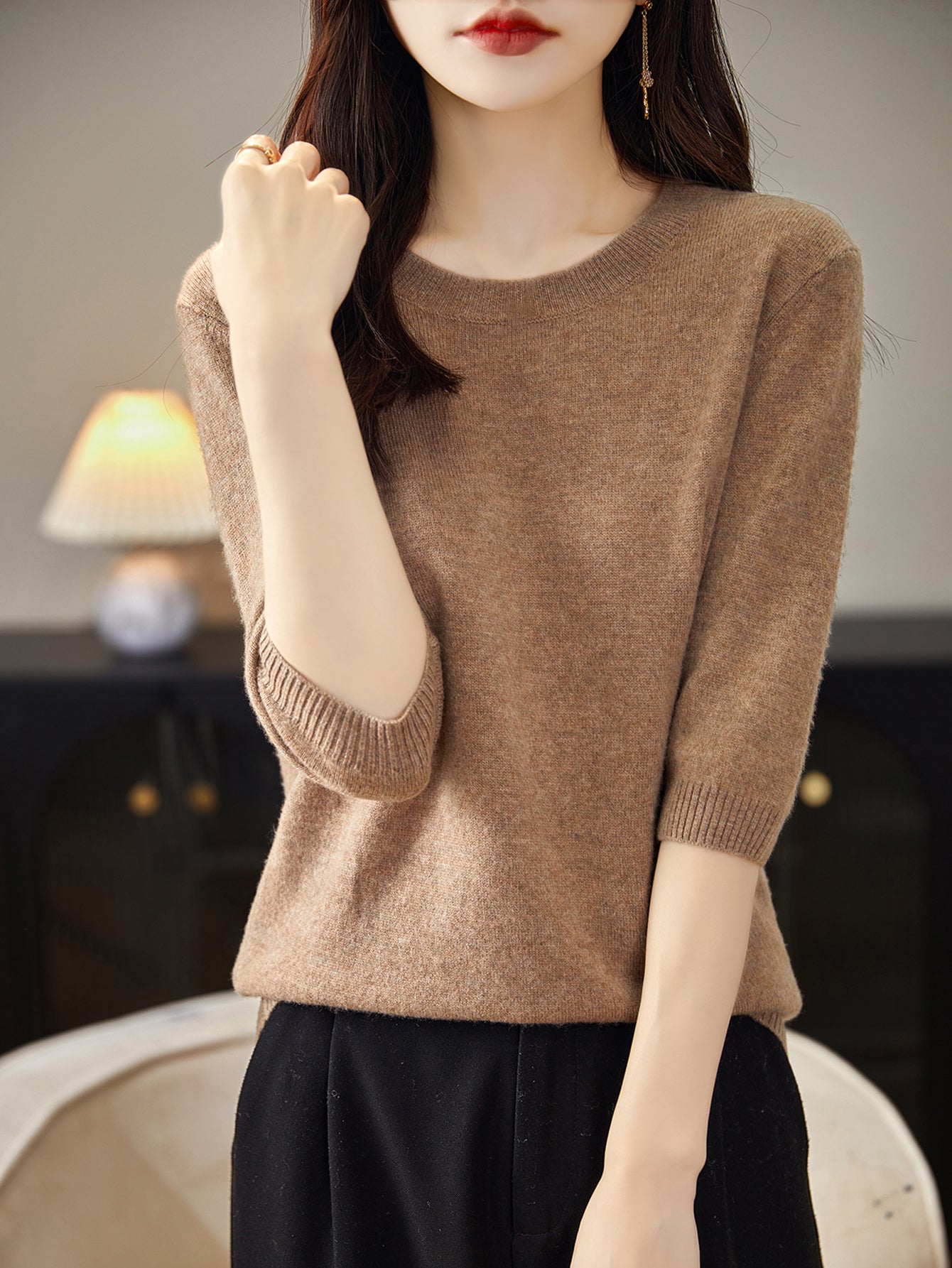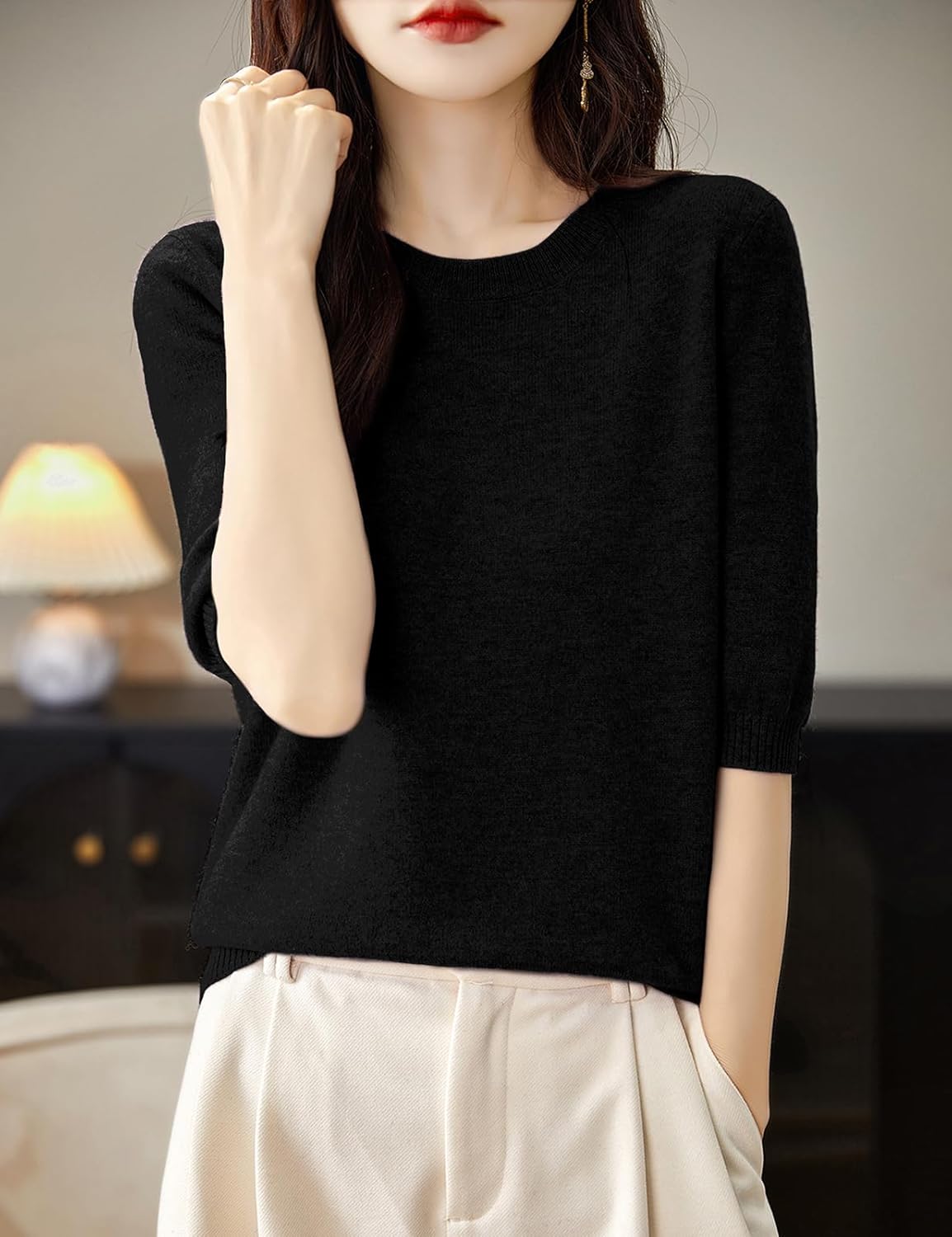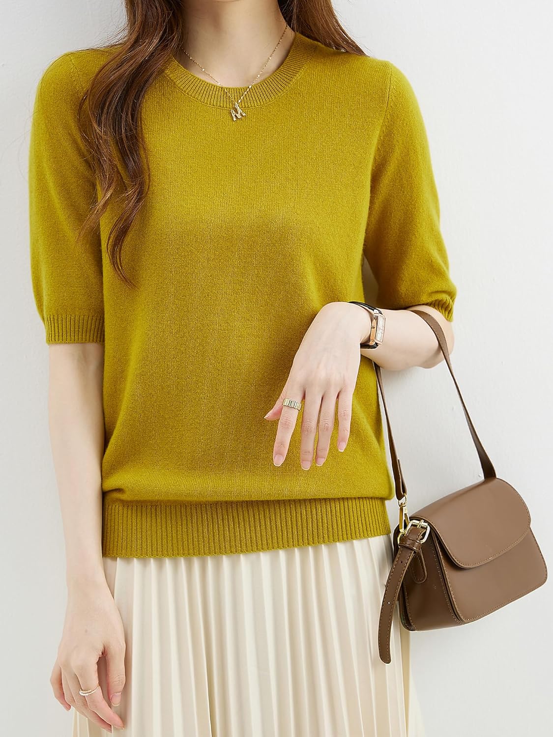 100% 메리노 울 크루넥 하프 슬리브 스웨터