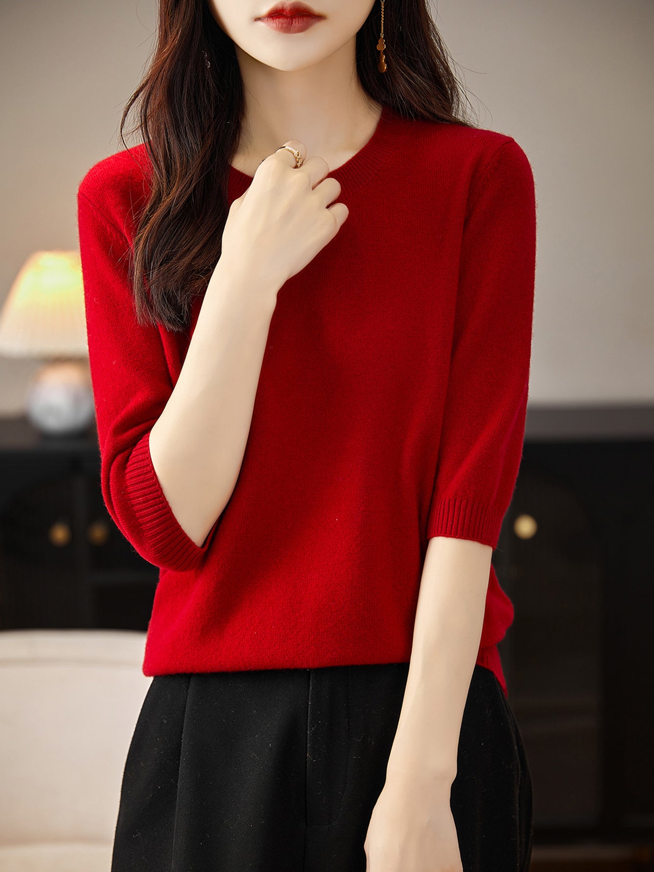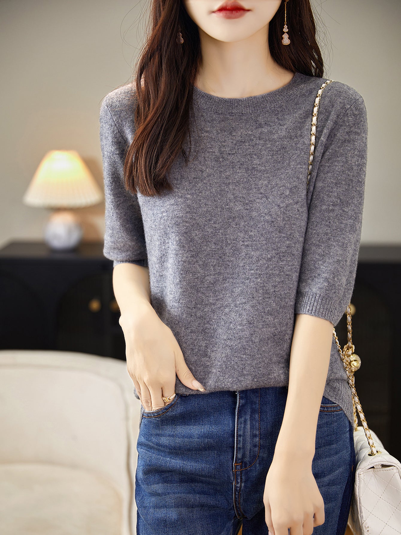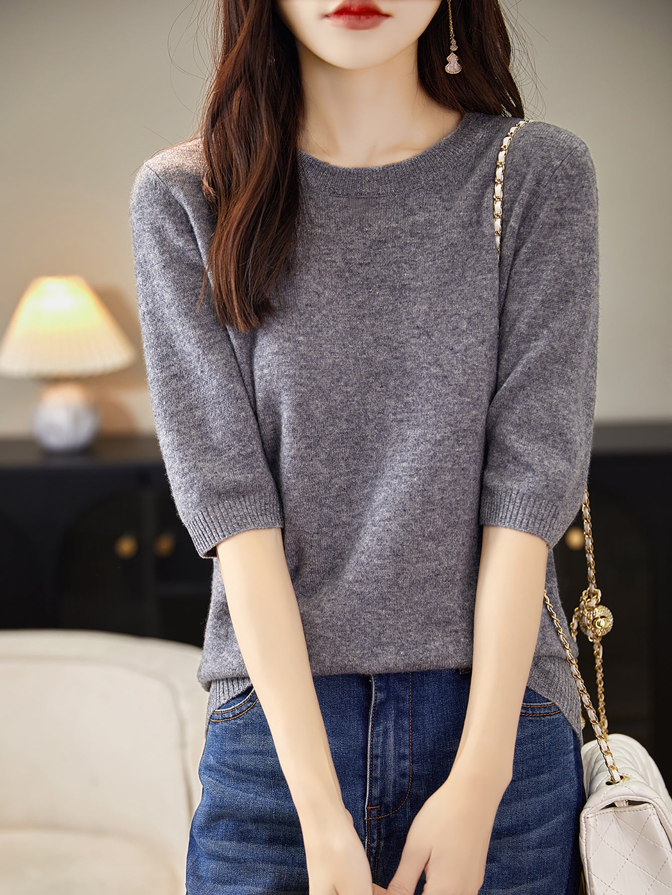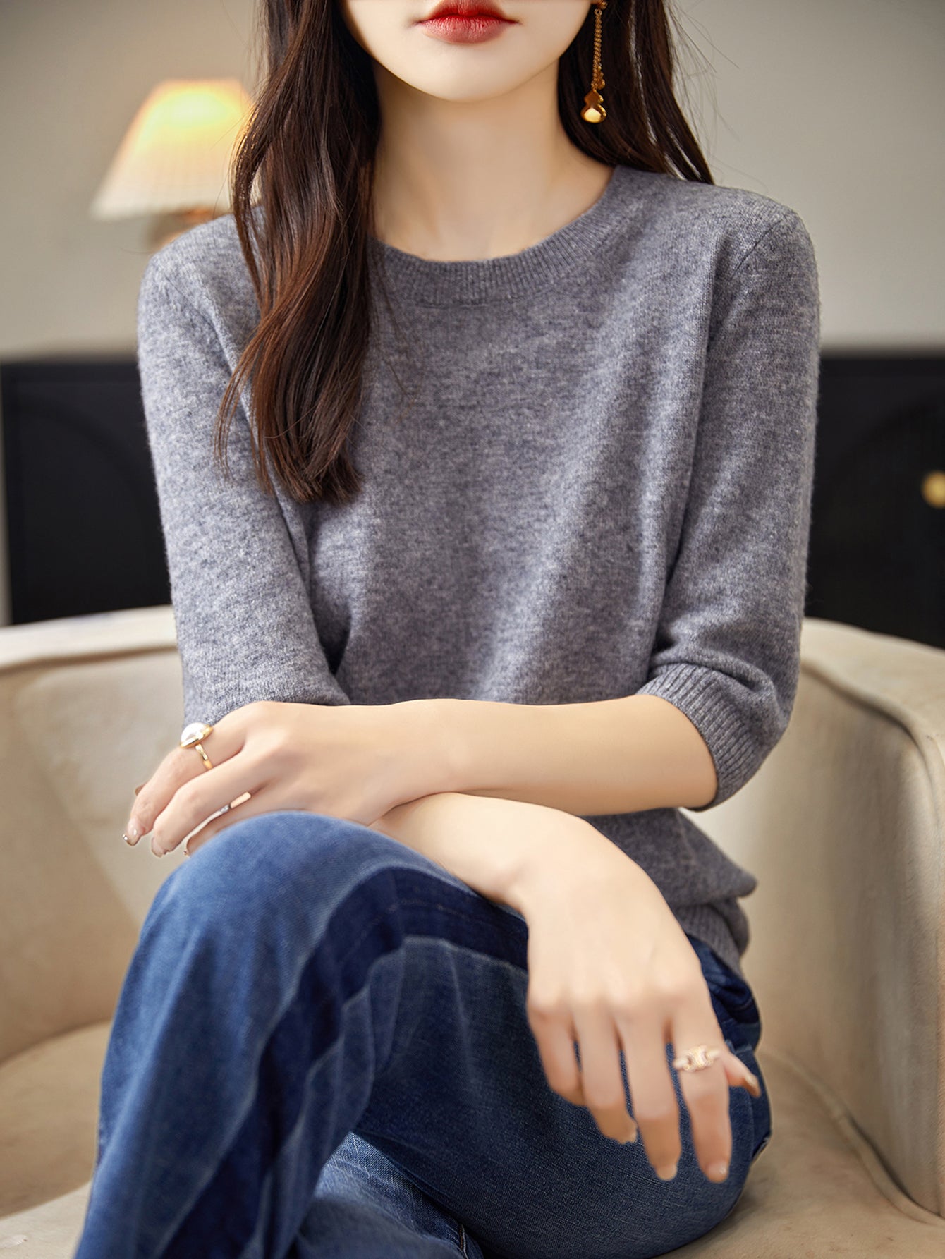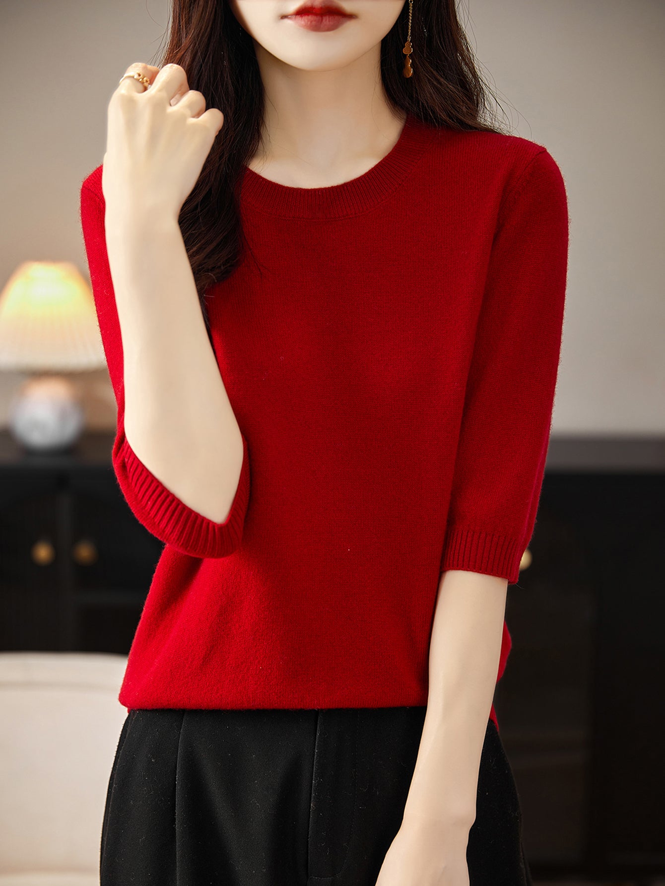100% 메리노 울 크루넥 하프 슬리브 스웨터