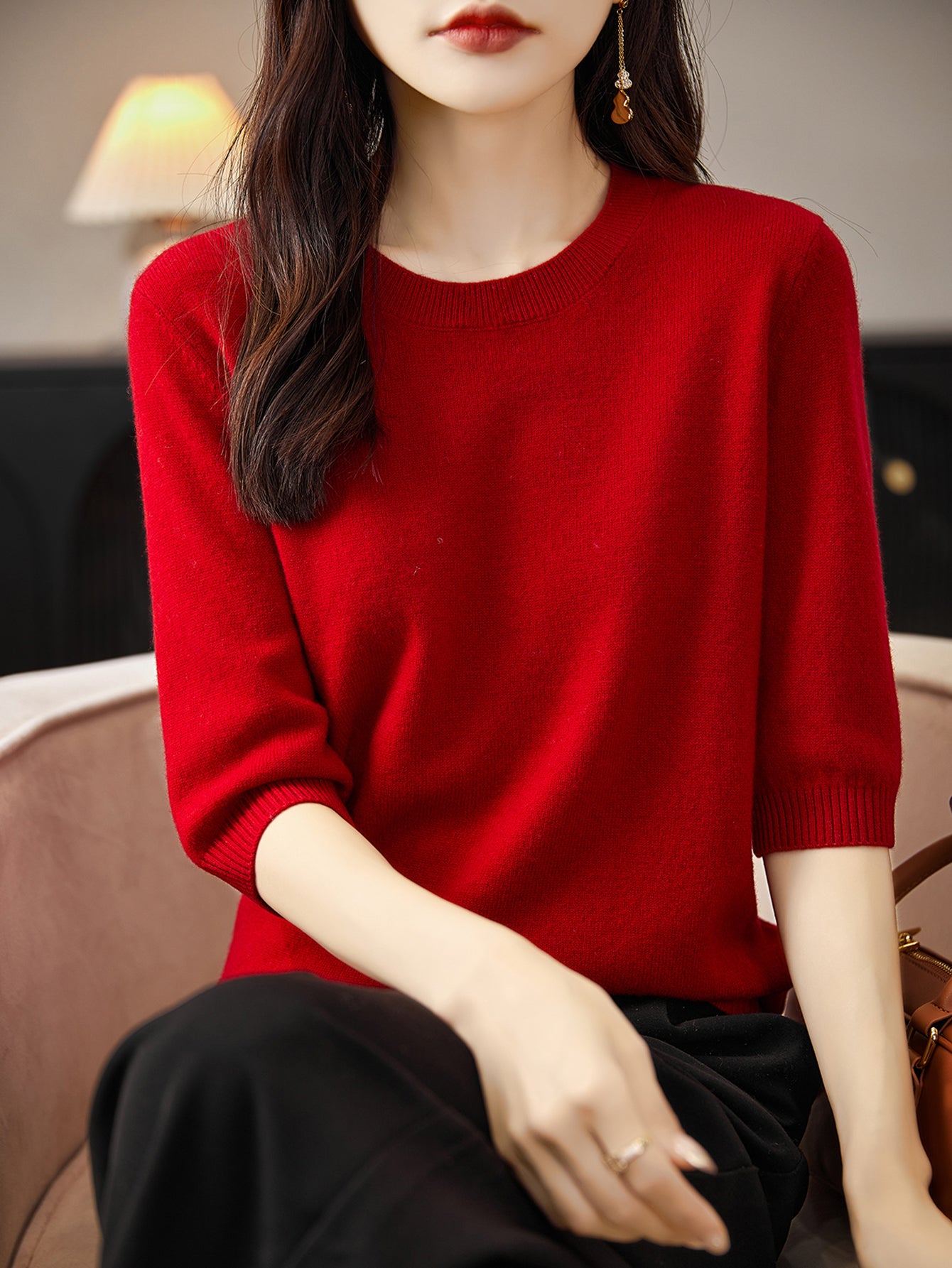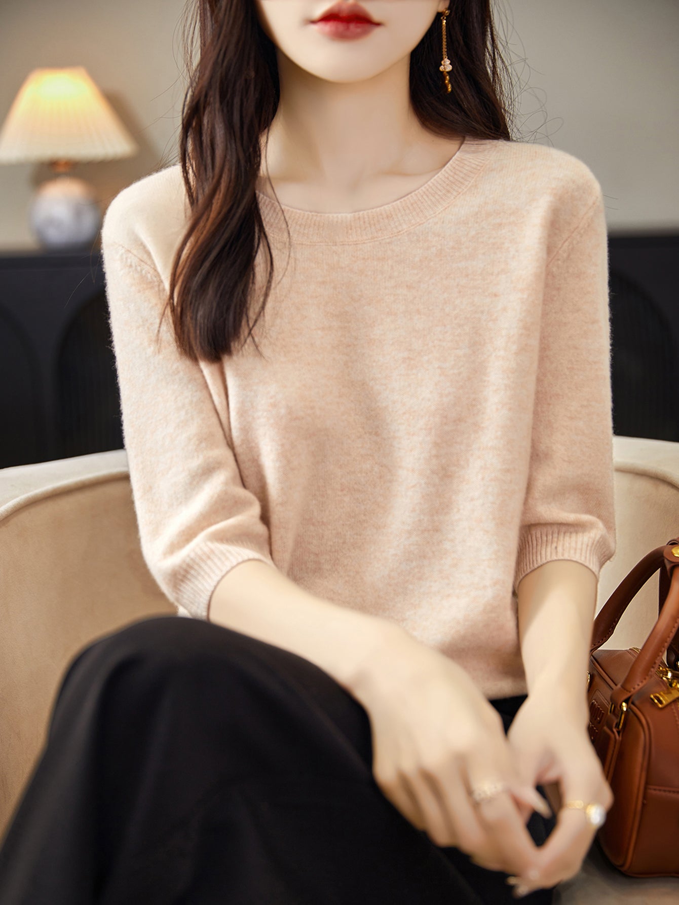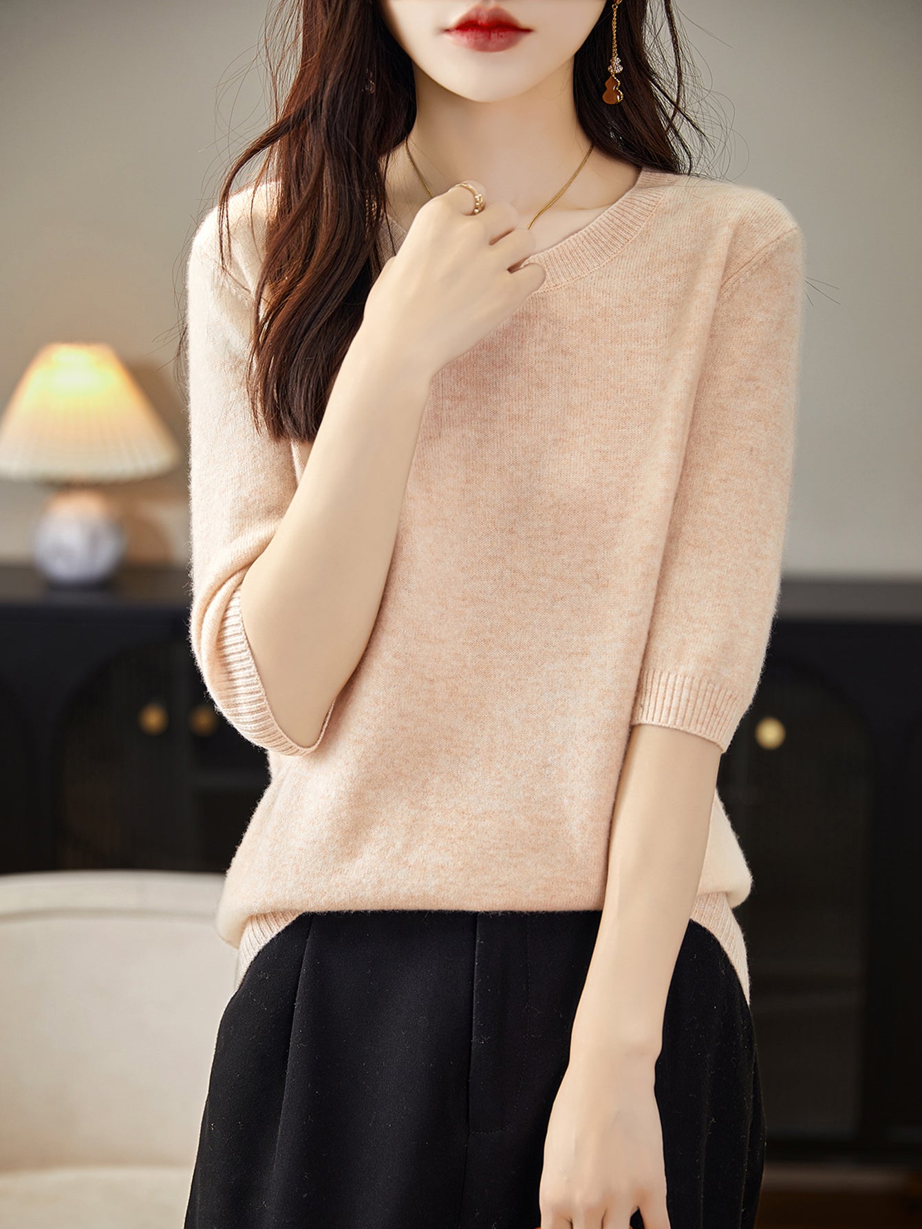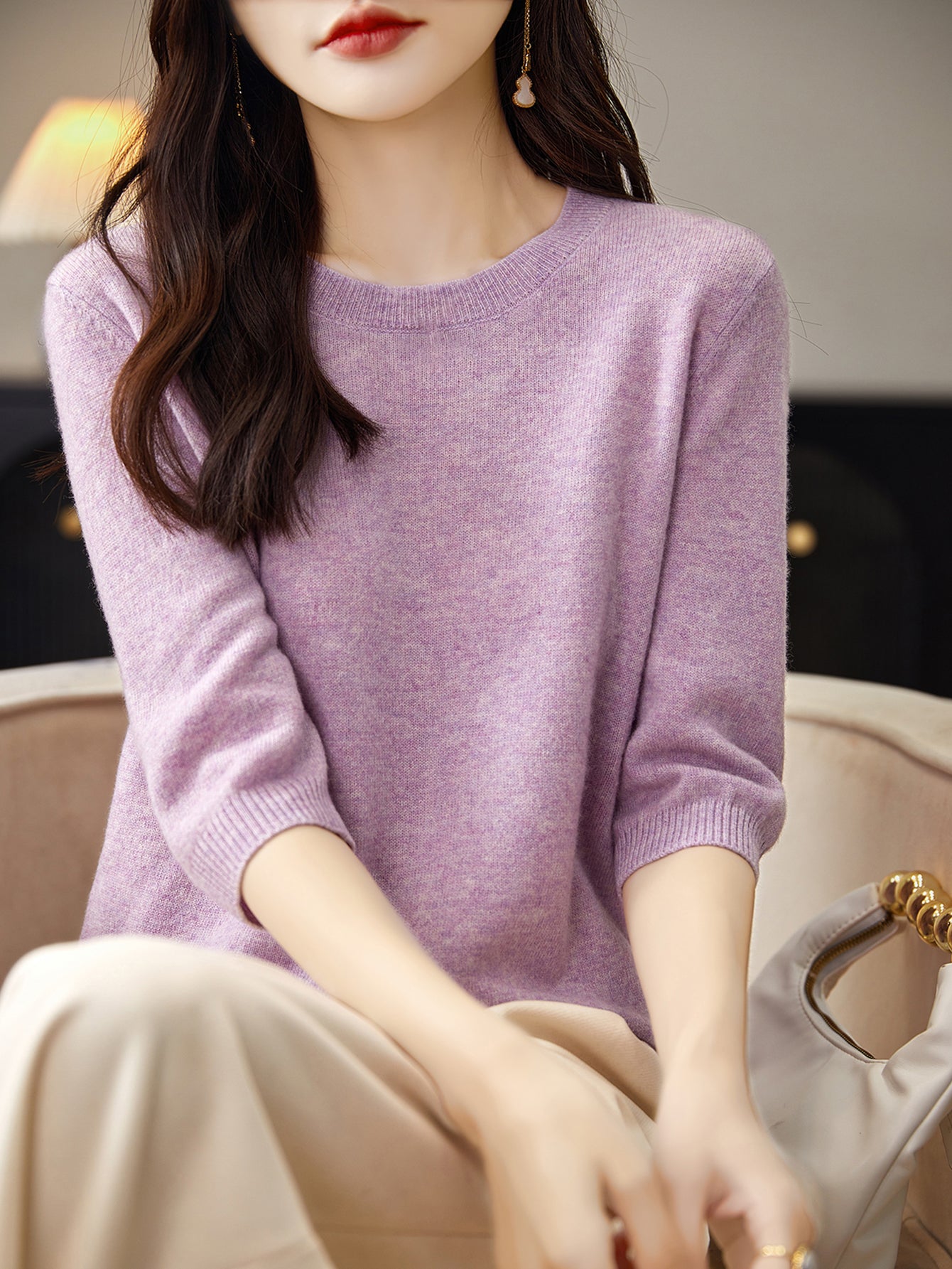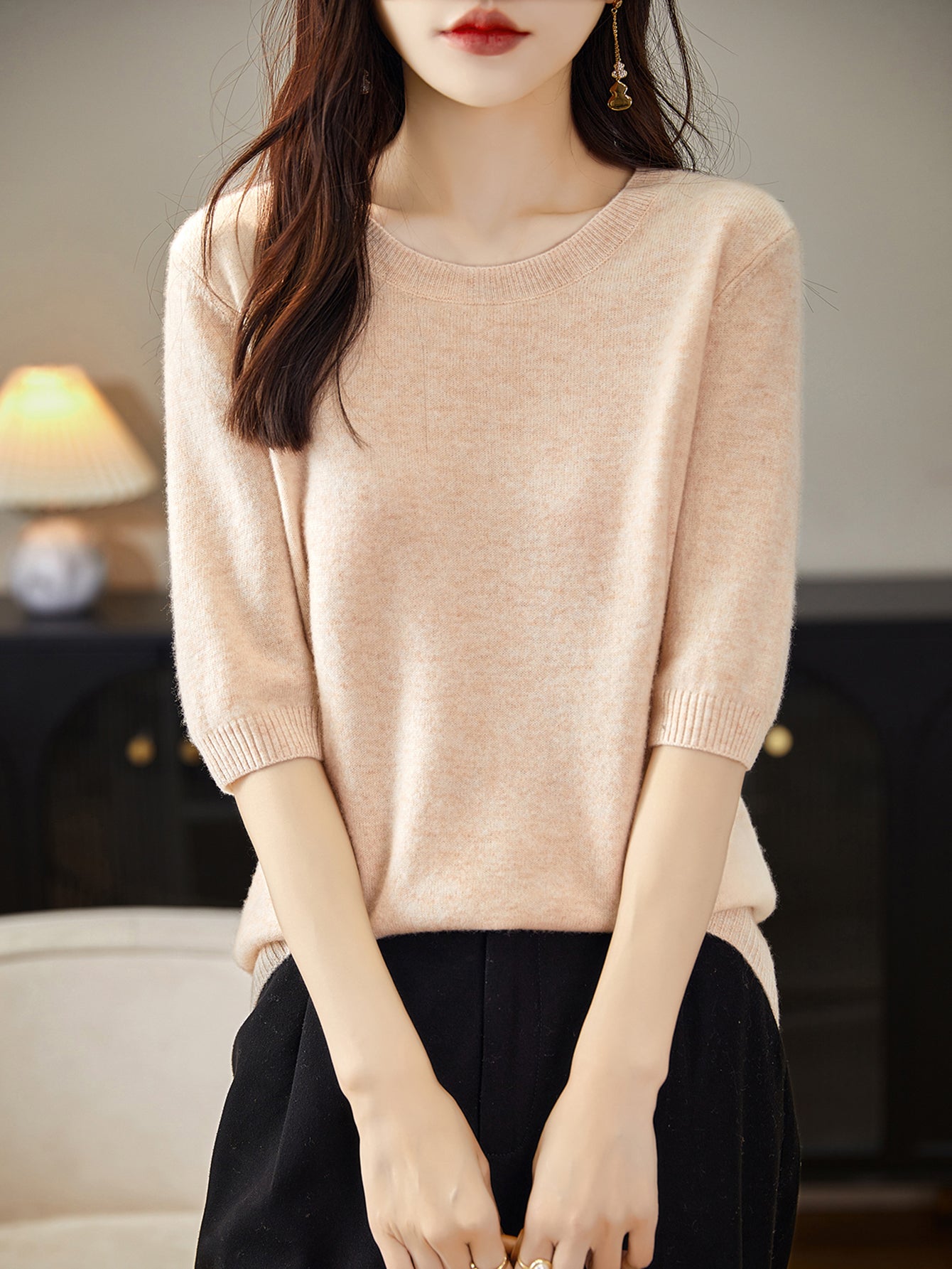 100% 메리노 울 크루넥 하프 슬리브 스웨터