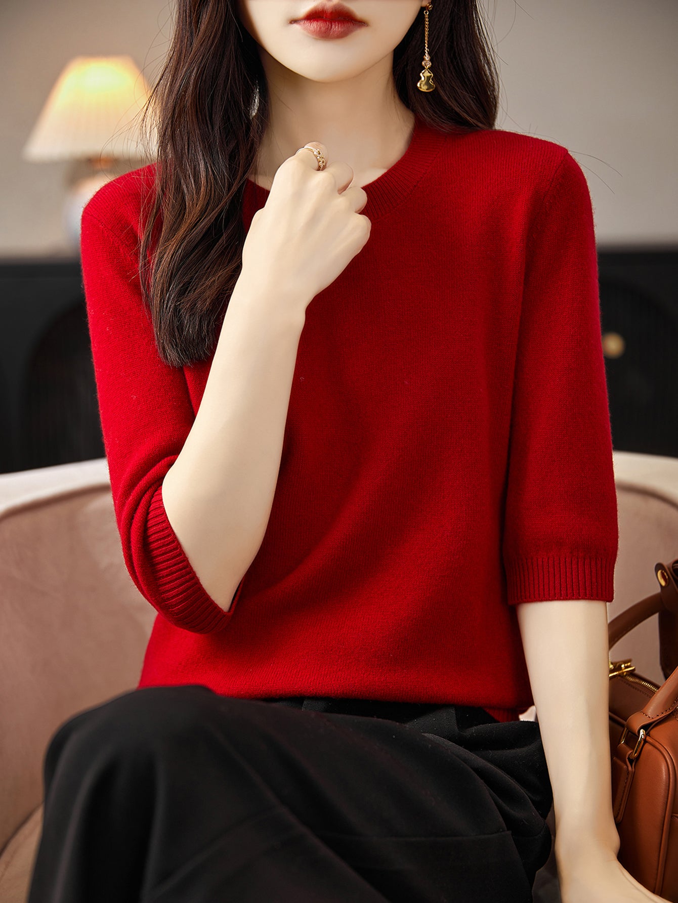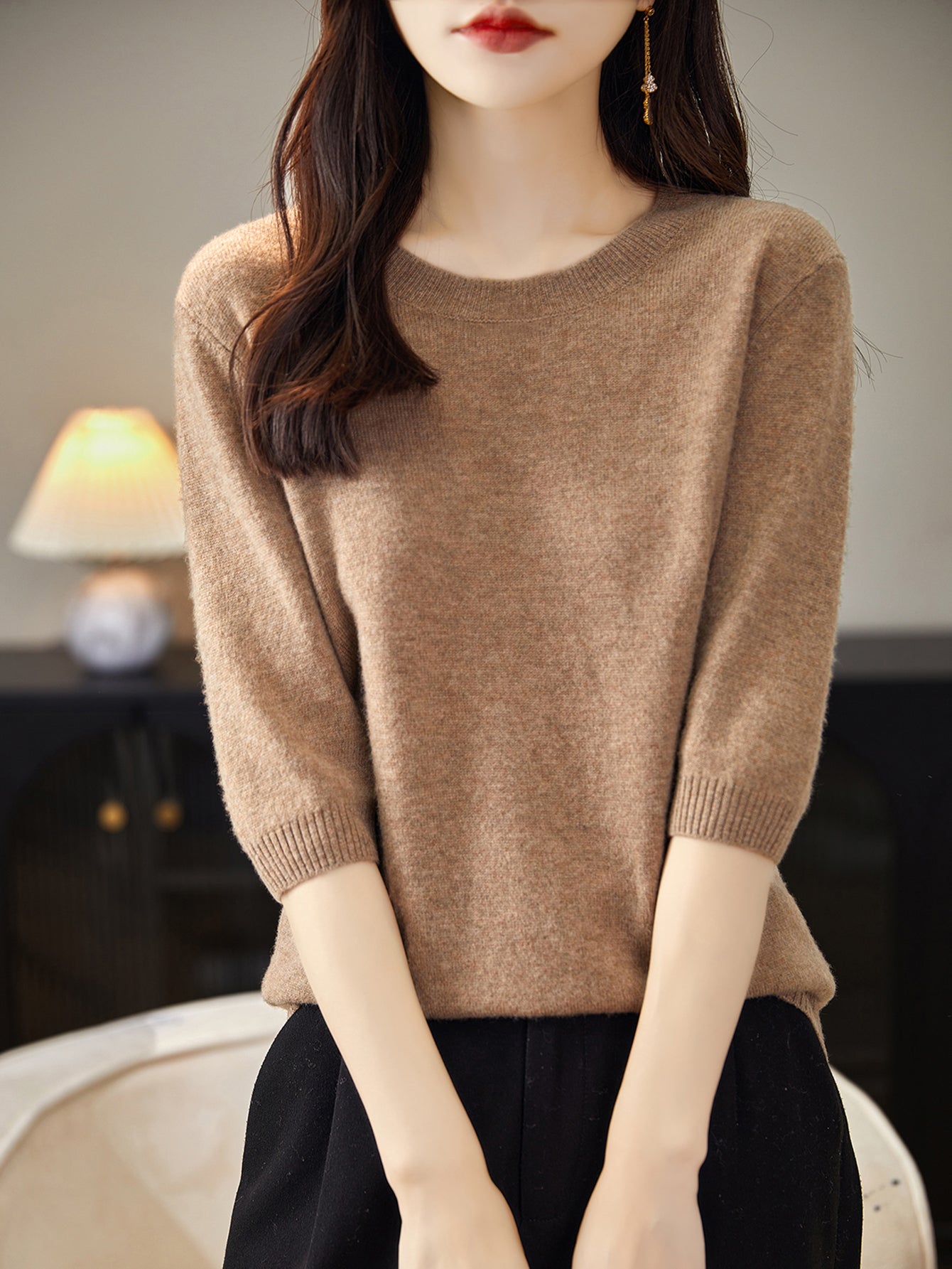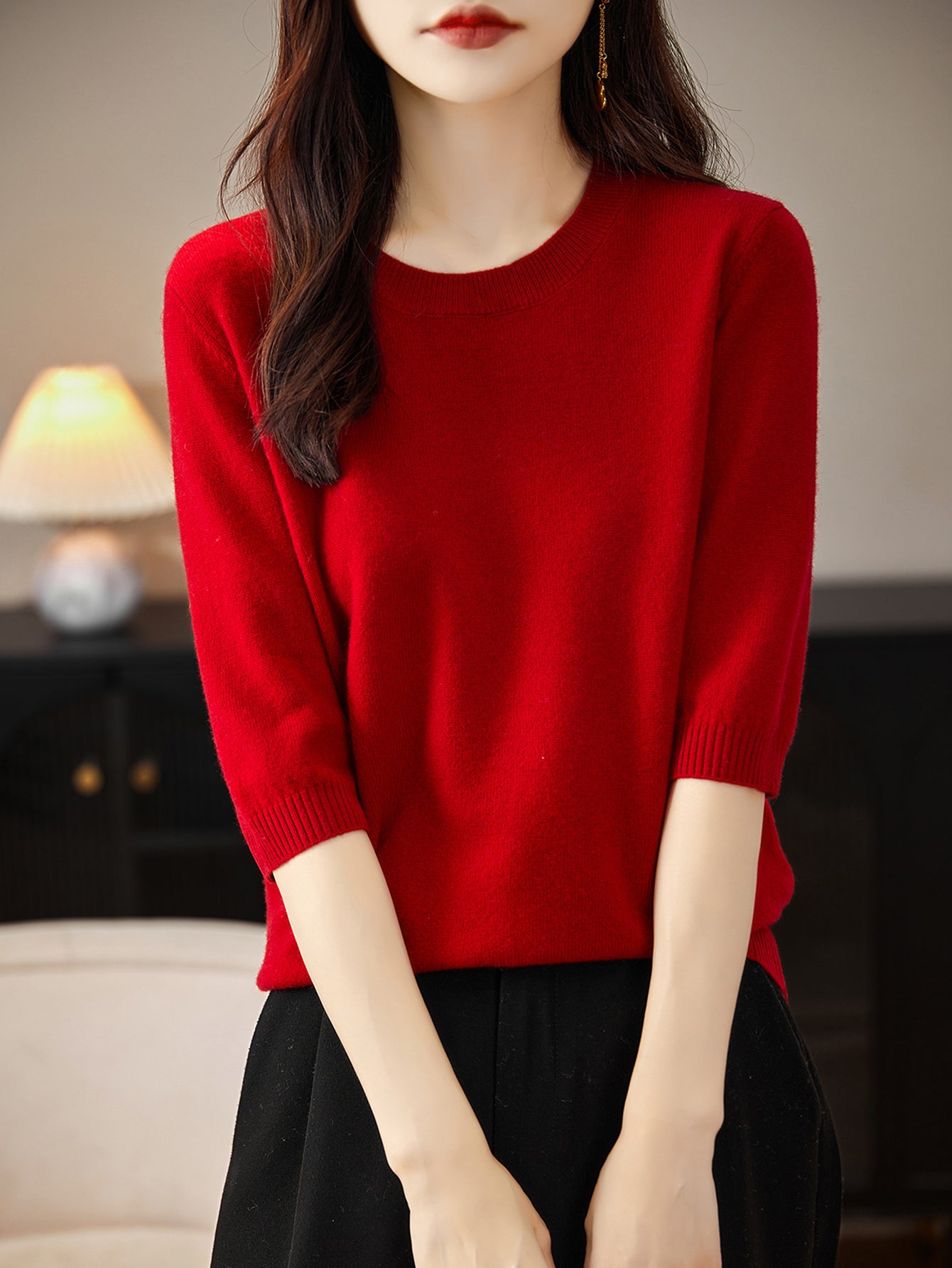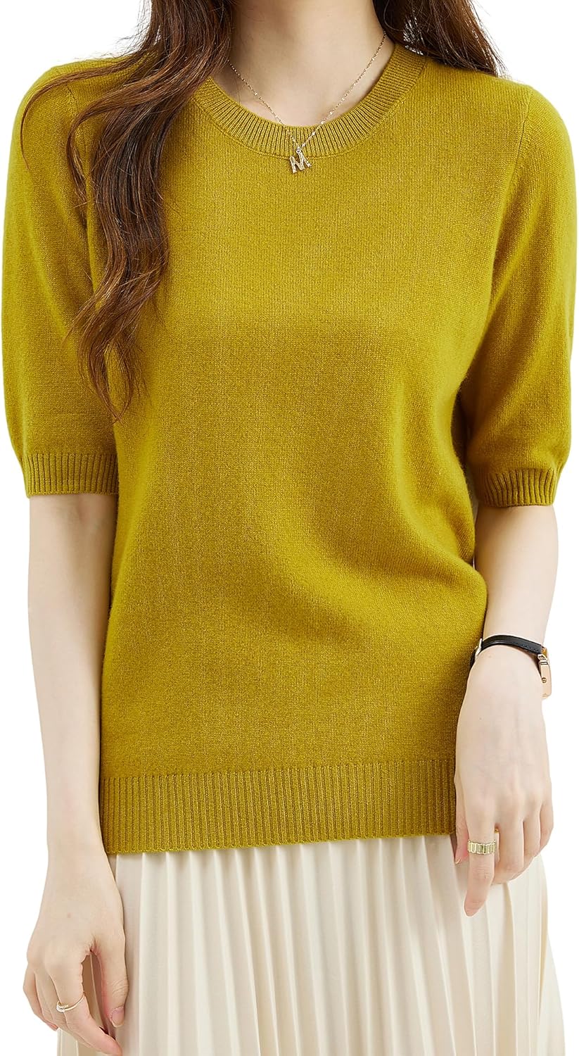 100% 메리노 울 크루넥 하프 슬리브 스웨터
