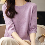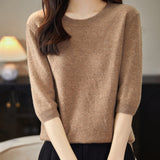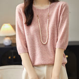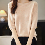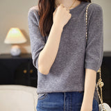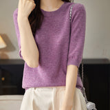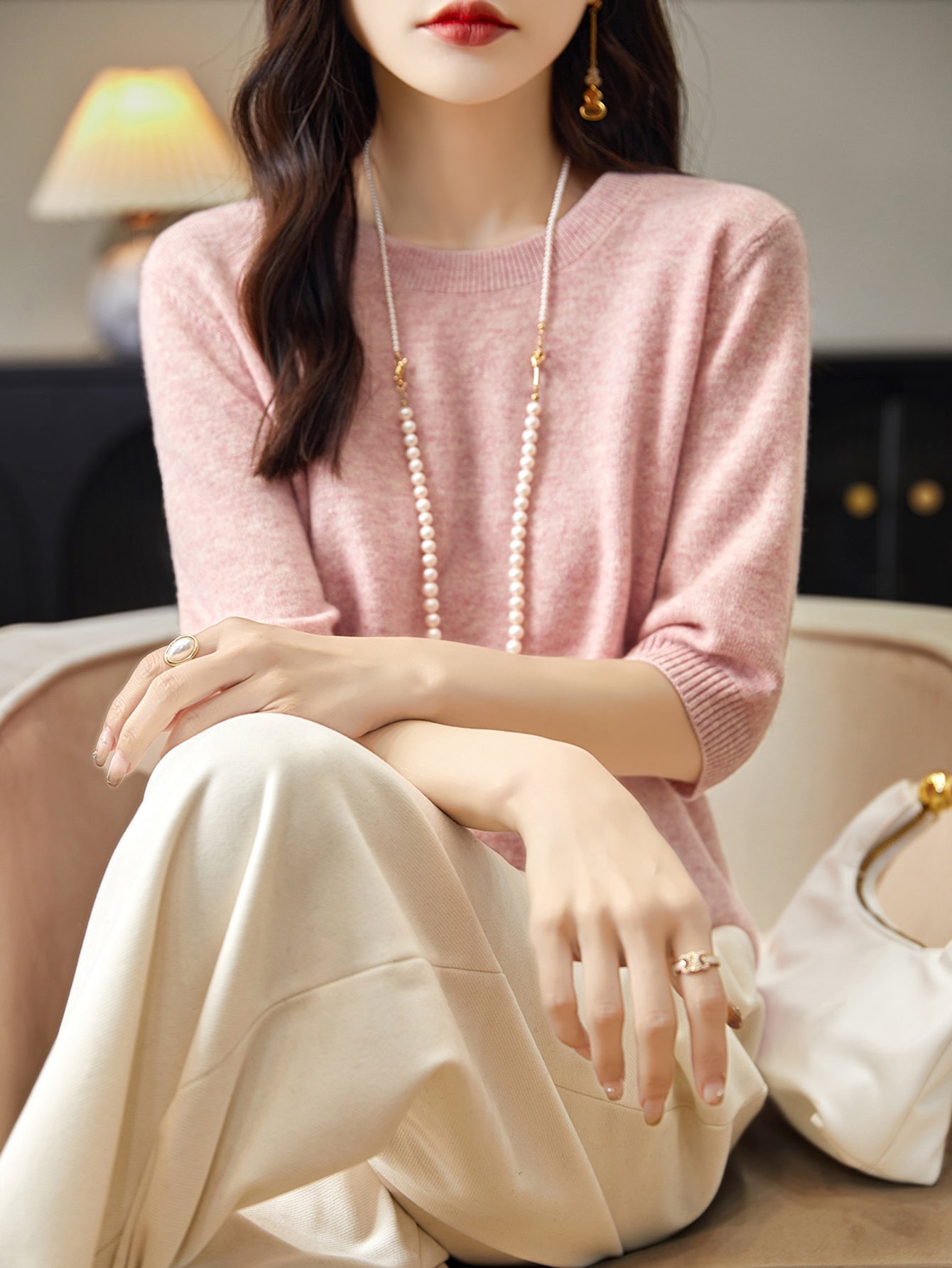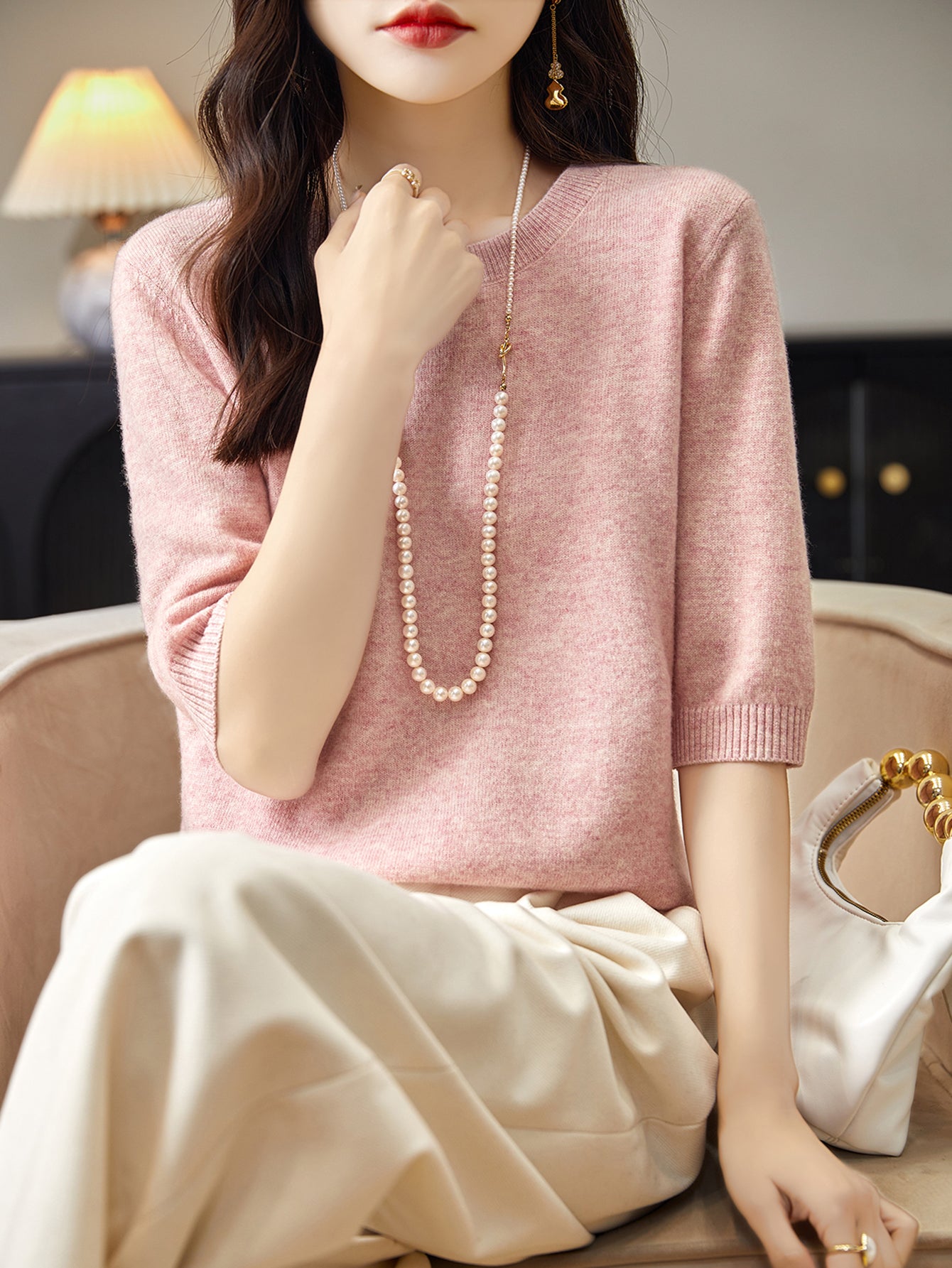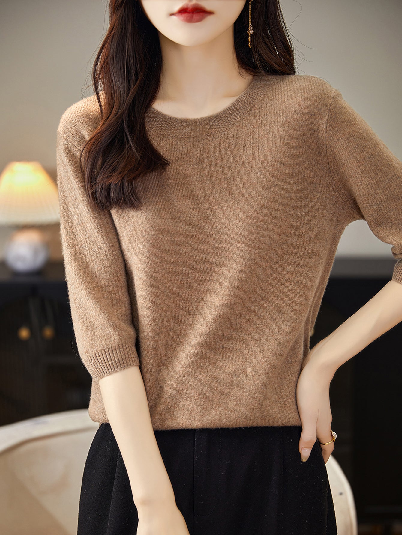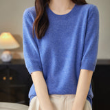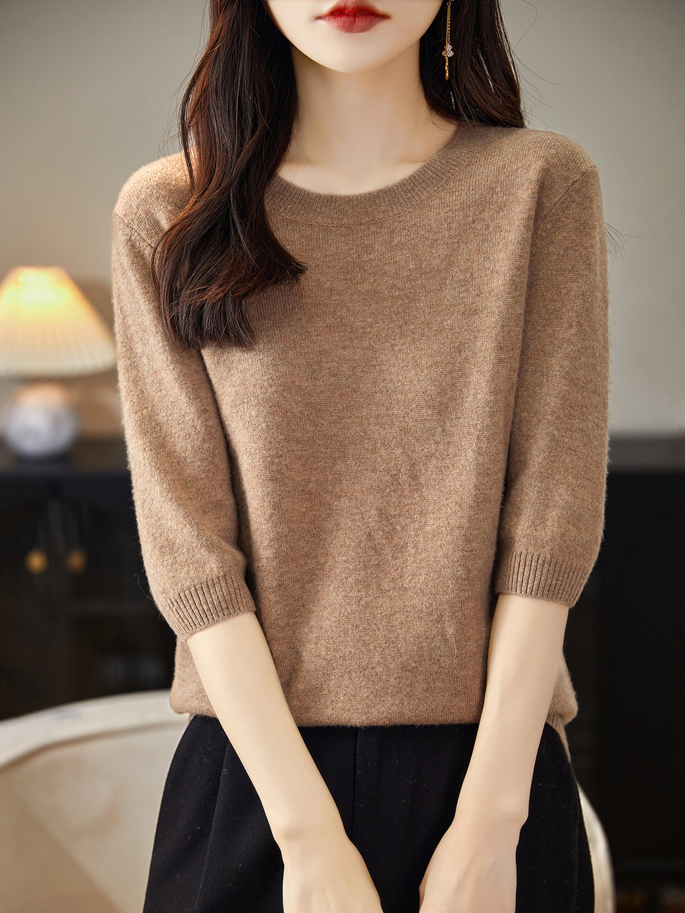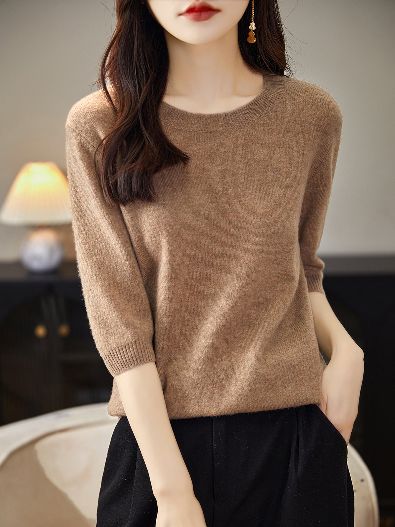 100% 메리노 울 크루넥 하프 슬리브 스웨터