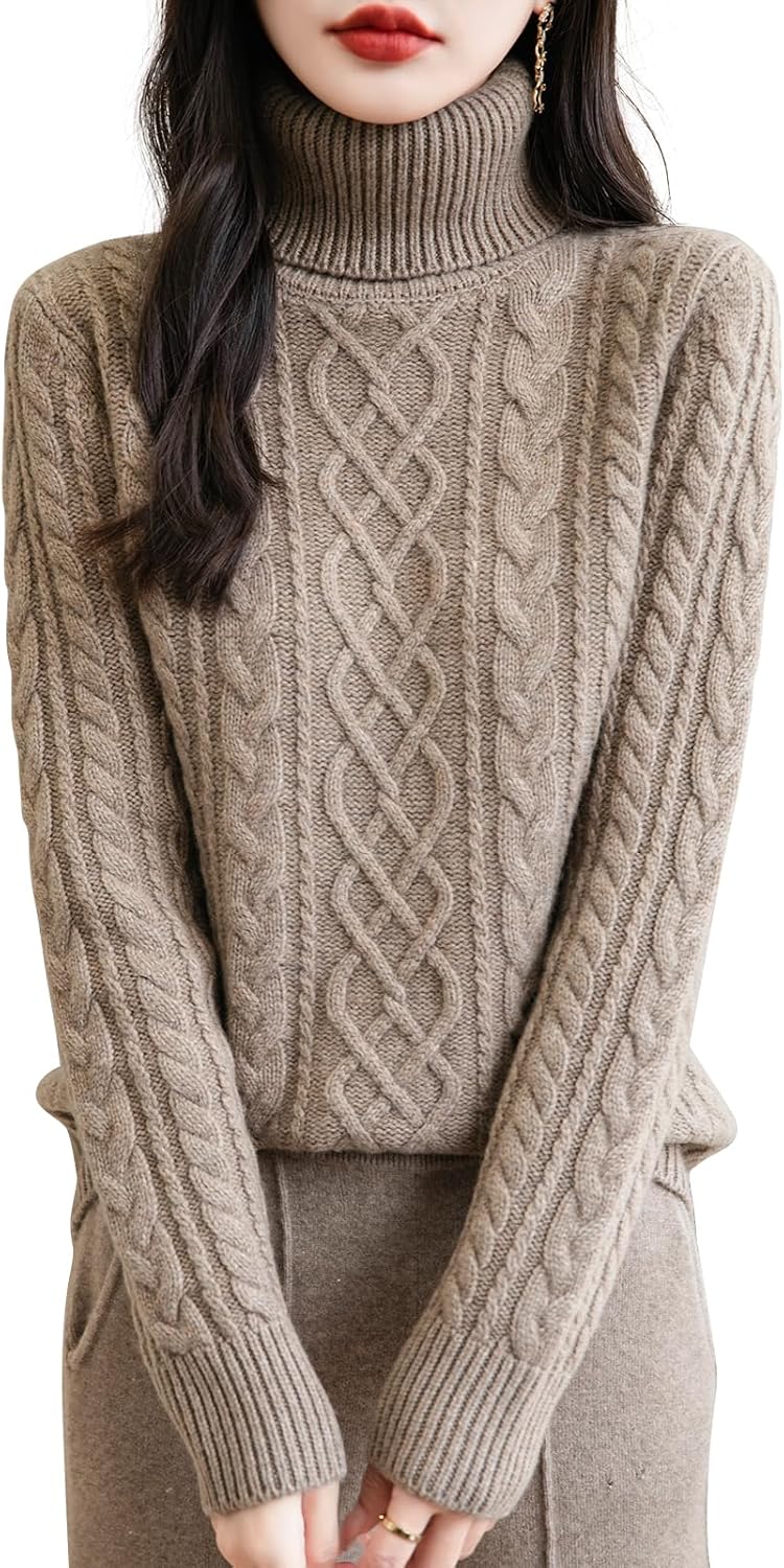 100% 메리노울 터틀넥 캐주얼 케이블 니트 스웨터