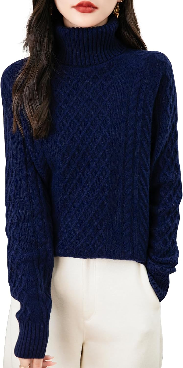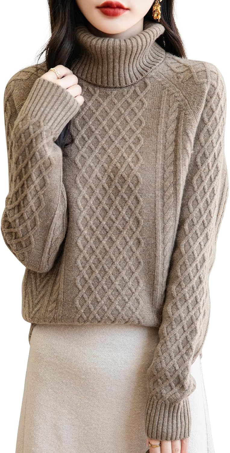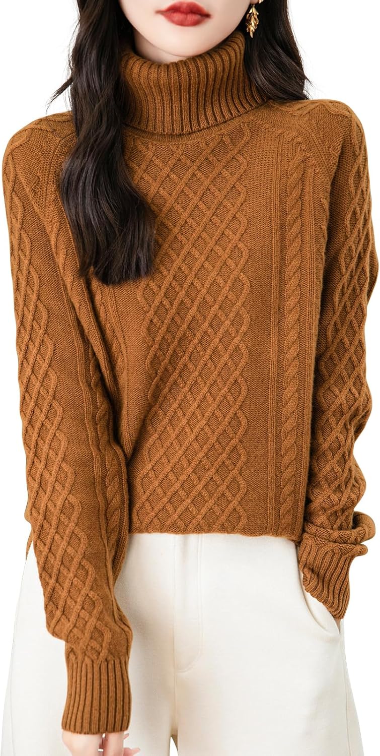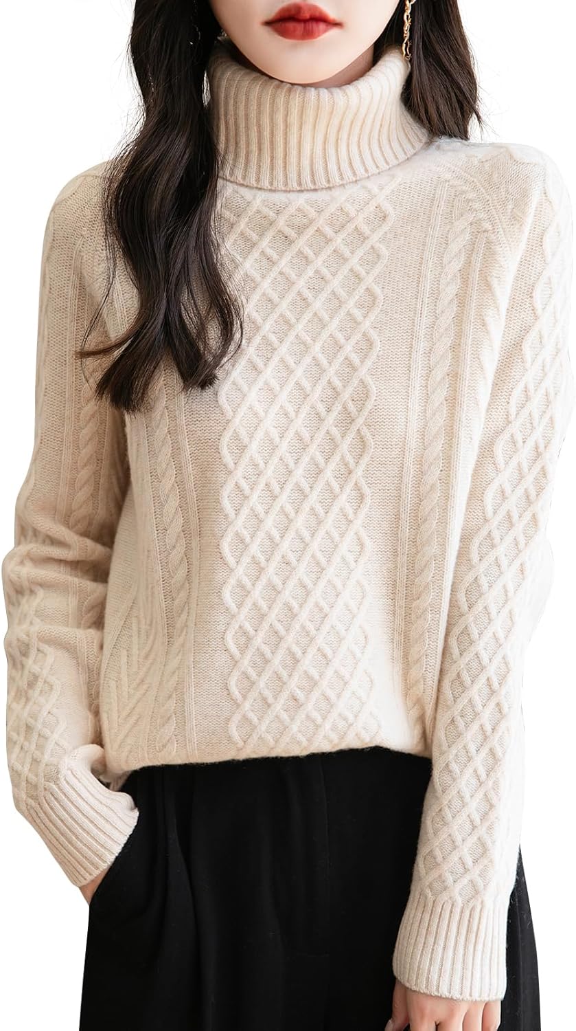 100% 메리노 울 빈티지 케이블 터틀넥 스웨터