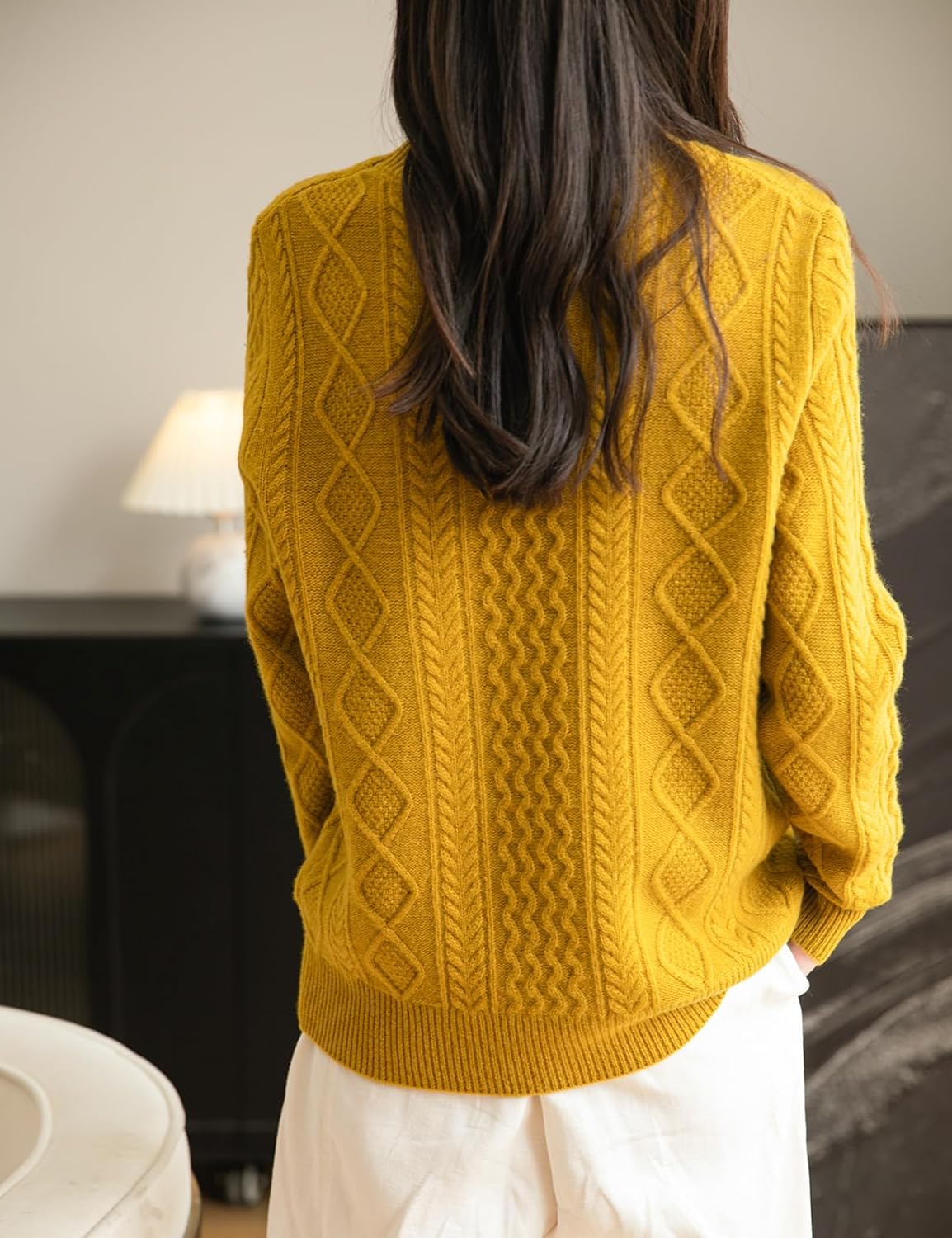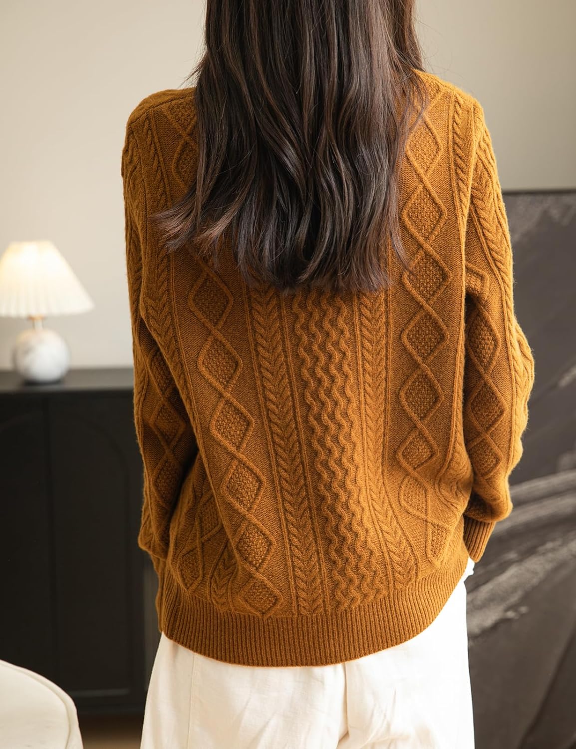 I love this sweater. I recently got the chance to try a Chanyarn merino wool t-shirt and really loved it, so when I got the chance to test a few sweaters from the women's range I grabbed them for my wife. I was over the moon when I discovered that the large size was just about big enough for me to wear myself, and as the traditional cable knit style is pretty much unisex I happily claimed it.This is a really great sweater. I wear a lot of cashmere and know good fabrics, and this merino wool is very, very good. It feels almost as soft as cashmere but it's knit a little thicker than a typical cashmere sweater, so it's wonderfully warm on cold days. I've tested it all the way down to -20C so far this winter, and it's warm and comfortable enough to withstand a bracing walk at that icy temperature.I already have too many sweaters to wear regularly, but I know this will be a weekly wear through the winter.
