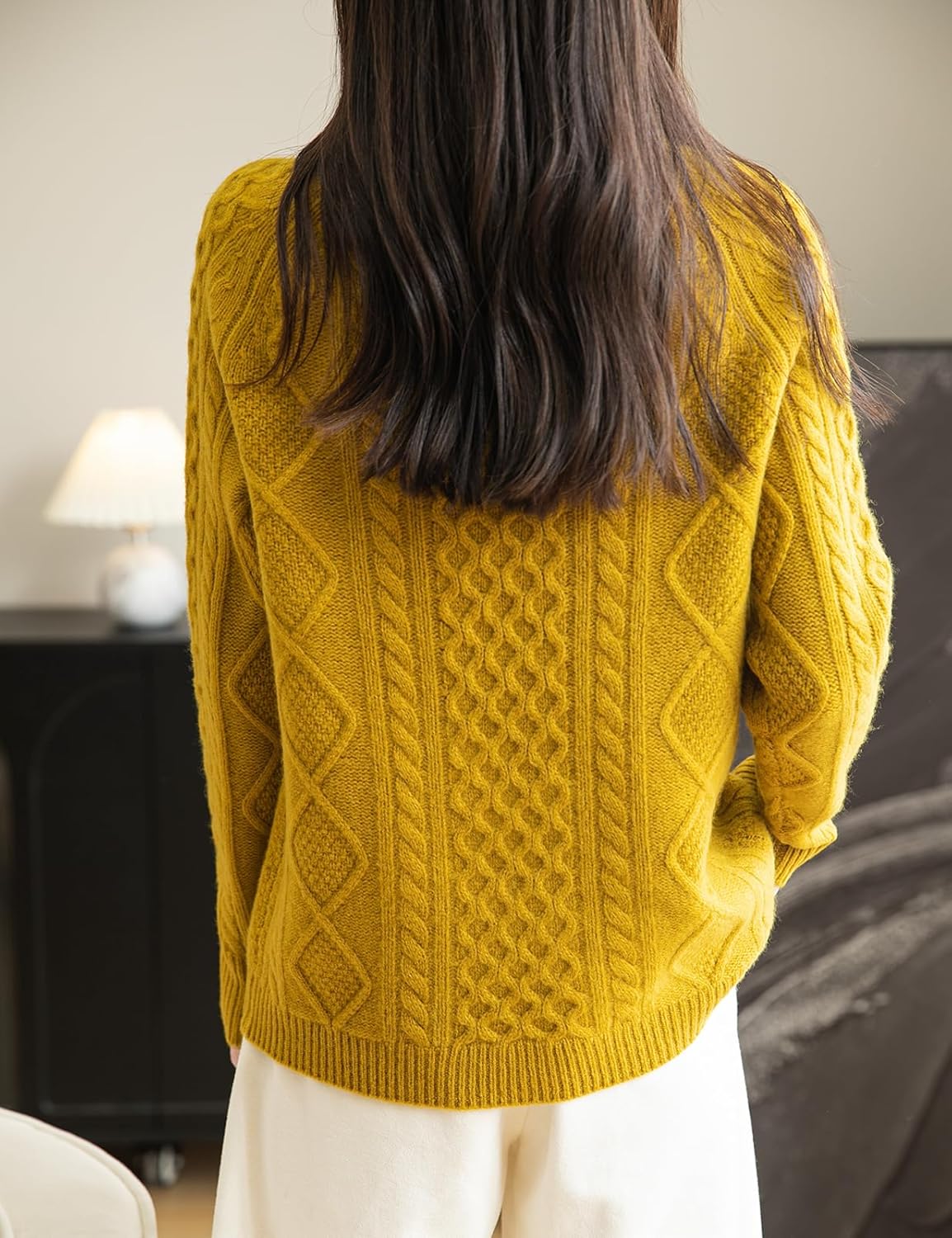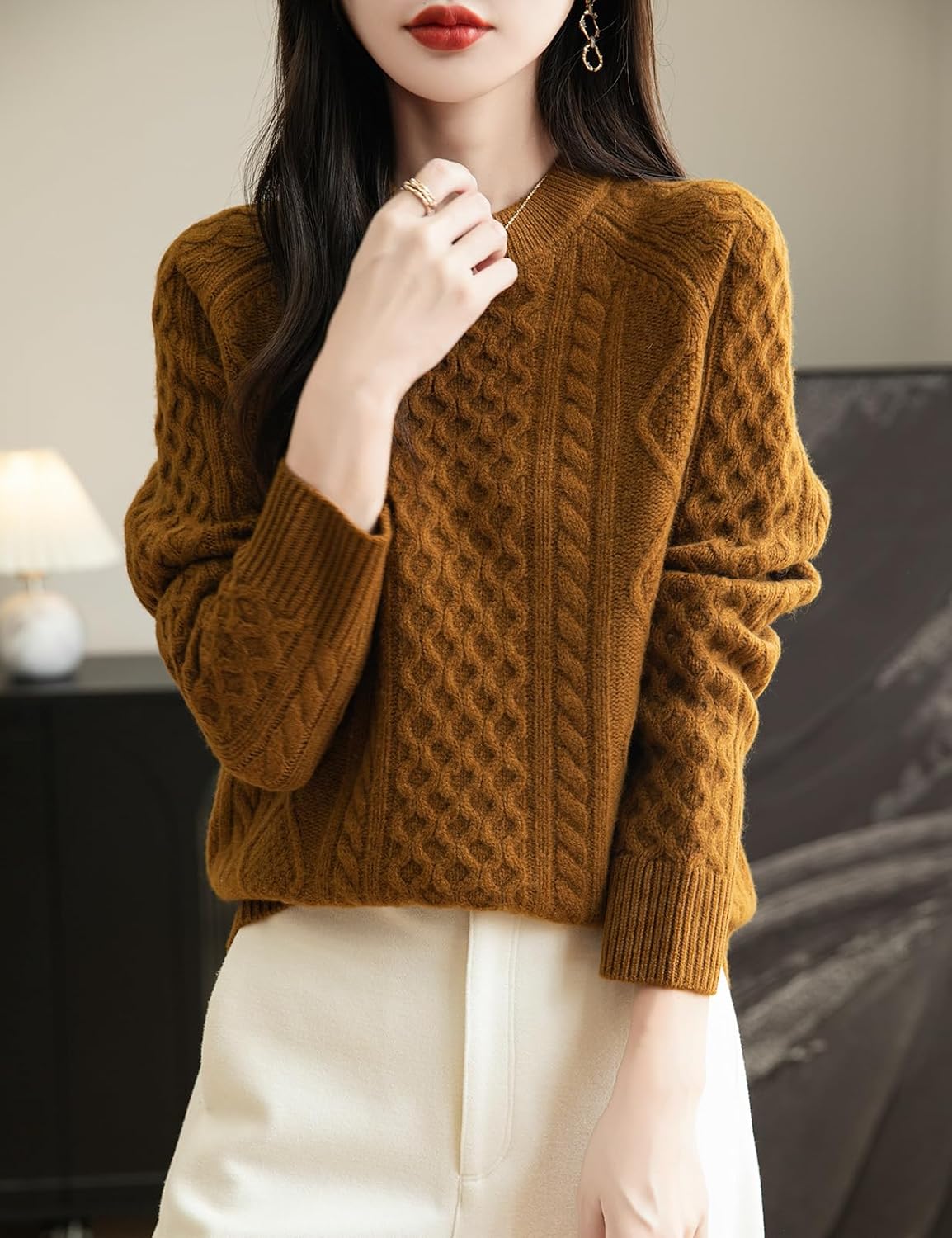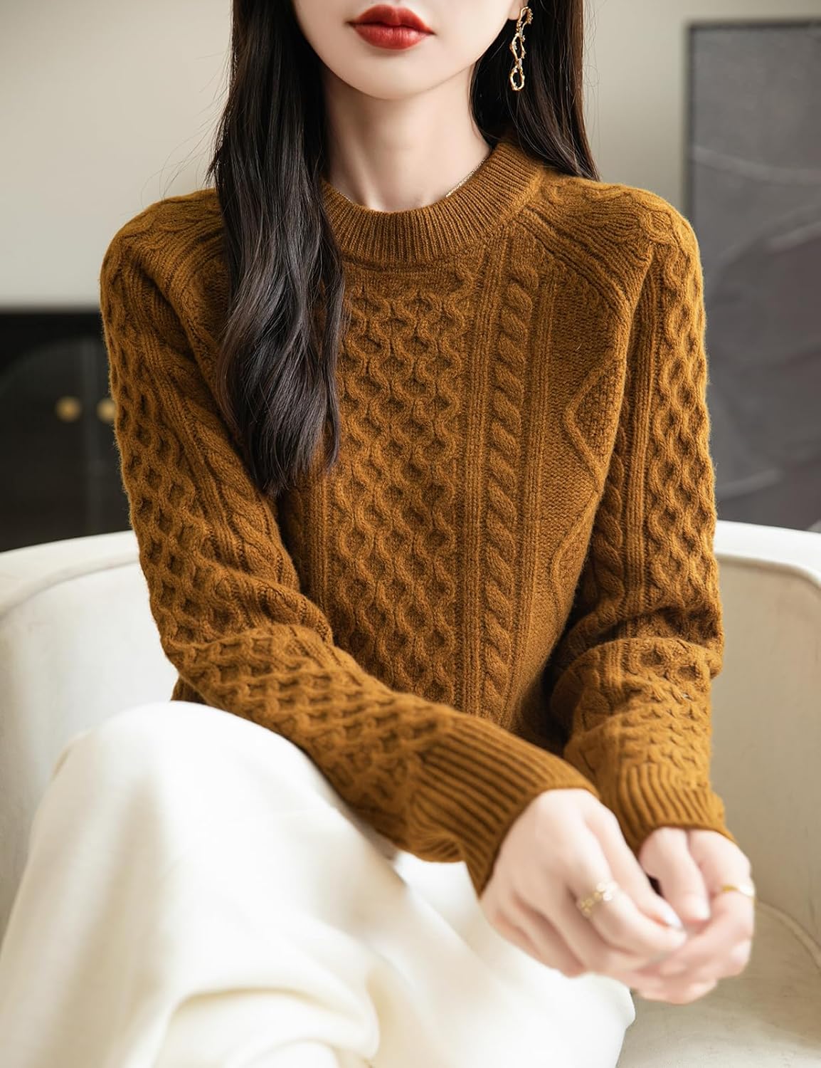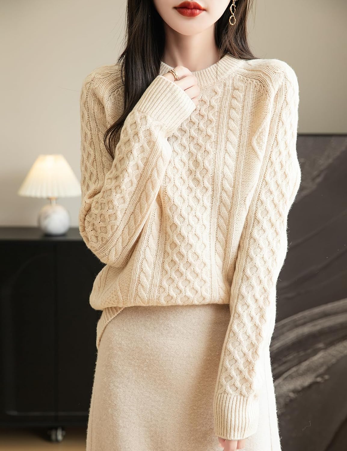 - 특징: 5게이지 고급 원단, 도톰함. 일반 핏, 단색, 크루넥, 긴소매, 클래식한 케이블 스티치 디자인, 골지 커프스. 높은 신축성, 캐주얼한 스타일. 가볍고 따뜻하며 부드러워 착용감이 매우 편안합니다. 이 메리노 울 스웨터는 독특한 질감의 패턴이 겨울 옷장에 시각적인 재미와 매력을 더합니다.