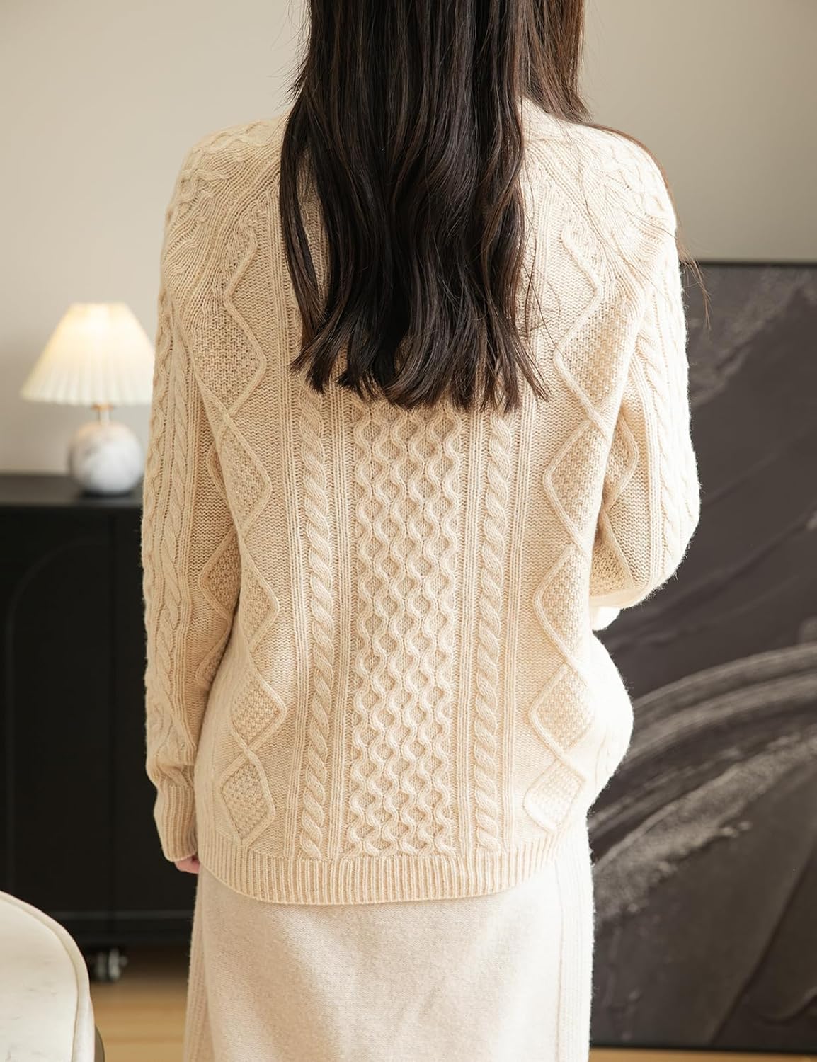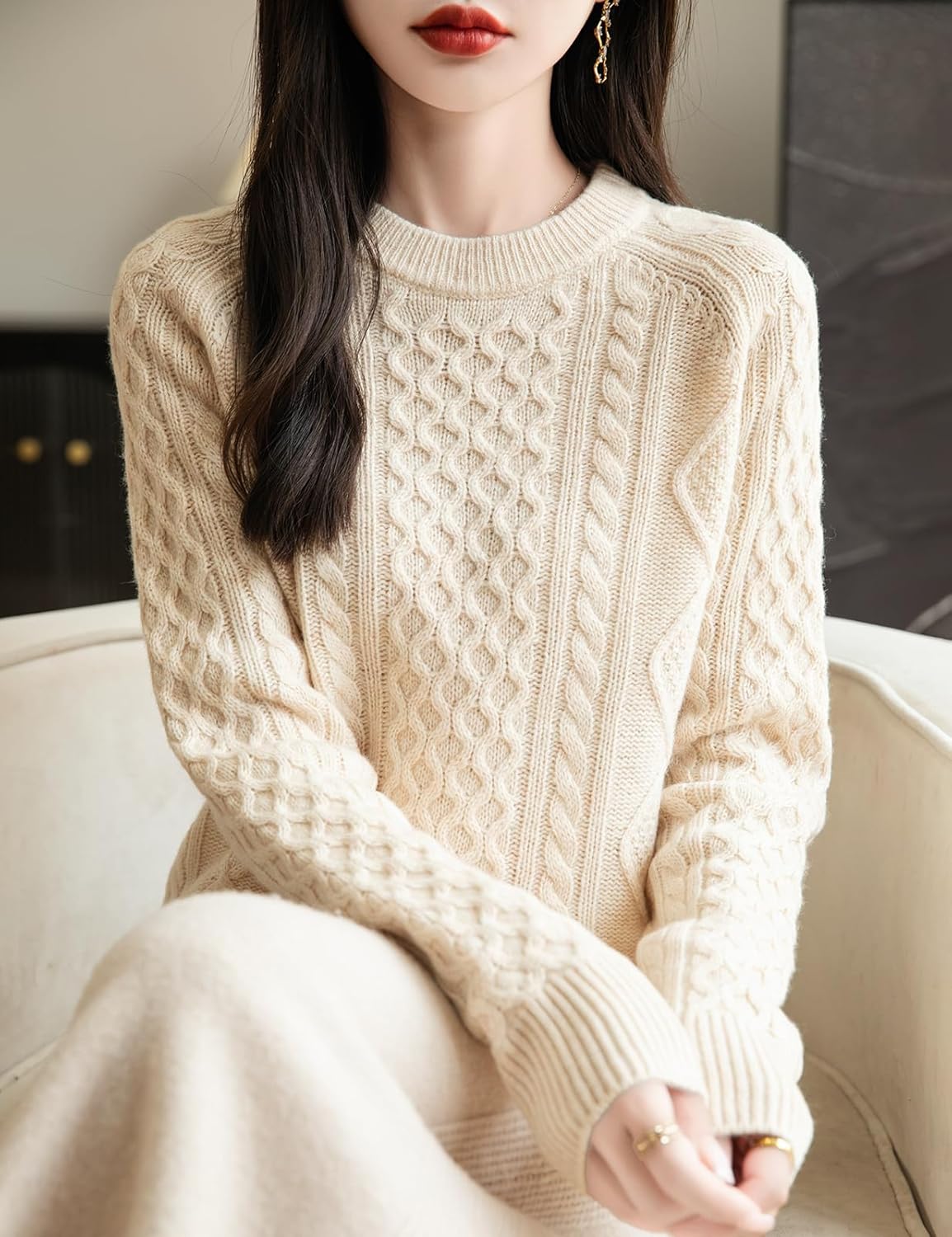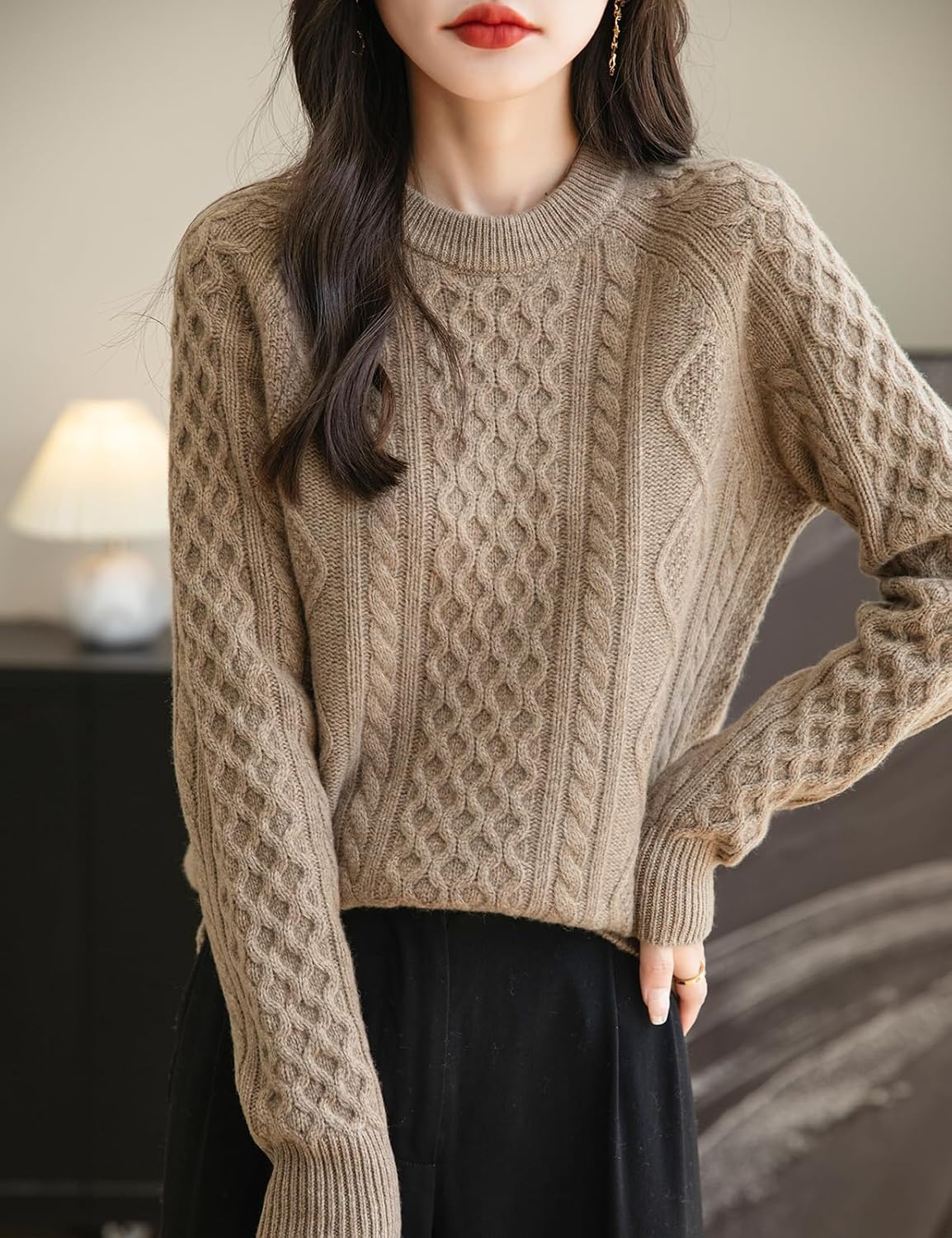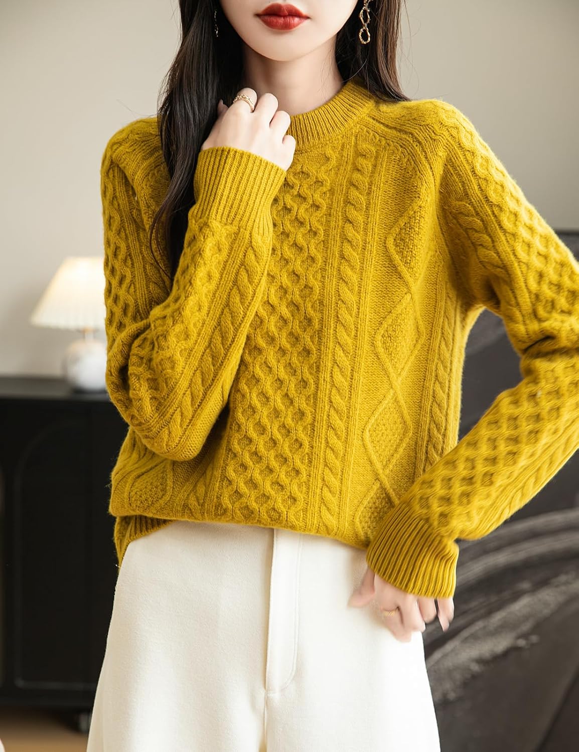 - 특징: 5게이지 고급 원단, 도톰함. 일반 핏, 단색, 크루넥, 긴소매, 클래식한 케이블 스티치 디자인, 골지 커프스. 높은 신축성, 캐주얼한 스타일. 가볍고 따뜻하며 부드러워 착용감이 매우 편안합니다. 이 메리노 울 스웨터는 독특한 질감의 패턴이 겨울 옷장에 시각적인 재미와 매력을 더합니다.