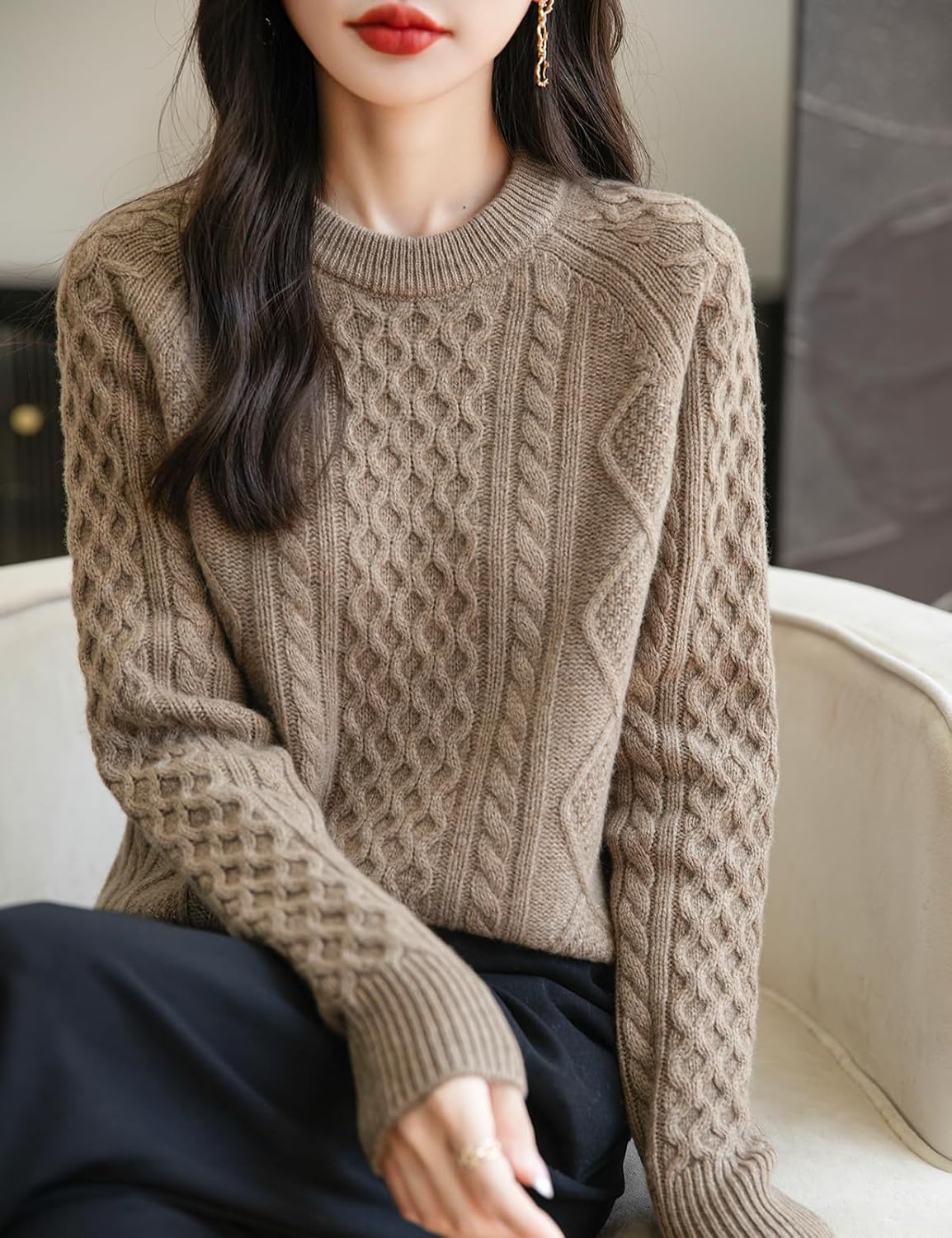 100% 메리노 울 빈티지 크루넥 케이블 니트 스웨터