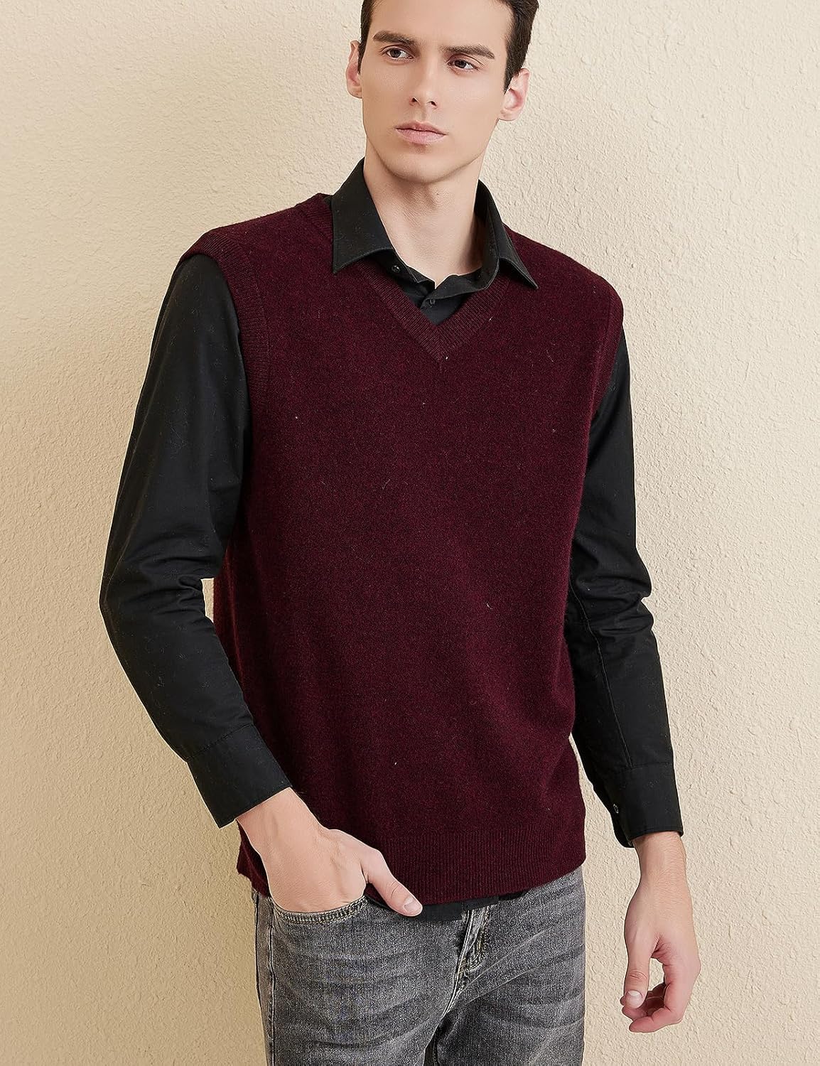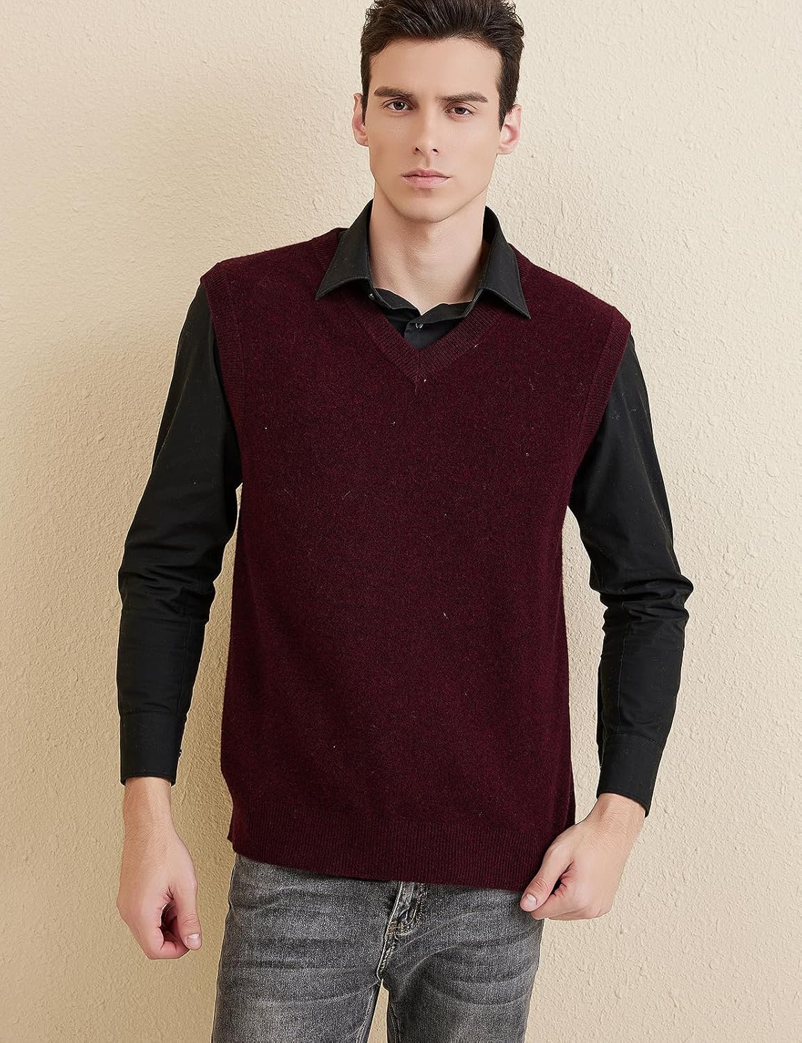 오스트레일리안 메리노 울 V-넥 스웨터 조끼