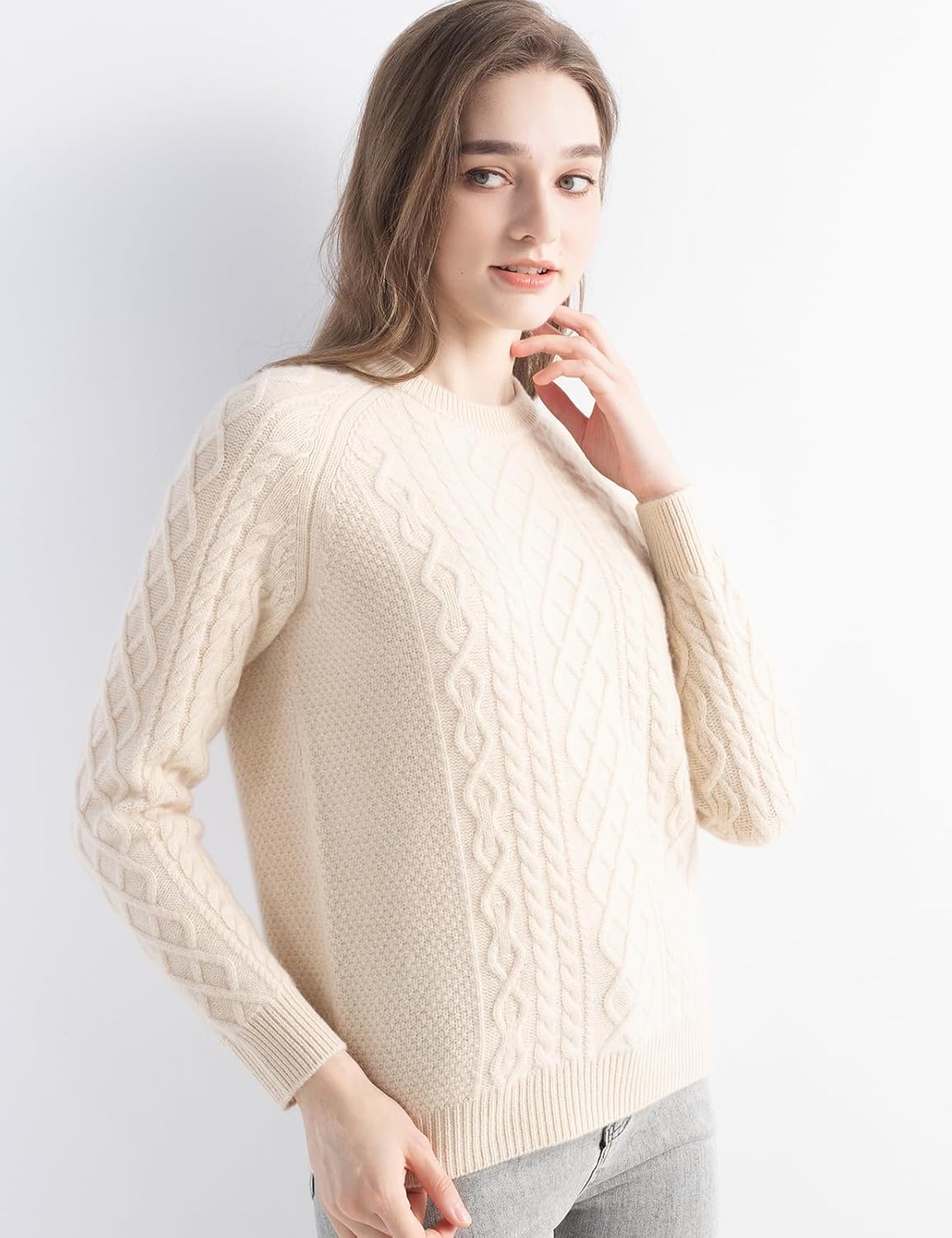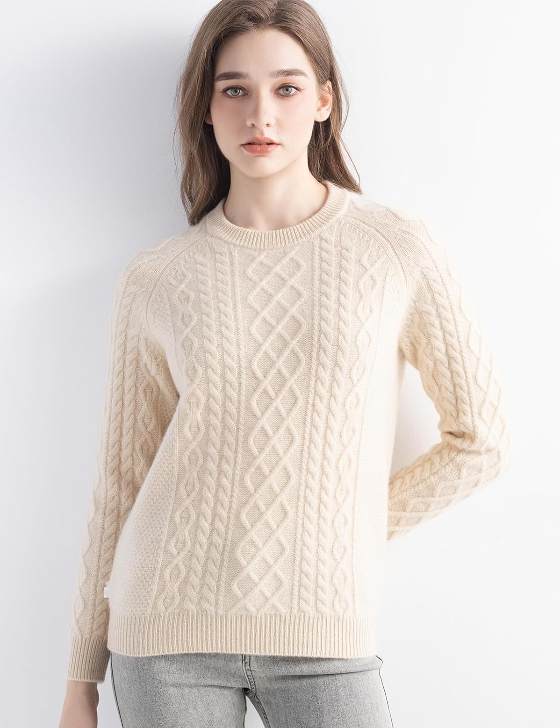 몽골리안 캐시미어 케이블 크루넥 스웨터
