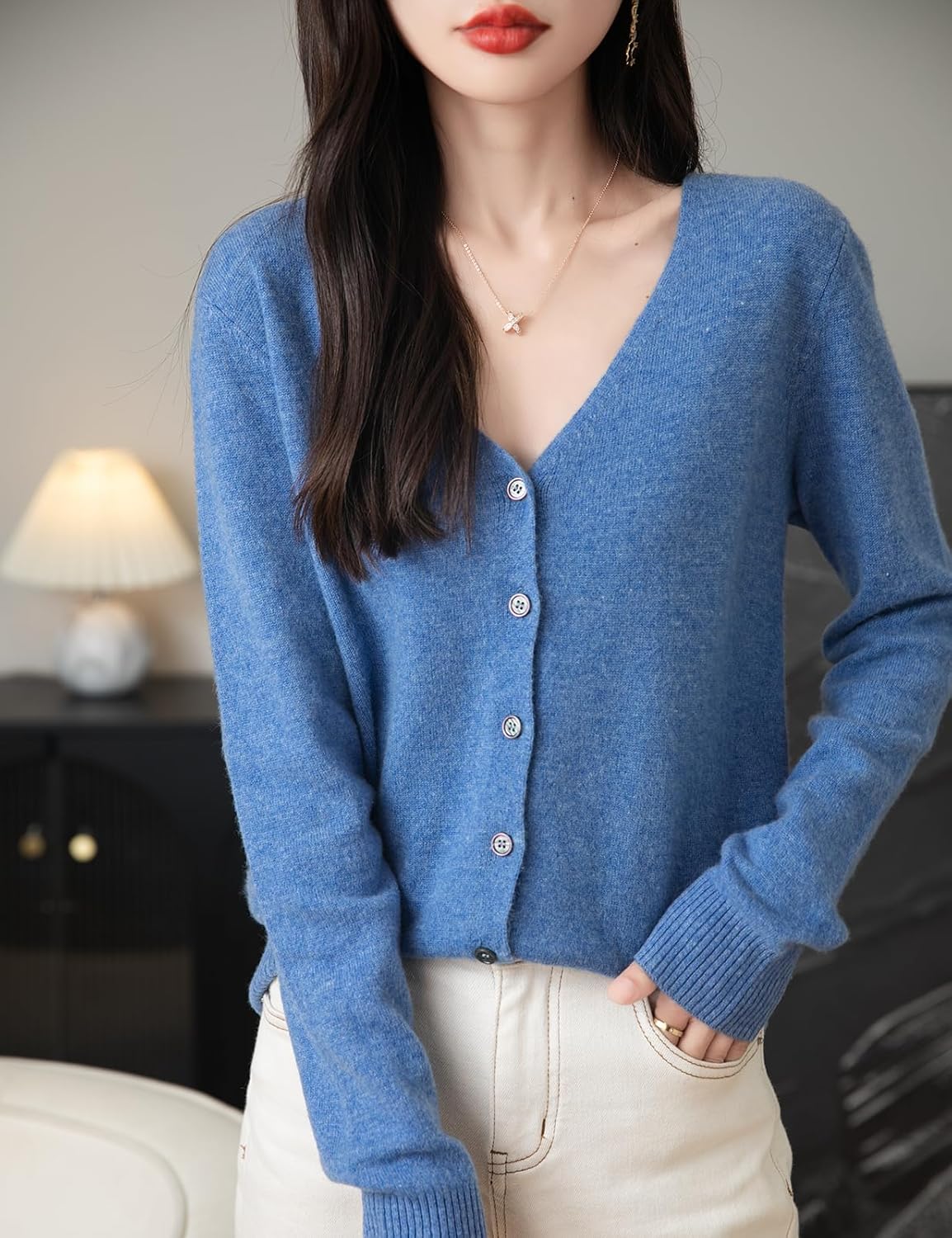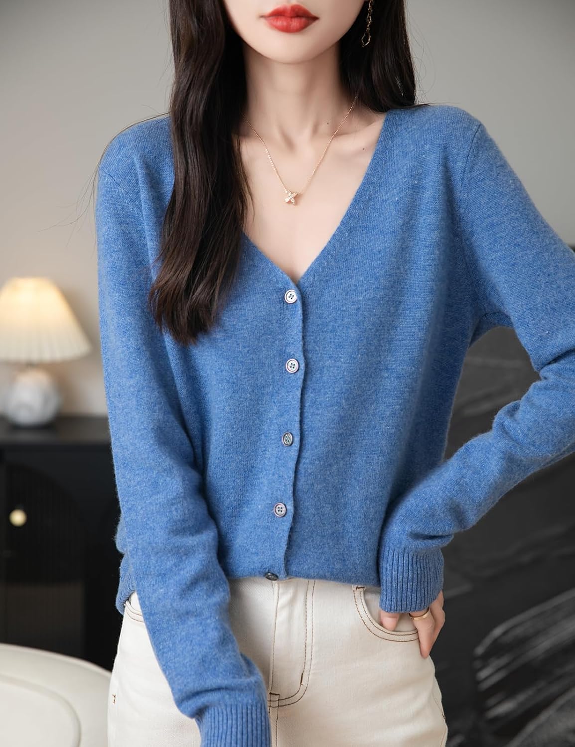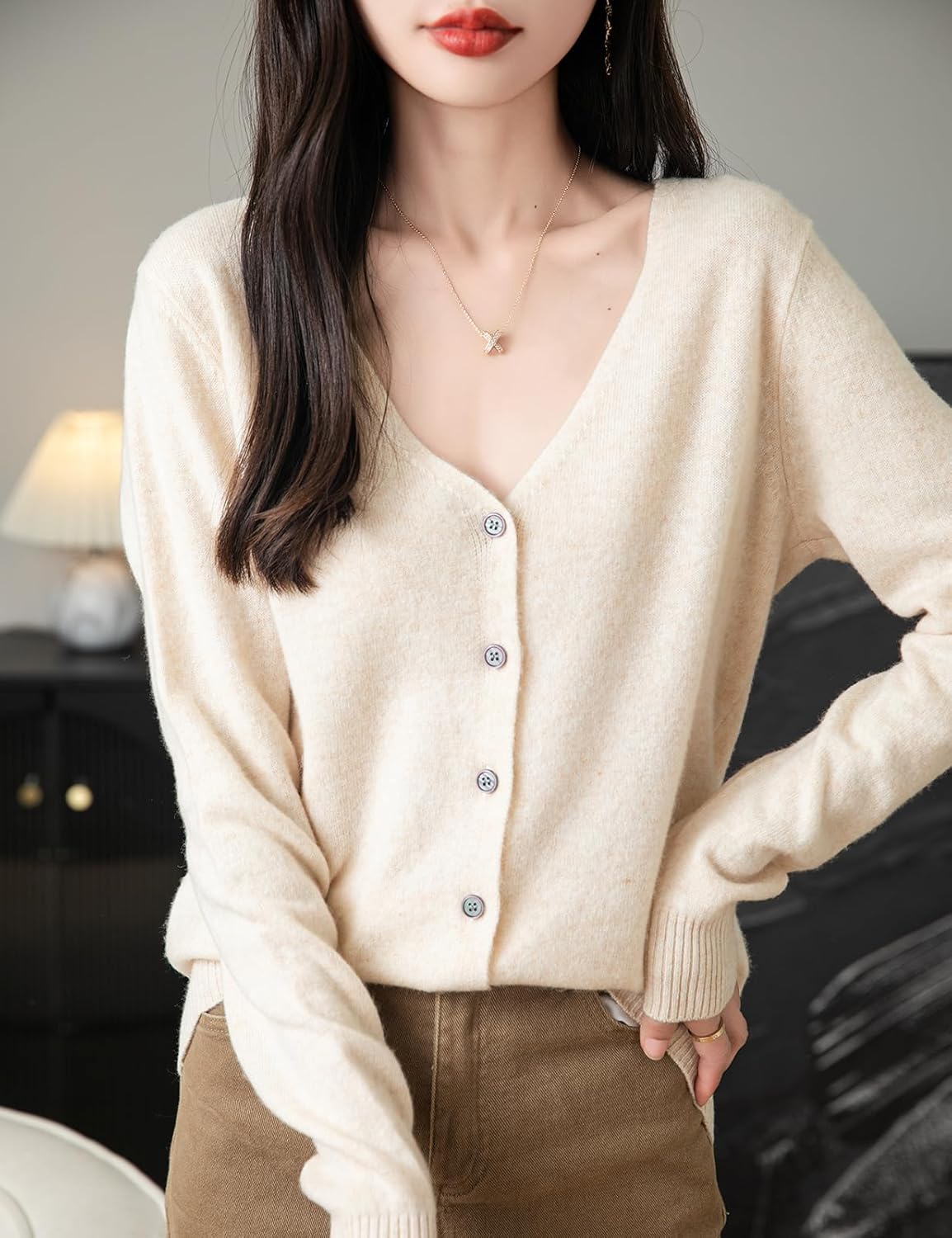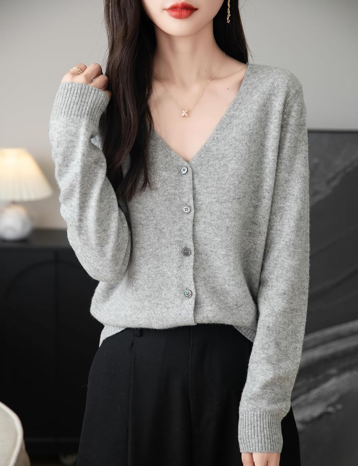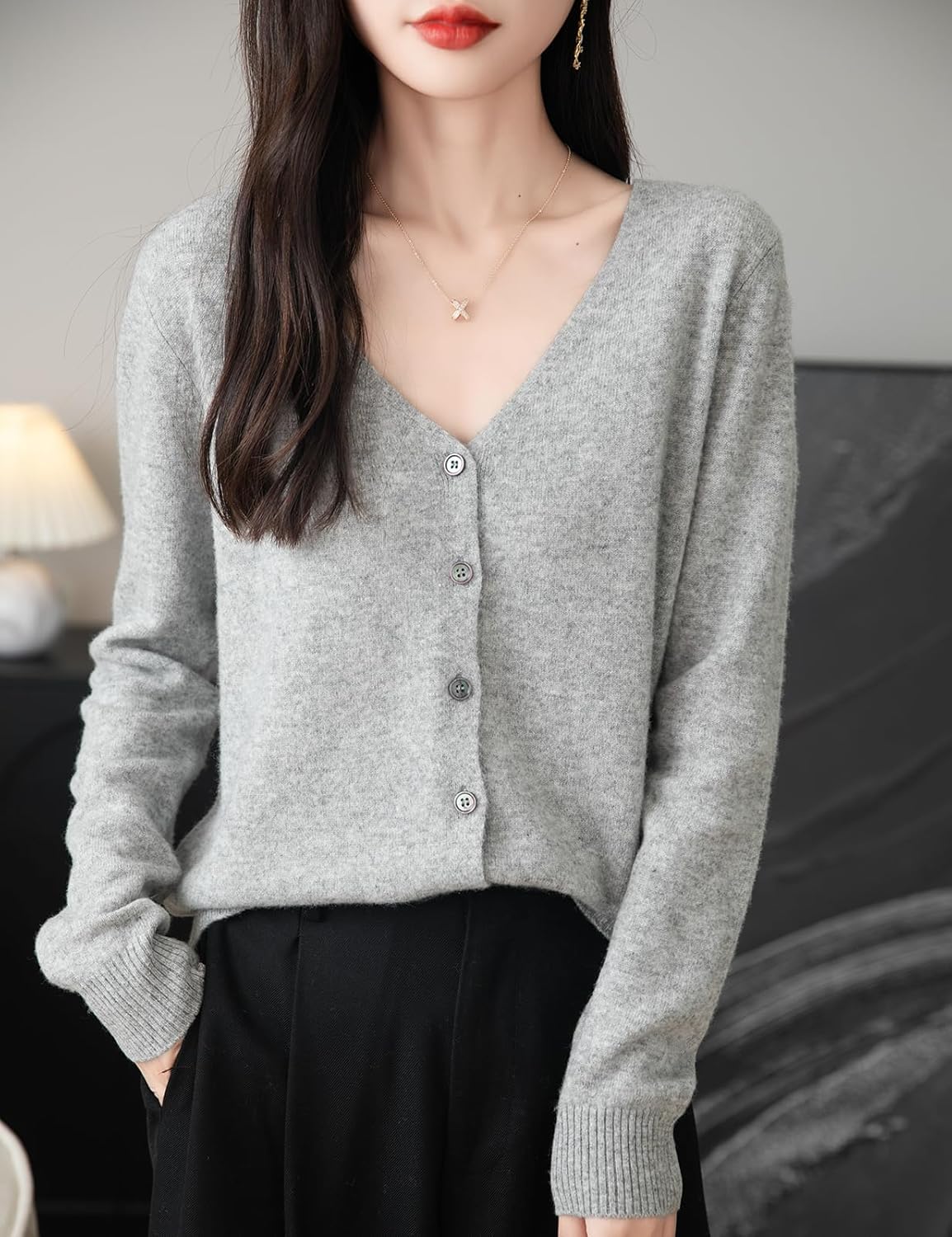 100% 메리노울 섹시 브이넥 라이트웨이트 가디건