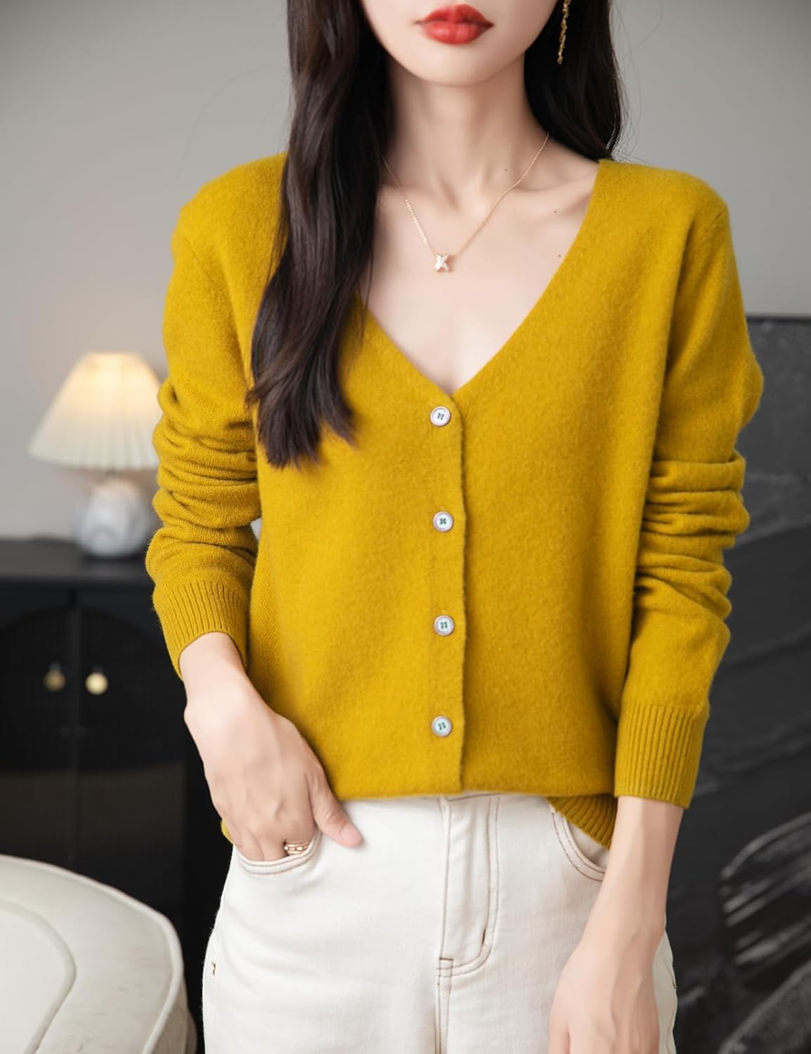 - 특징: 12게이지 고급 원단, 가벼움. 일반 핏, 솔리드 컬러, V넥, 긴소매, 골지 커프스. 높은 신축성, 캐주얼 스타일. 가볍고 따뜻하며 부드러워 착용감이 매우 편안합니다. 이 메리노 울 가디건 스웨터는 레깅스, 청바지, 니하이 부츠 또는 스니커즈와 함께 코디하여 캐주얼하면서도 패셔너블한 룩을 연출할 수 있습니다.