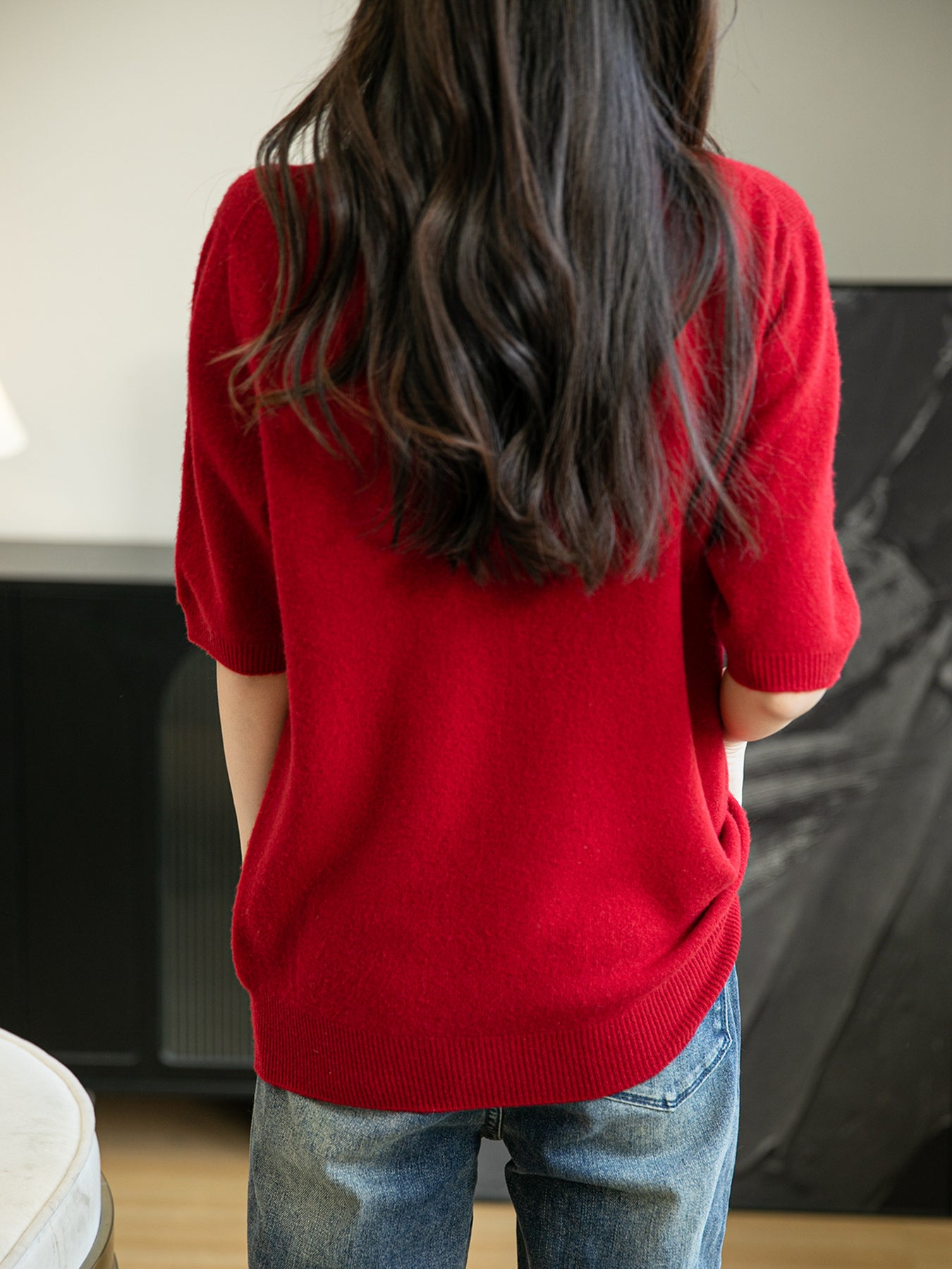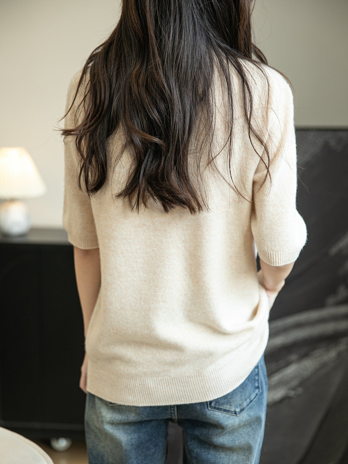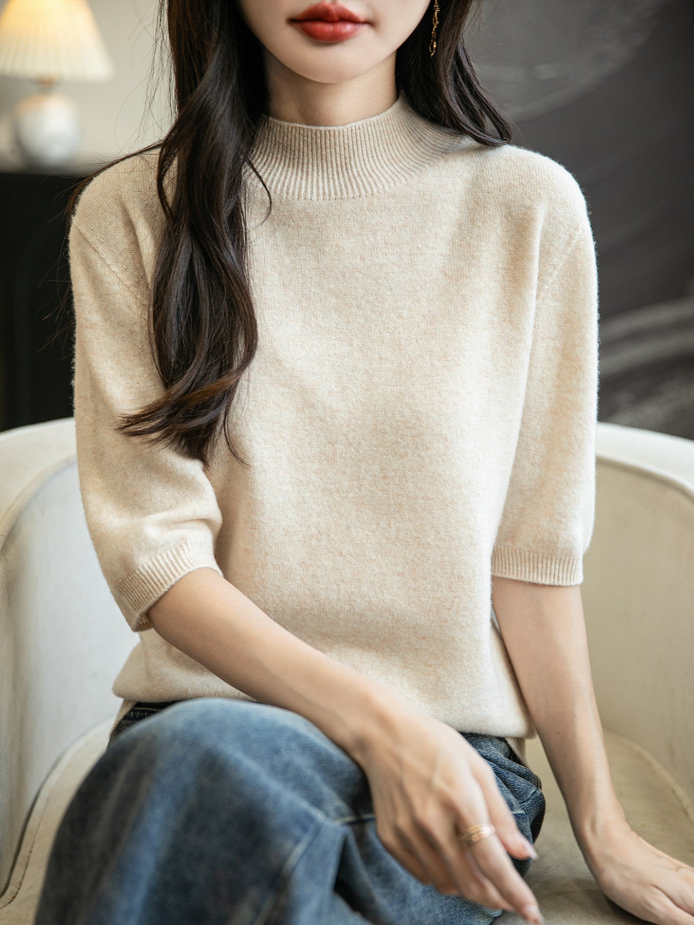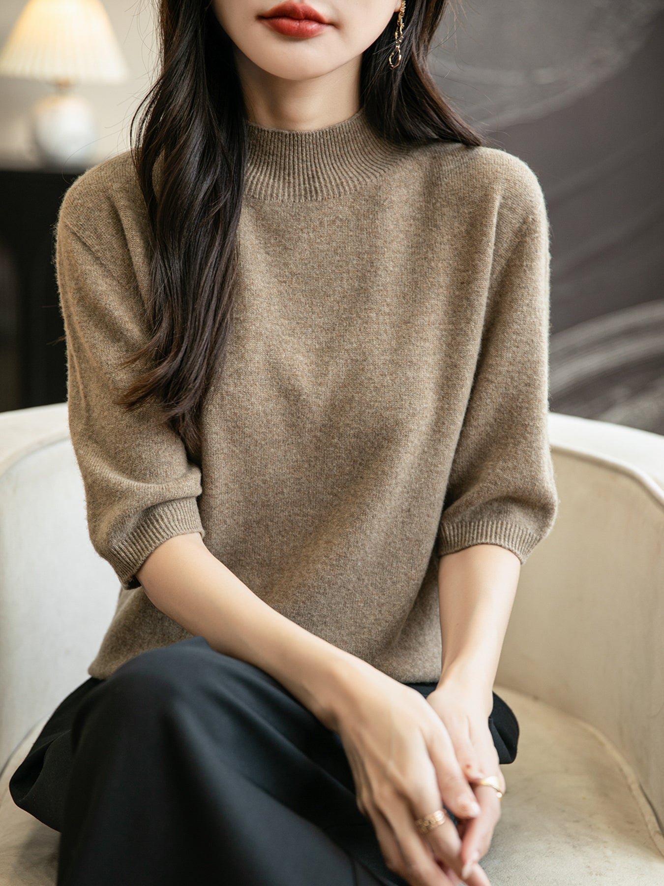 우리의 약속: 누구나 아름다운 것을 누릴 기회를 가져야 합니다. Chanyarn에서는 캐시미어와 메리노 제품을 구매하기 위해 거액을 지출할 필요가 없습니다. 품질은 사치가 아닙니다. 저희는 제조업체이지 유통업체가 아닙니다. (모델은 키 160cm에 아담한 체형입니다. 실제 소매 길이는 키에 따라 사진보다 짧을 수 있습니다.)