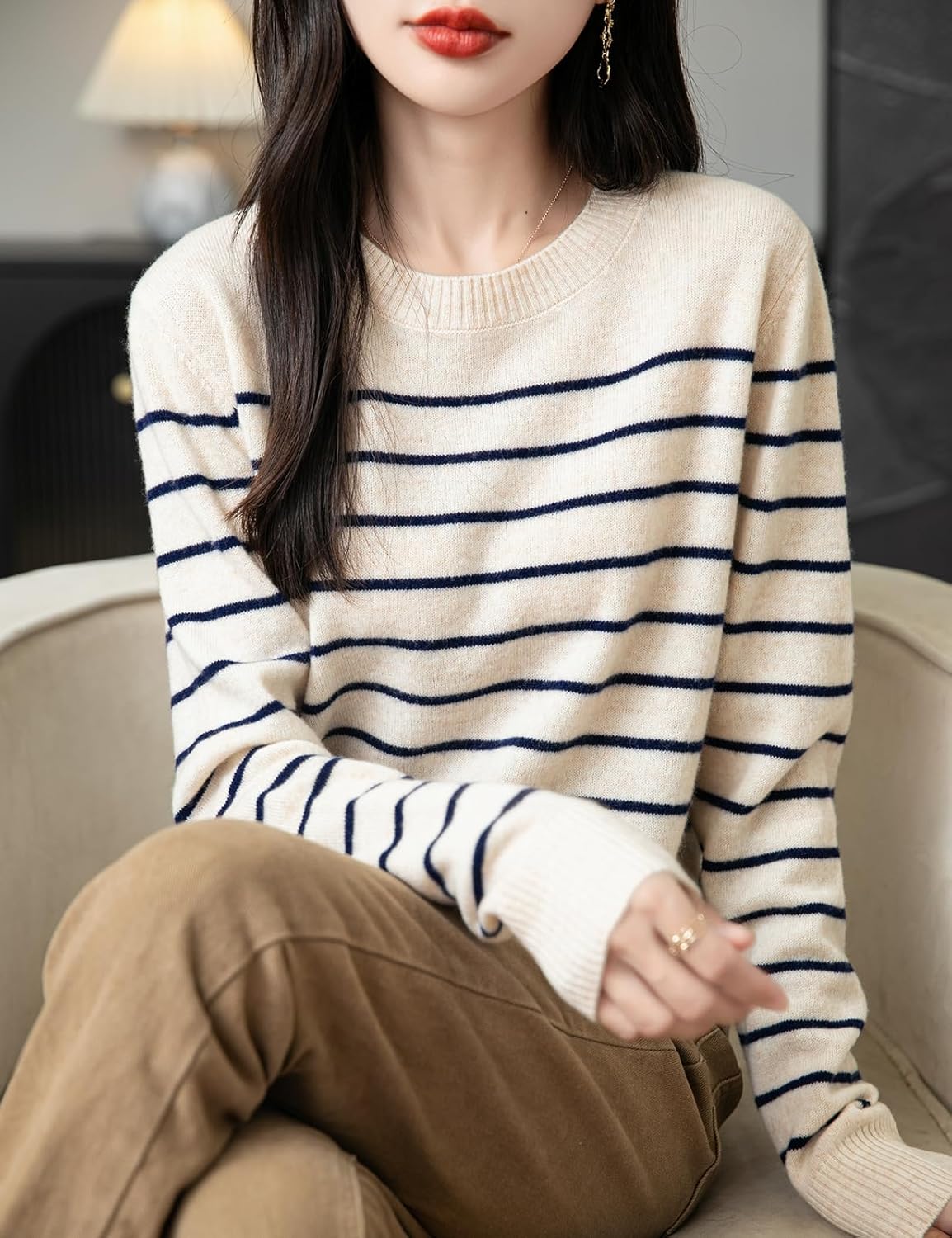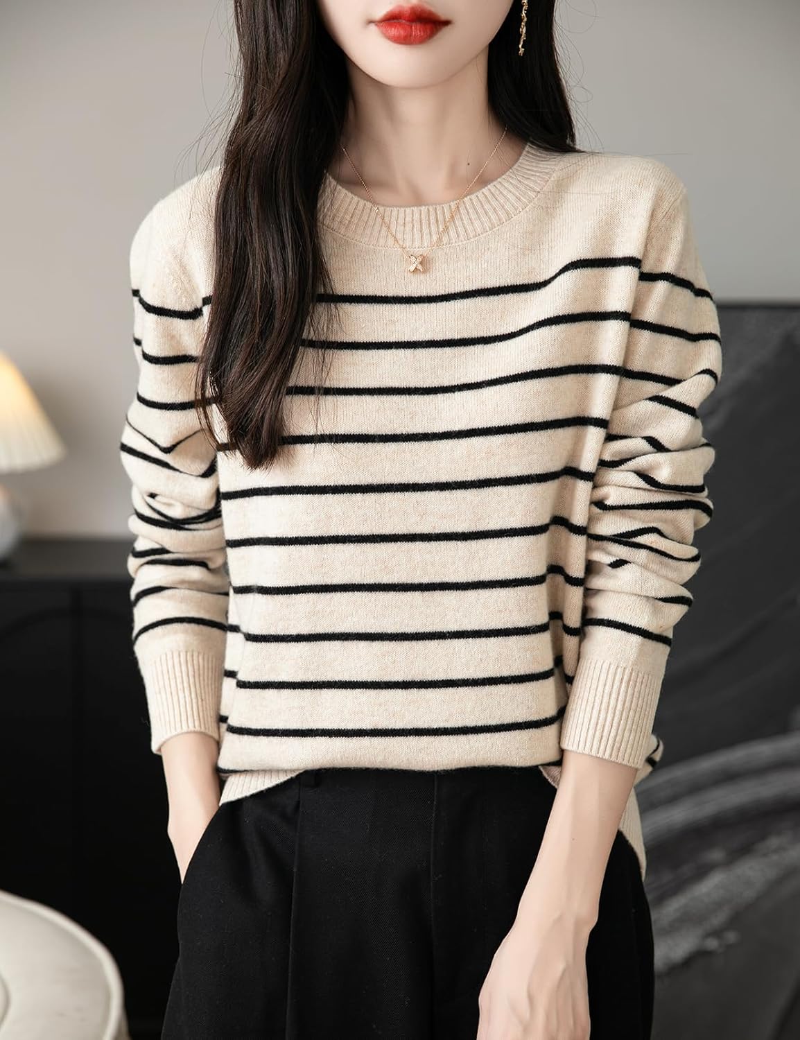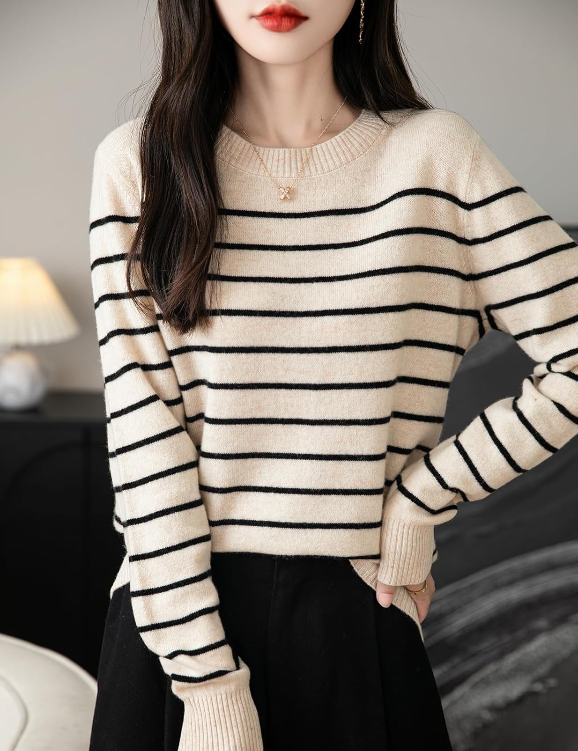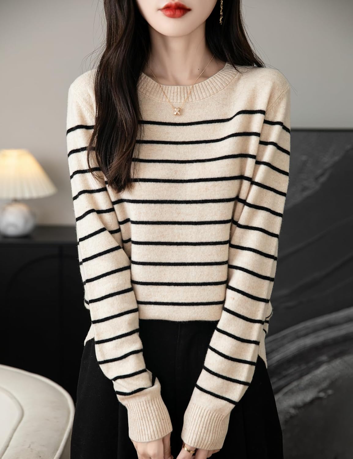 100% 메리노 울 스트라이프 크루넥 스웨터