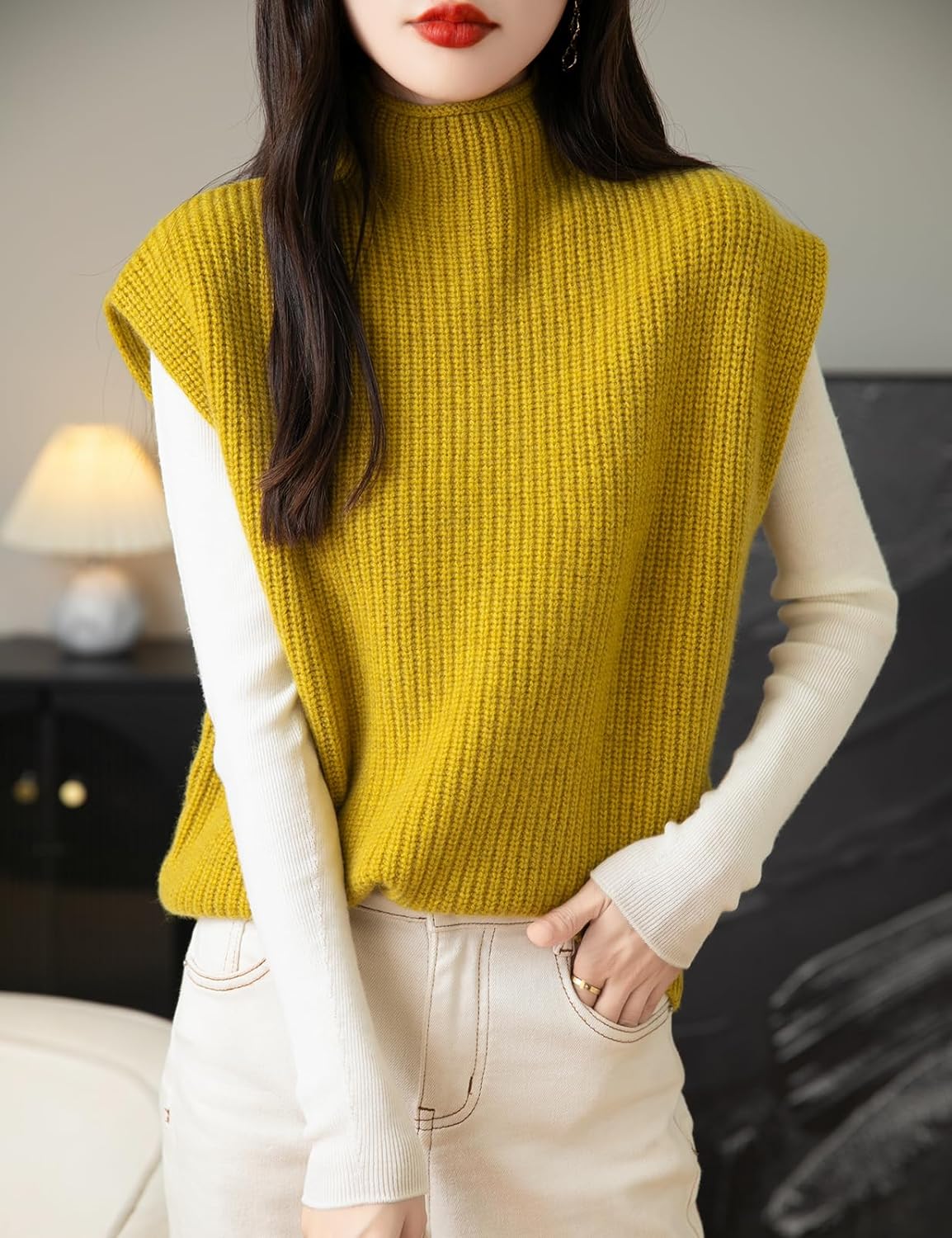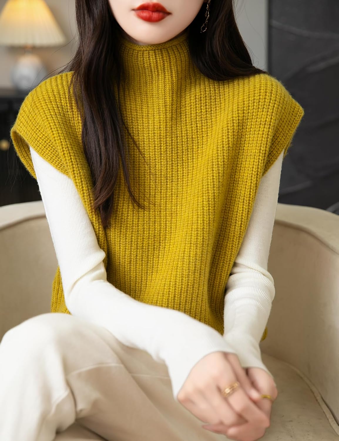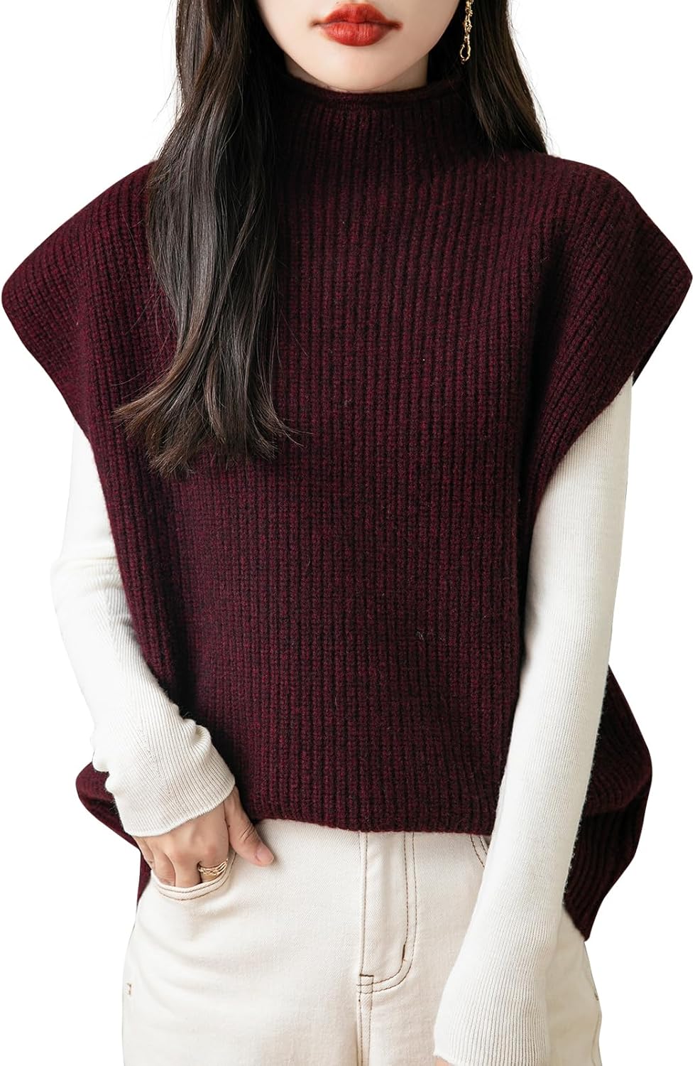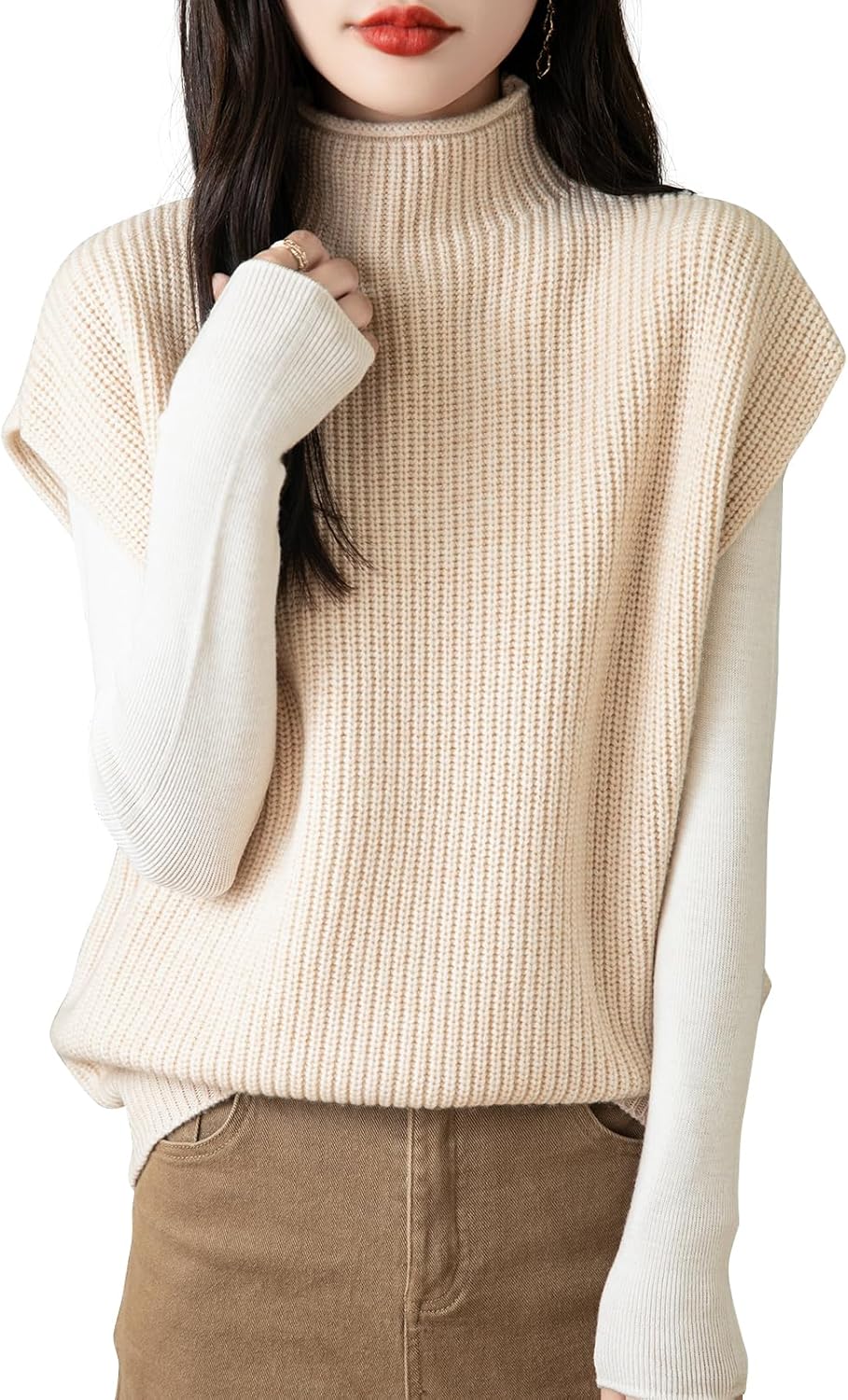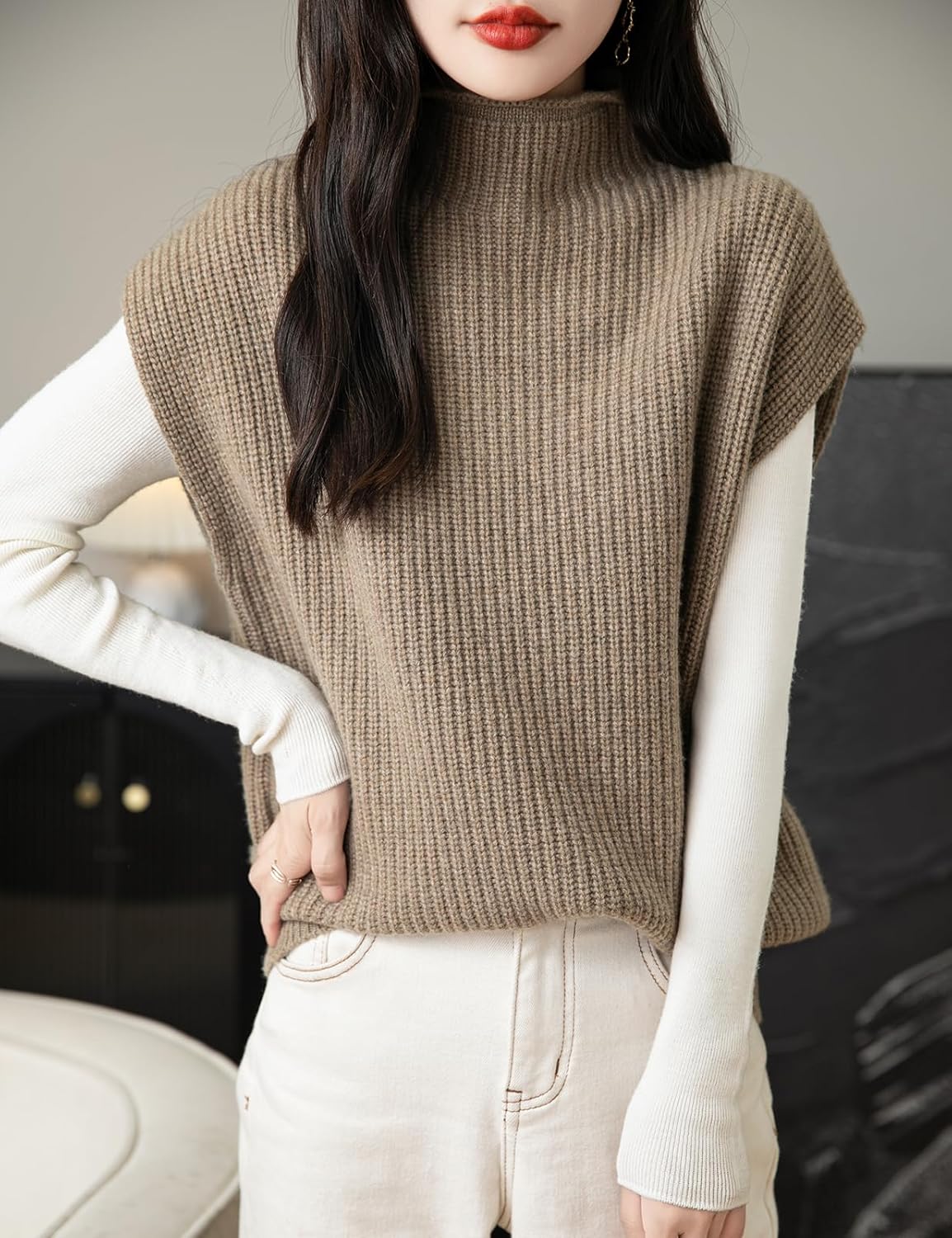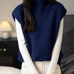 100% 메리노 울 캐주얼 터틀넥 니트 스웨터 조끼
