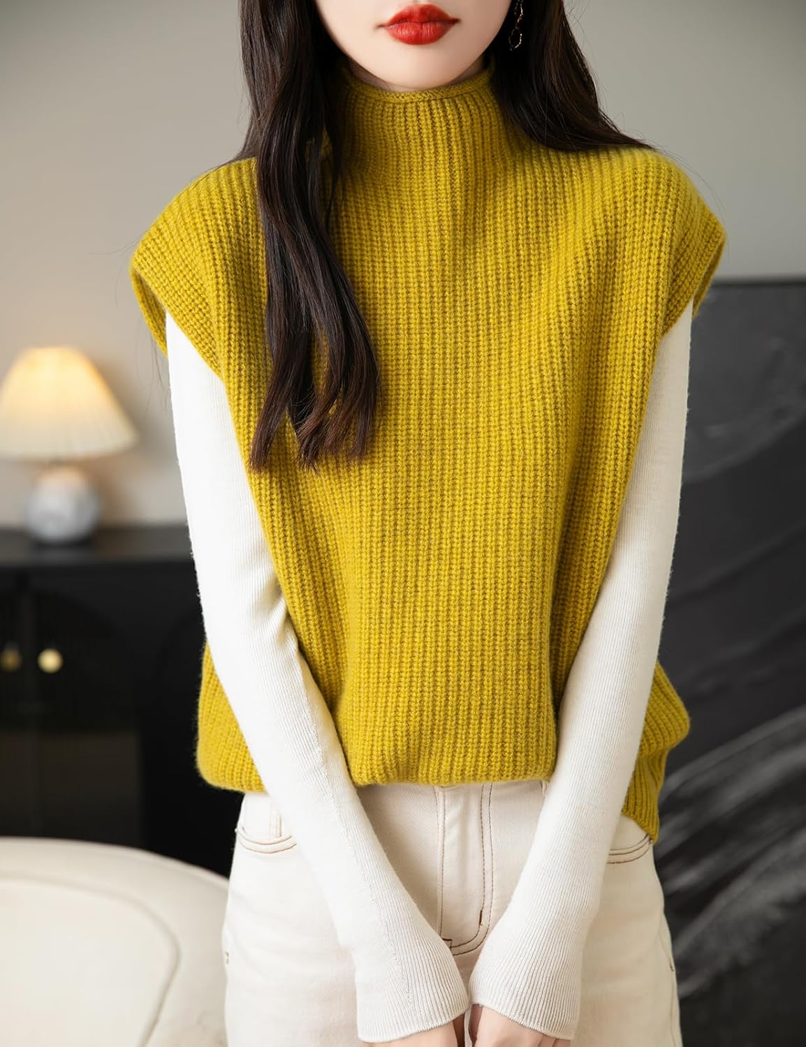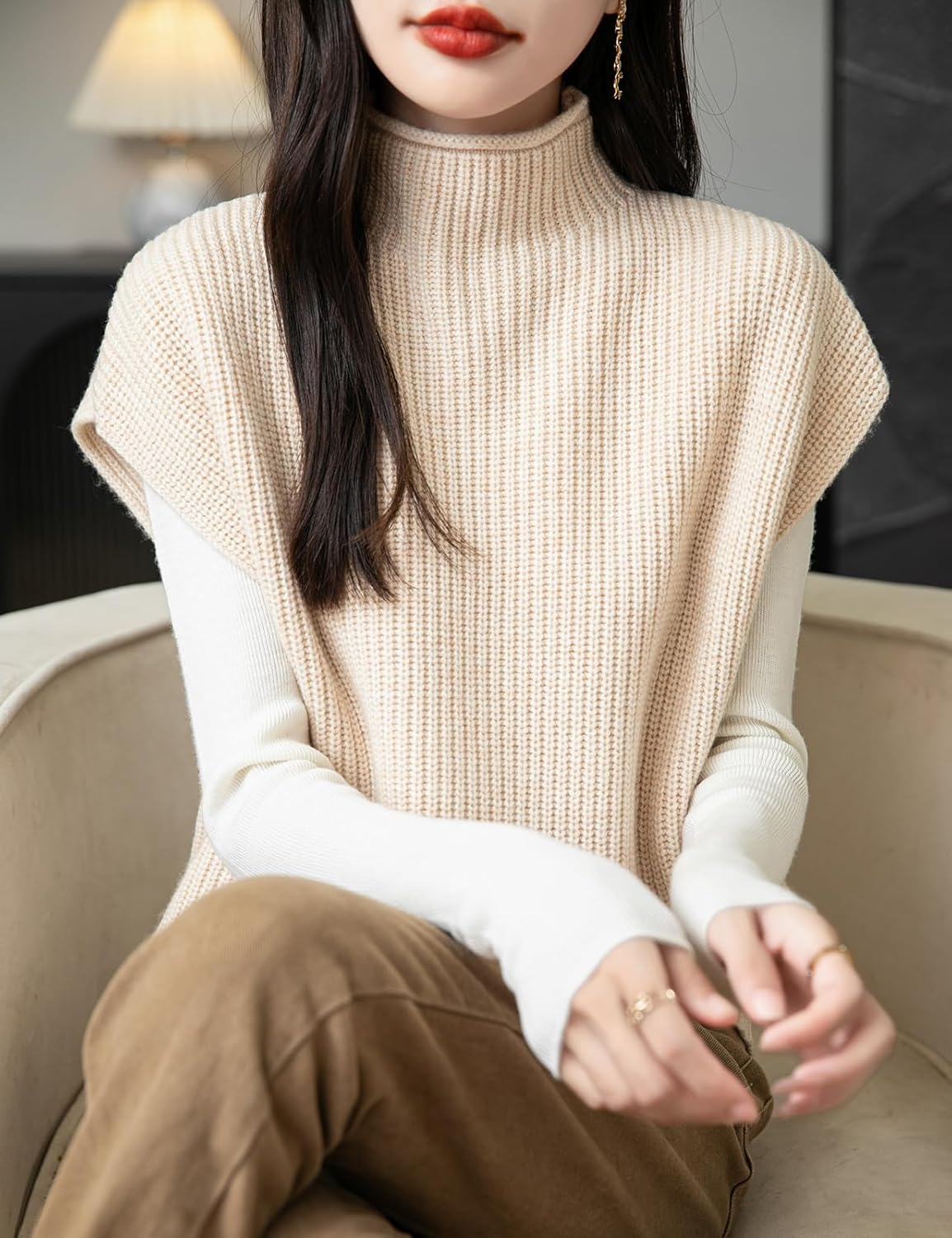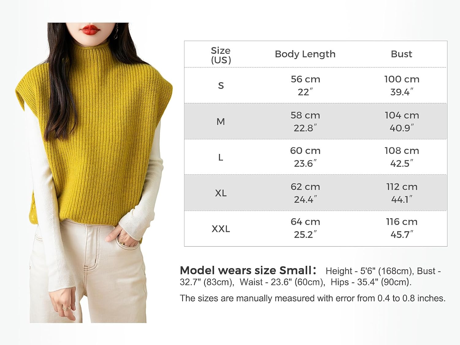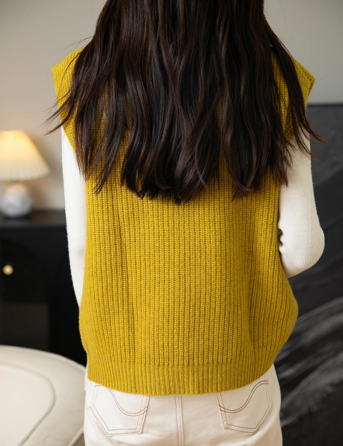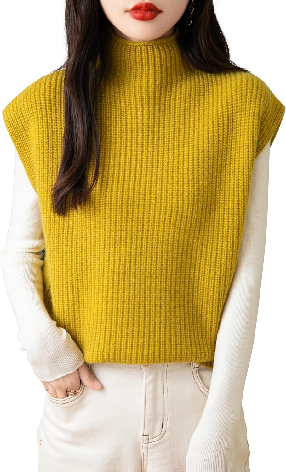 100% 메리노 울 캐주얼 터틀넥 니트 스웨터 조끼