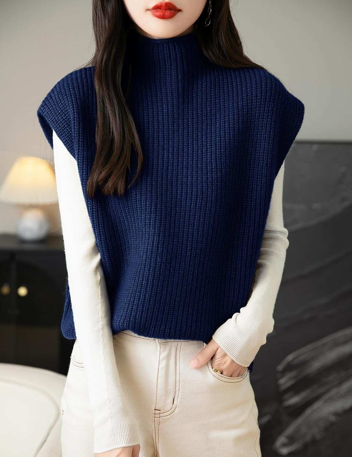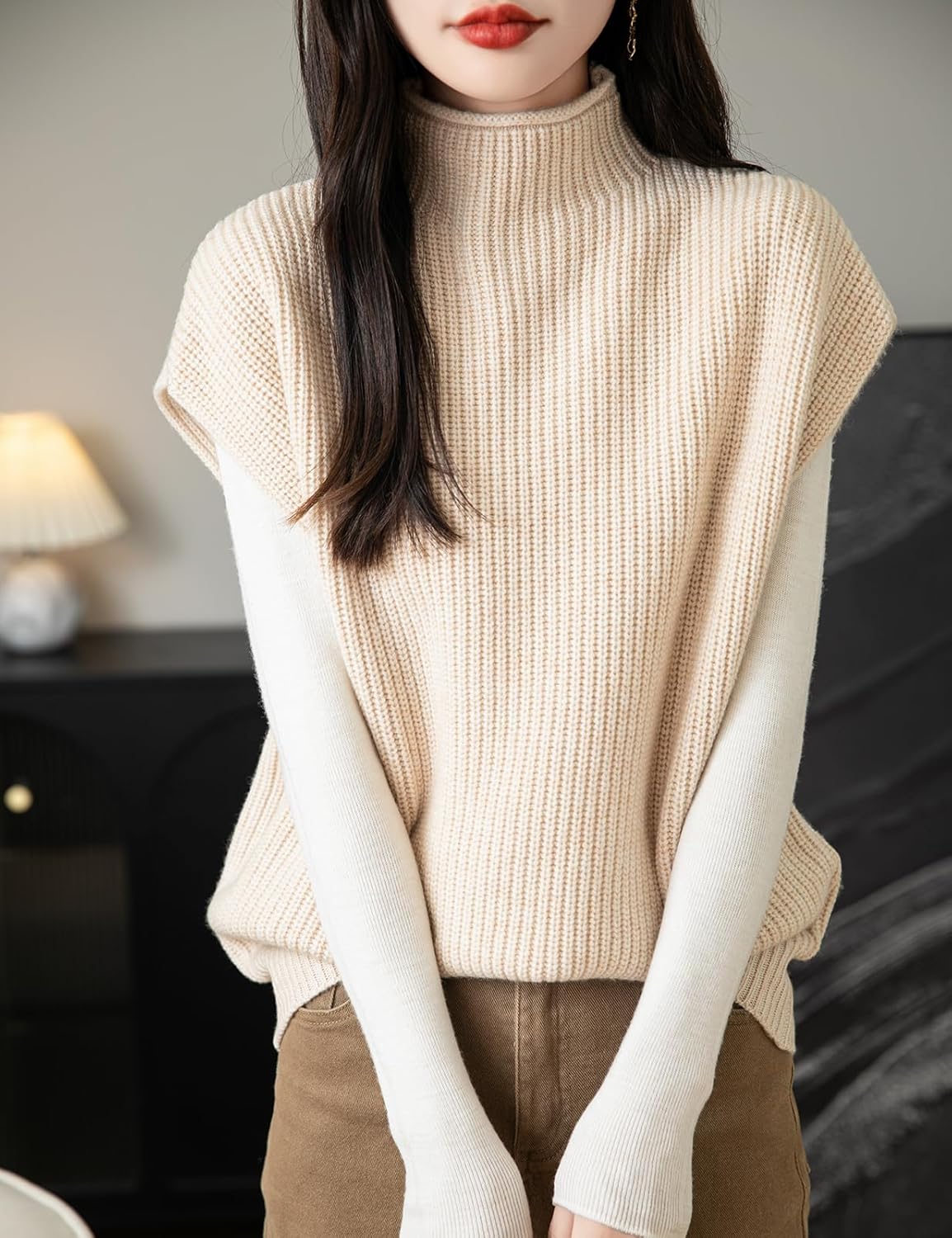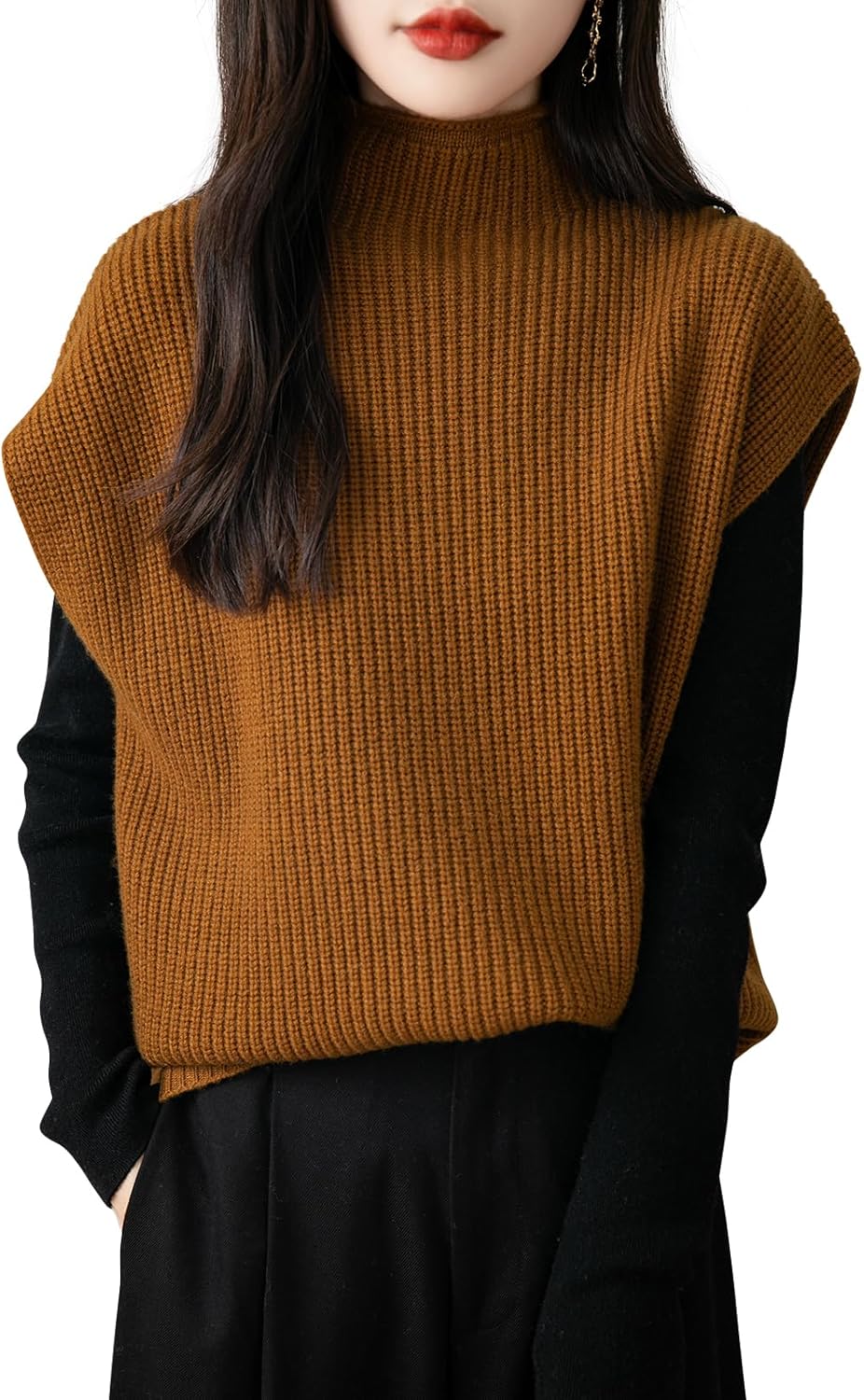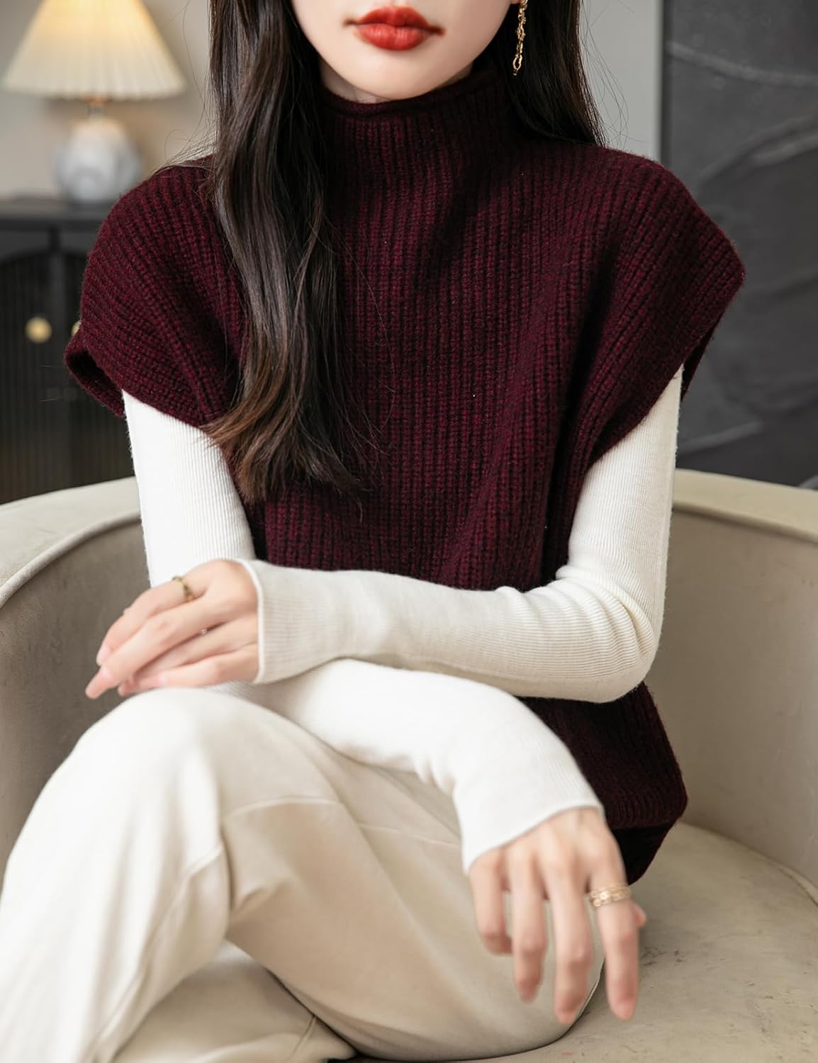 100% 메리노 울 캐주얼 터틀넥 니트 스웨터 조끼