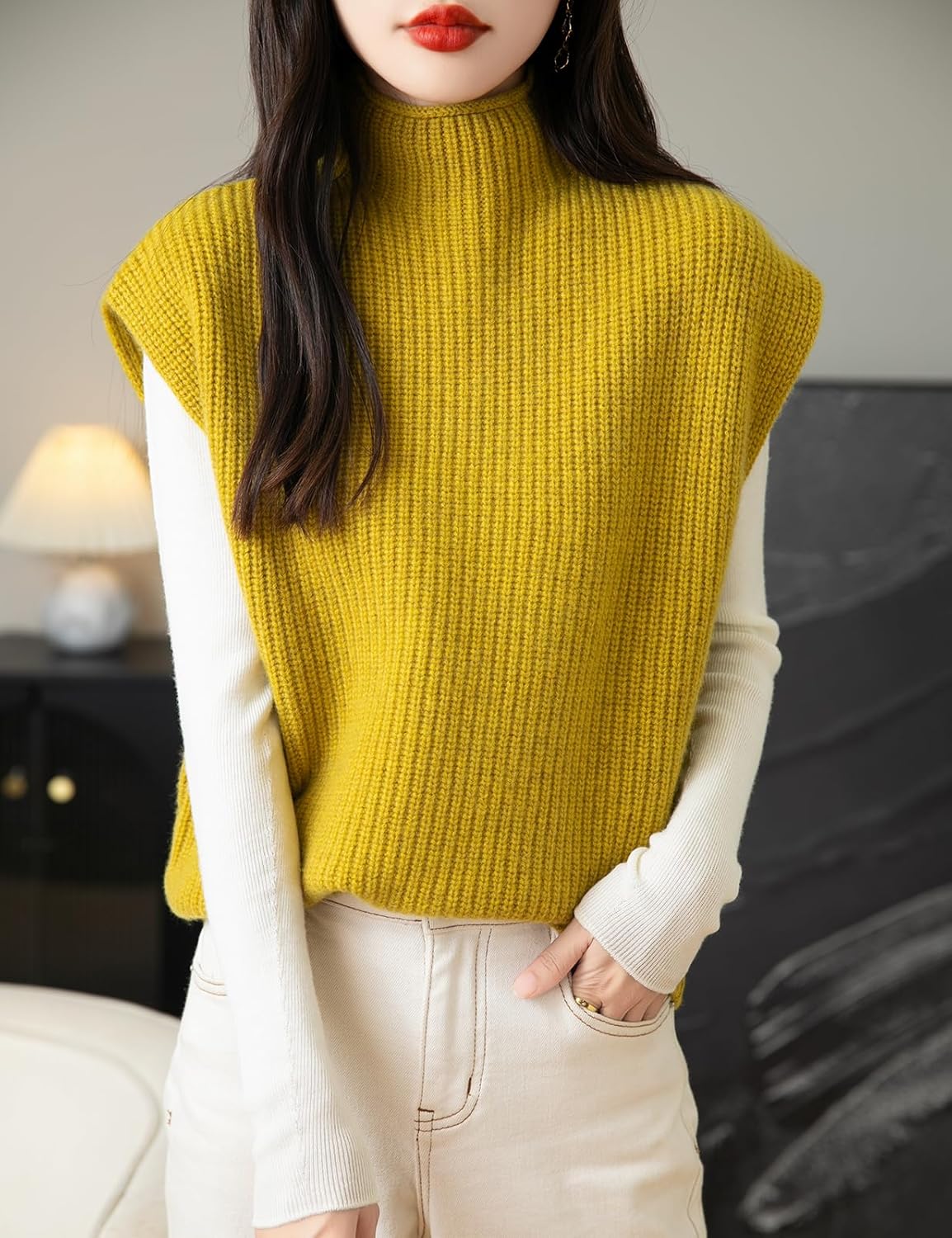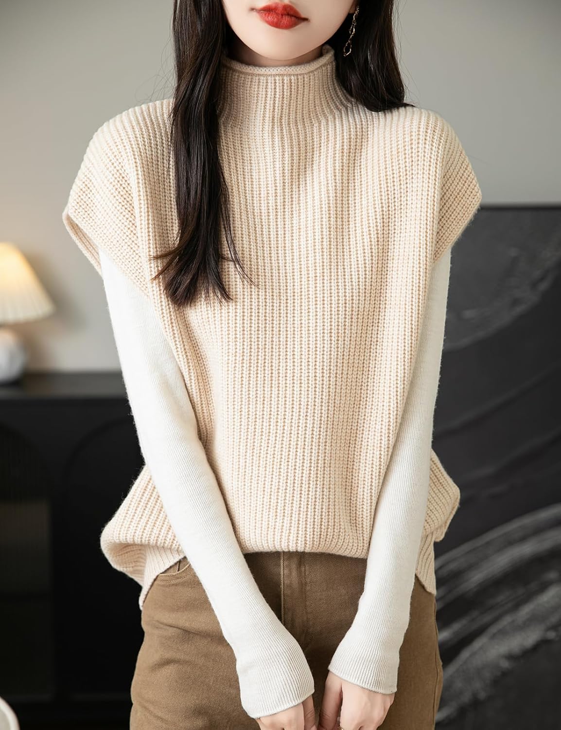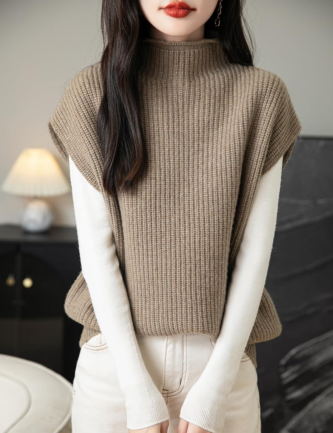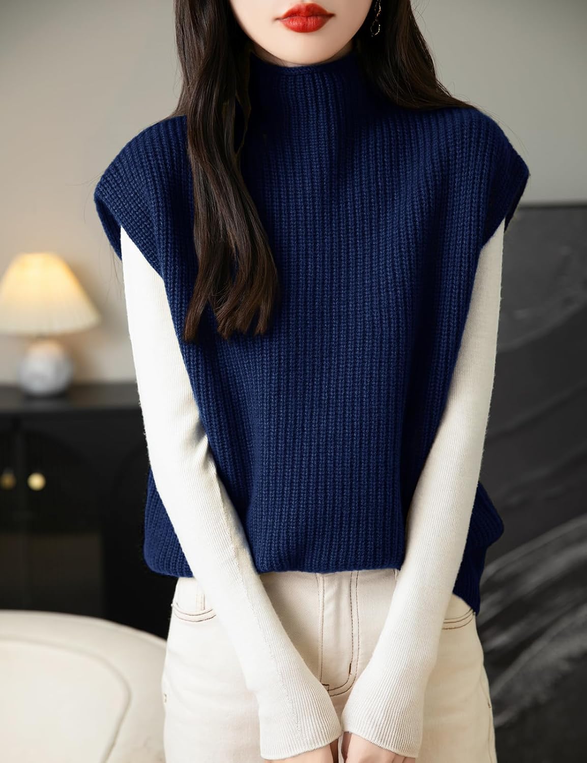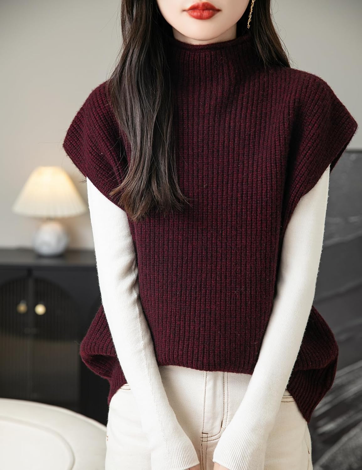 100% 메리노 울 캐주얼 터틀넥 니트 스웨터 조끼