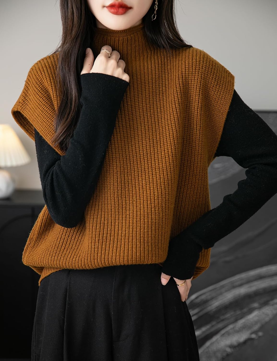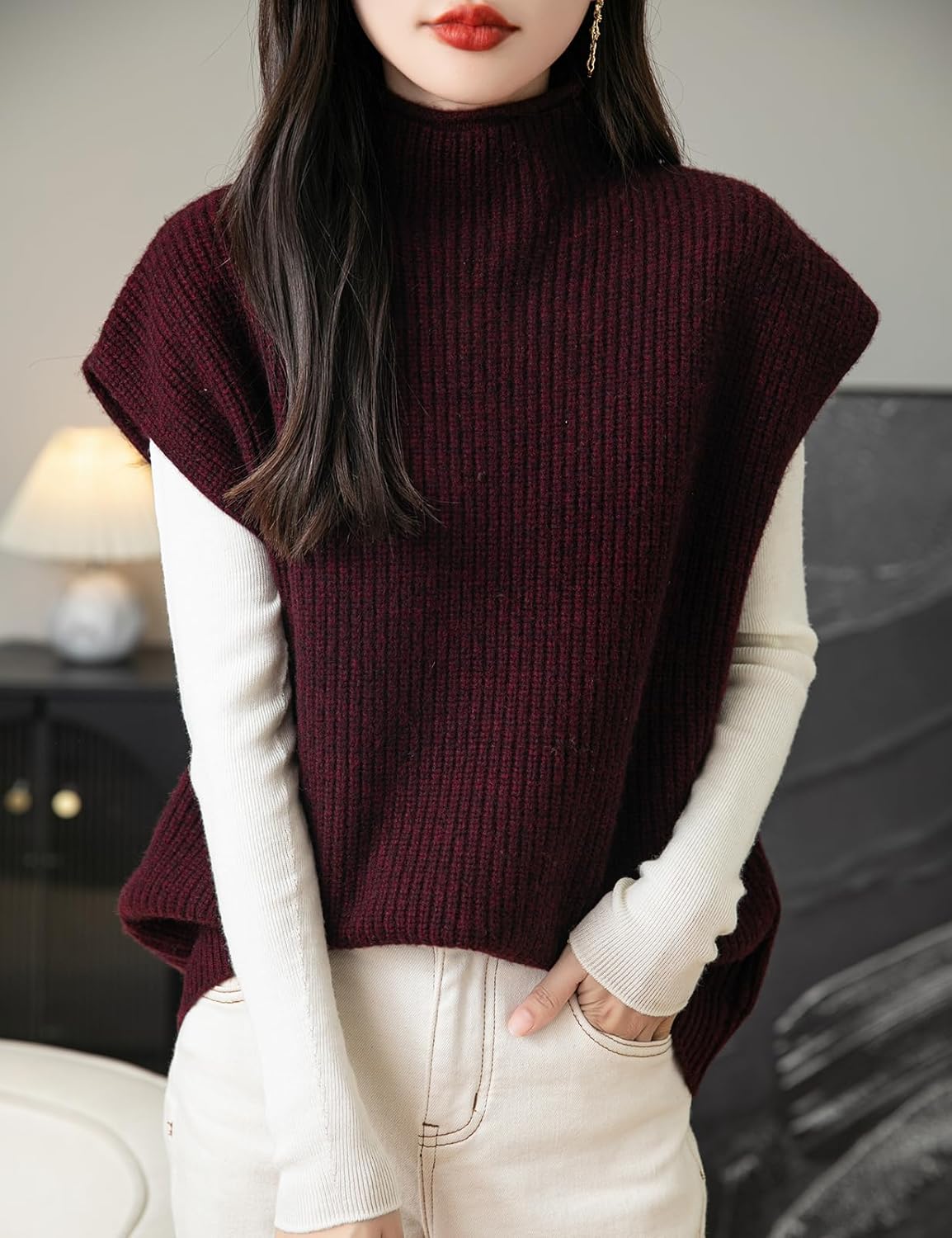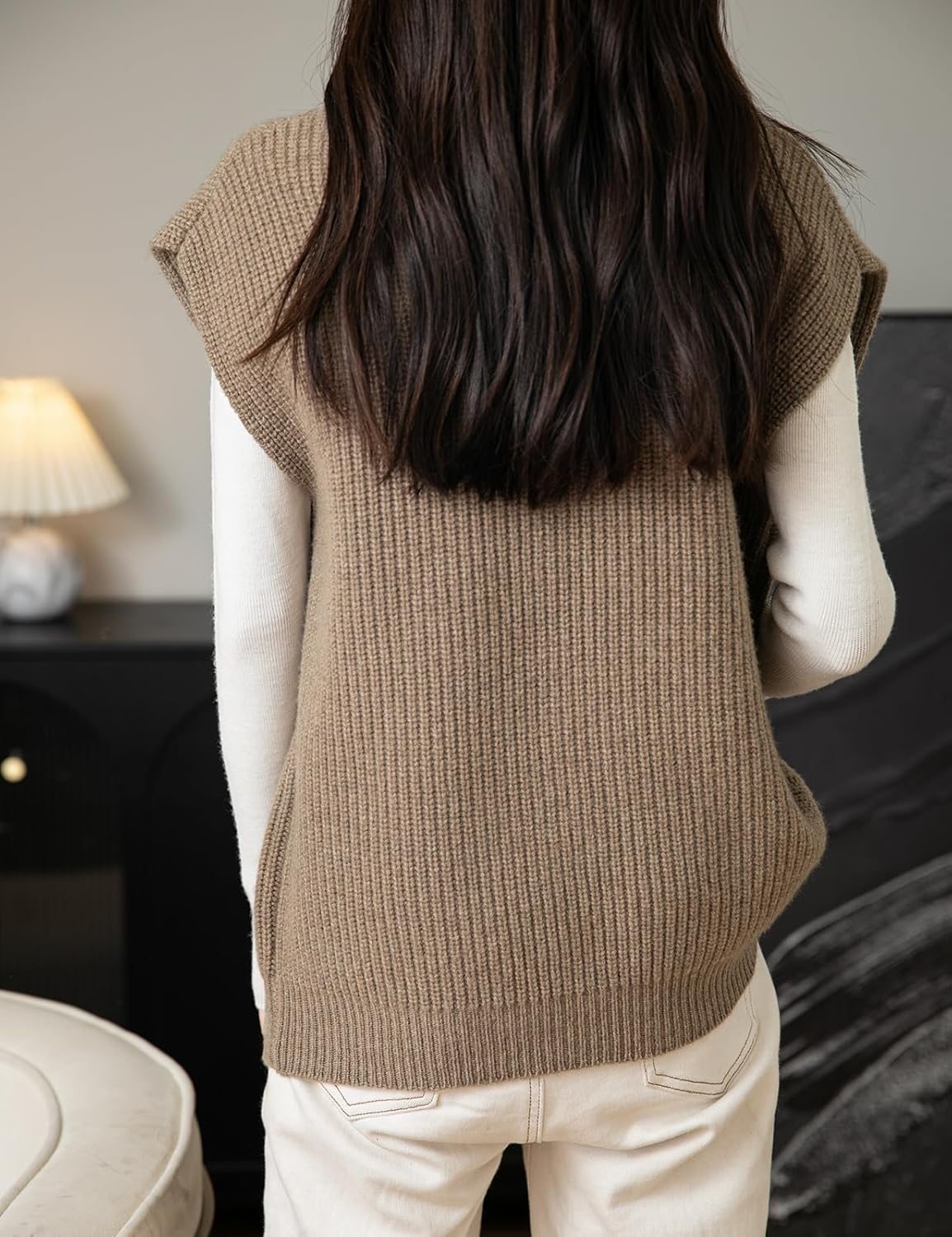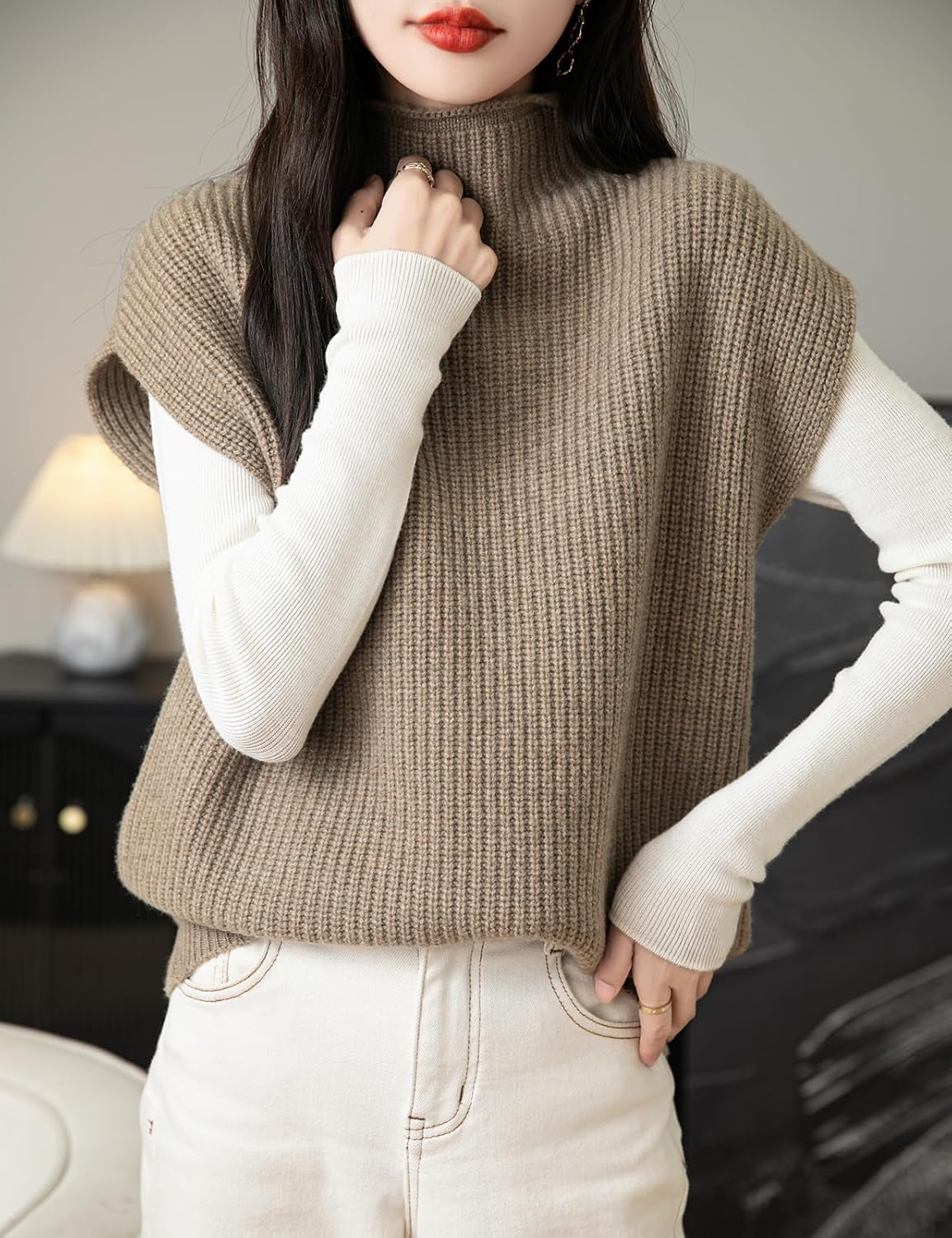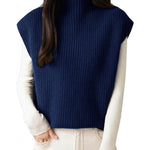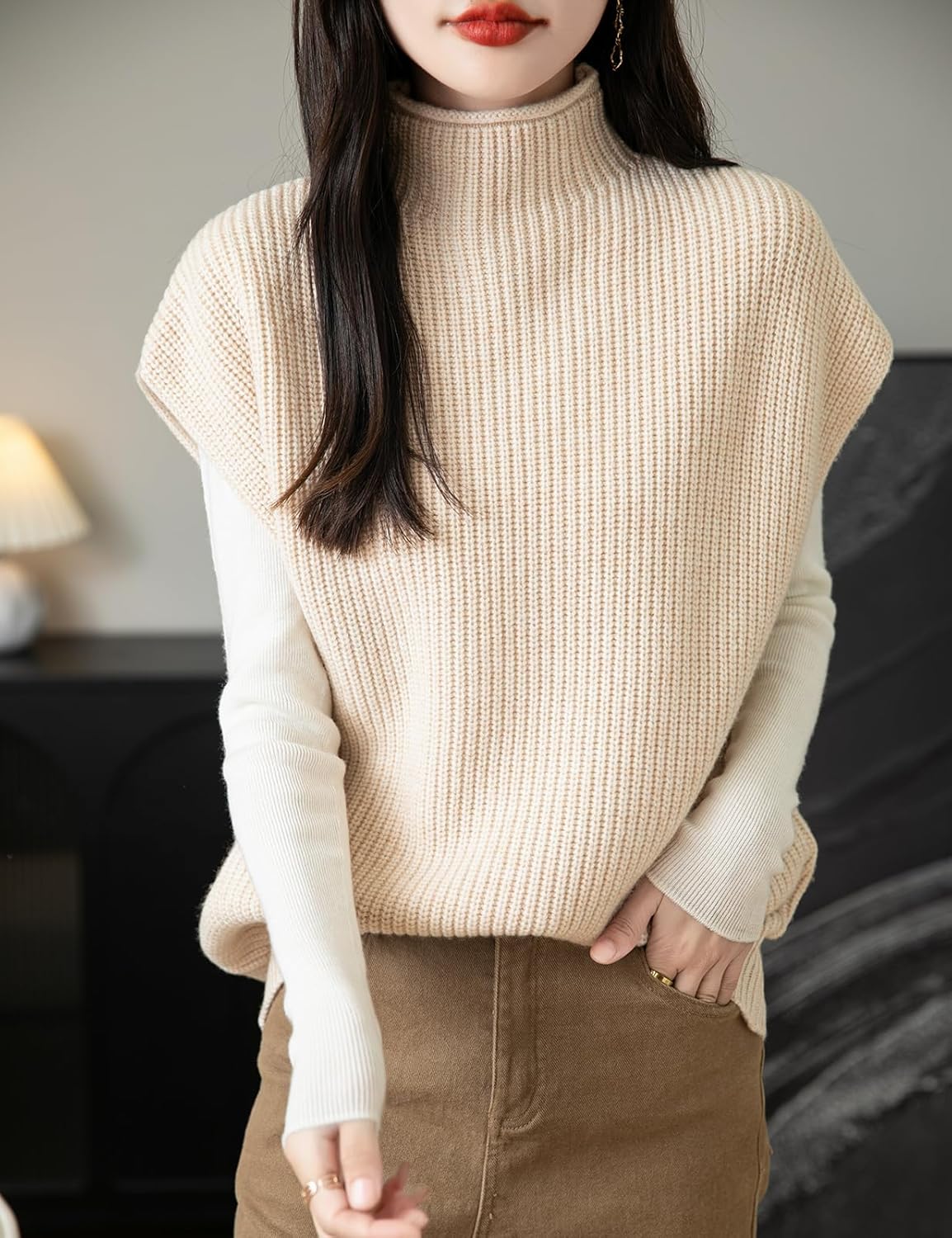 100% 메리노 울 캐주얼 터틀넥 니트 스웨터 조끼