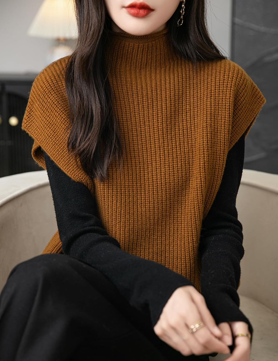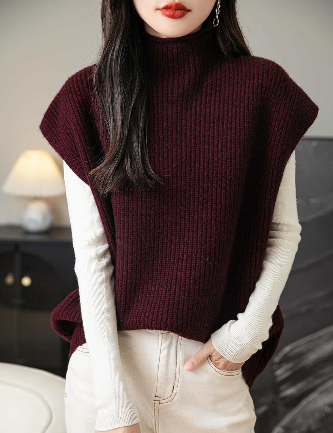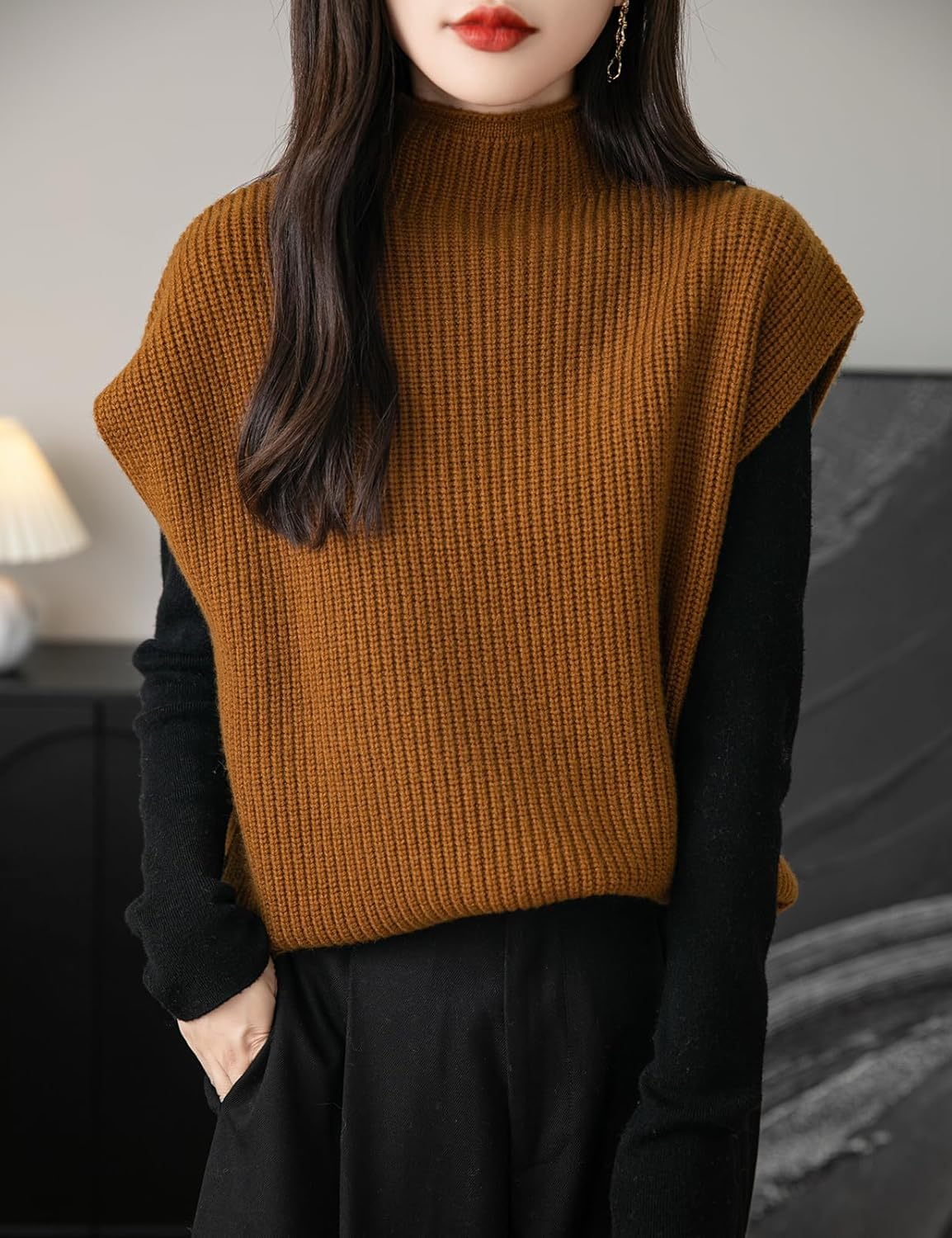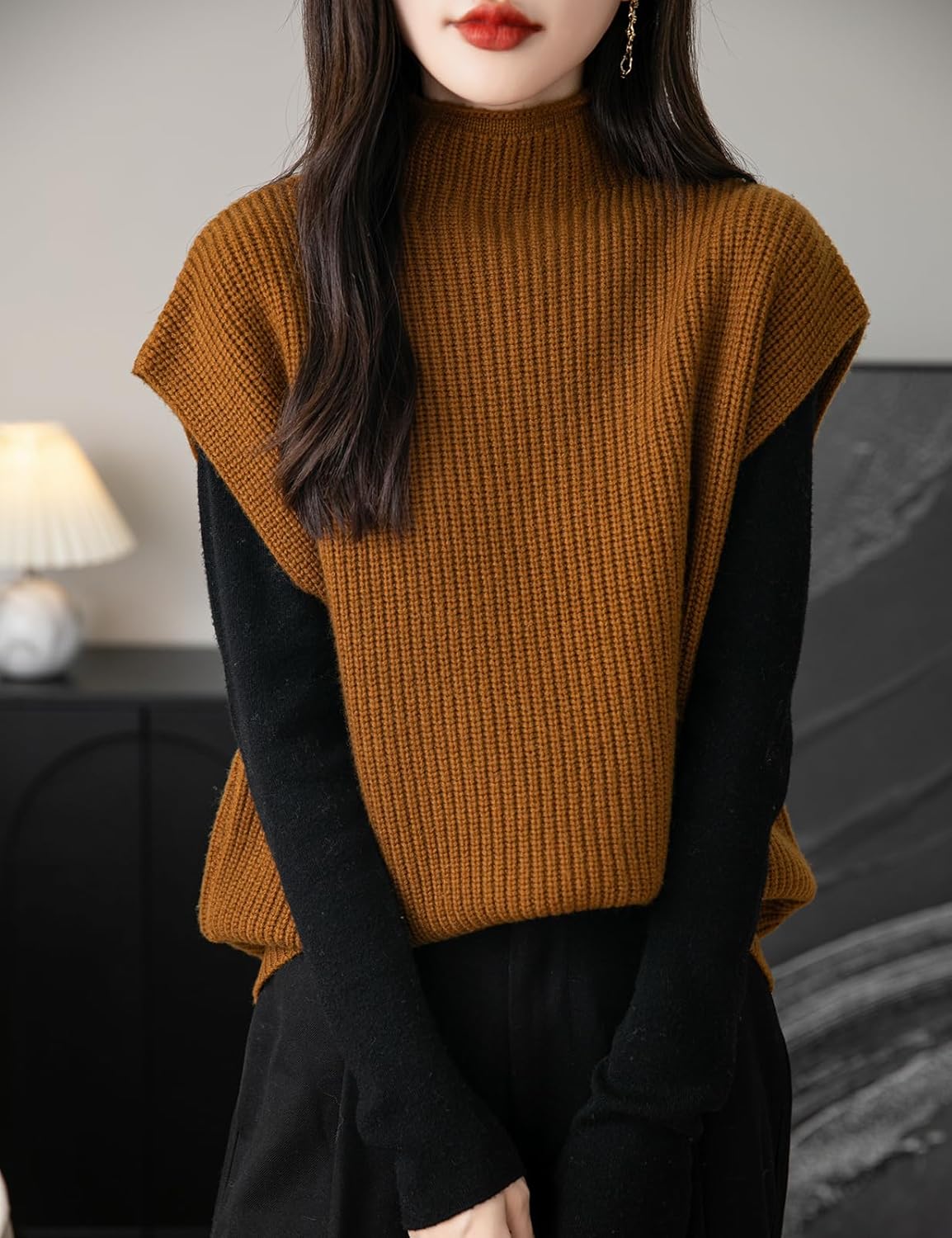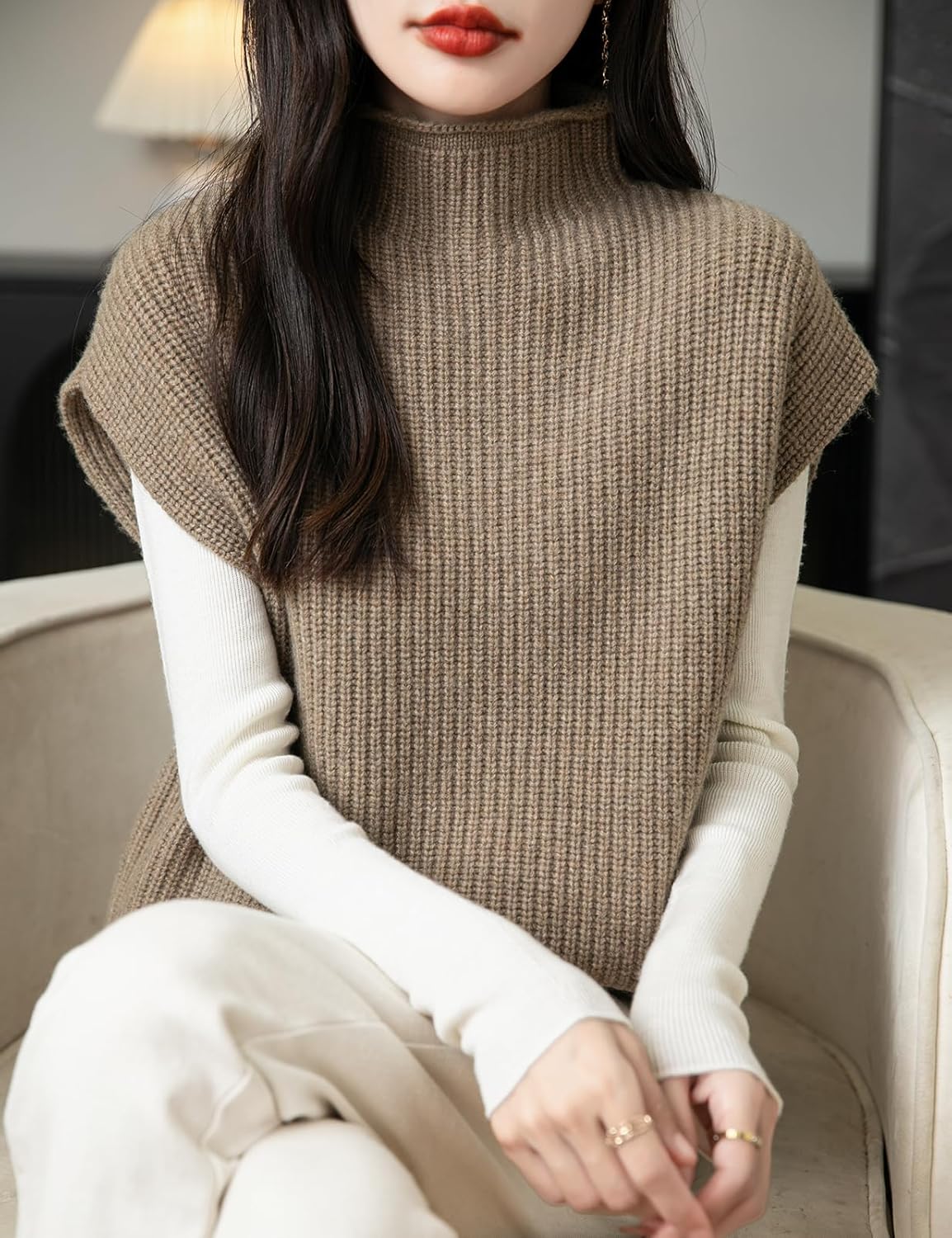 100% 메리노 울 캐주얼 터틀넥 니트 스웨터 조끼