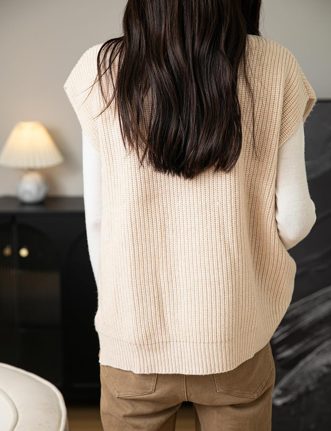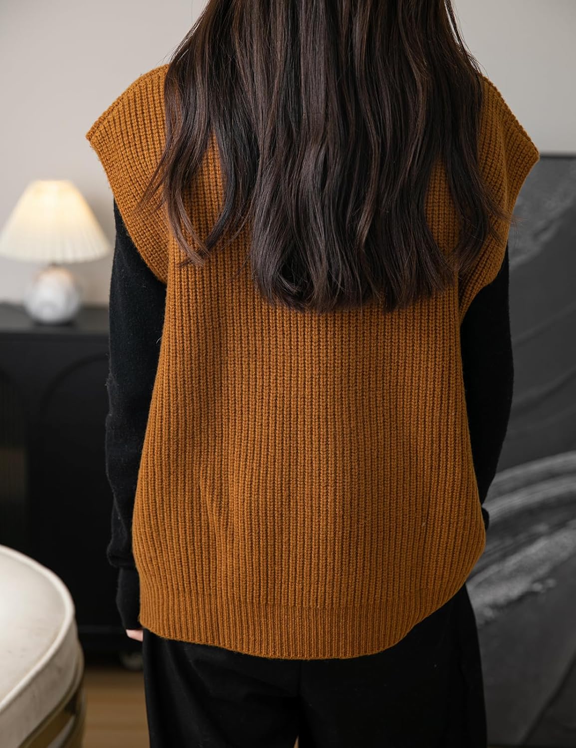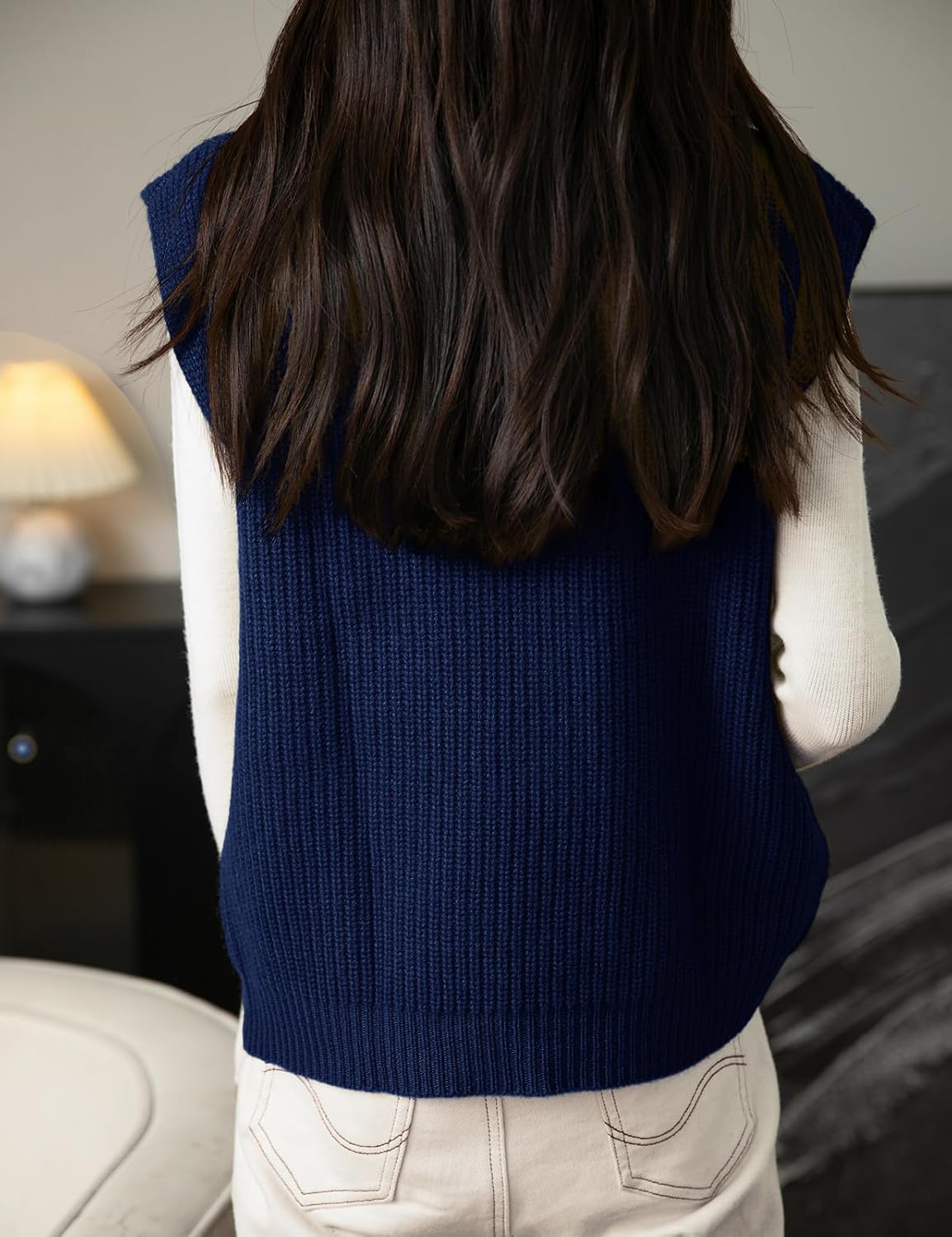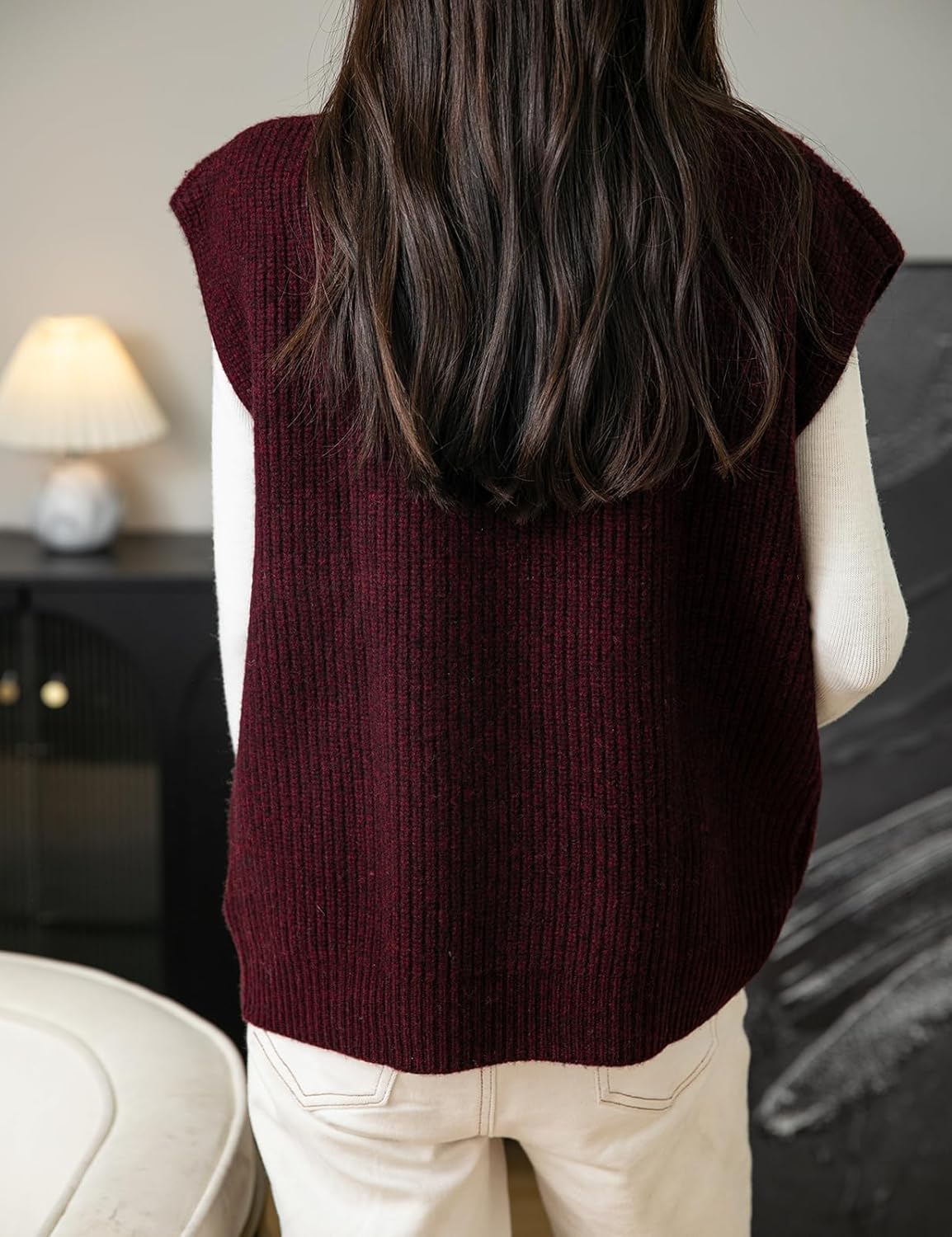 - 특징: 7게이지 고급 원단, 중간 두께. 일반 핏, 솔리드 컬러, V넥, 슬리브리스, 클래식 케이블 스티치, 버튼다운 디자인. 높은 신축성, 캐주얼 스타일. 가볍고 따뜻하며 부드럽고 착용감이 매우 편안합니다. 이 여성용 기본 슬리브리스 스웨터 베스트는 모든 여성에게 캐주얼하면서도 트렌디한 룩을 연출하는 필수 아이템입니다.