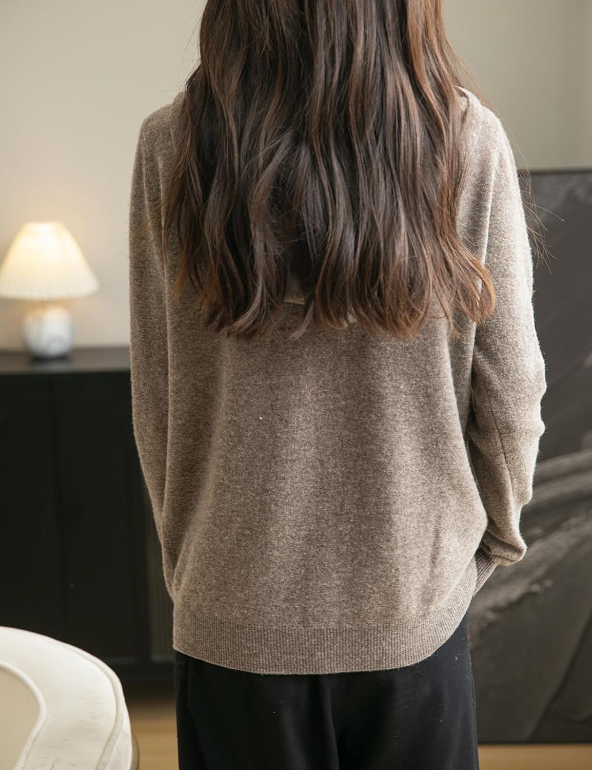 - 특징: 12게이지 고급 원단, 가벼움. 일반 핏, 단색, 긴소매, 1/4 지퍼 디자인, 골지 커프스. 높은 신축성, 캐주얼 스타일. 가볍고 따뜻하며 부드러워 착용감이 매우 편안합니다. 세련된 스탠드 칼라는 목을 따뜻하게 유지해 주고, 지퍼를 아래로 내릴 수 있으며, V넥 디자인은 매력적인 목 곡선을 강조하여 여성스러움을 극대화합니다.