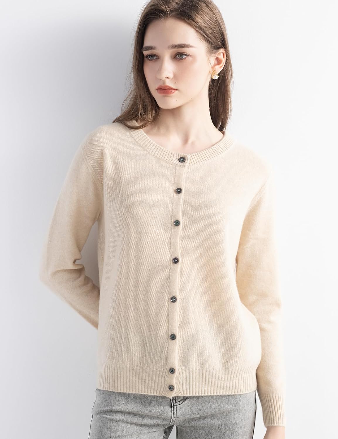 몽골리안 캐시미어 카디건 크루넥 스웨터