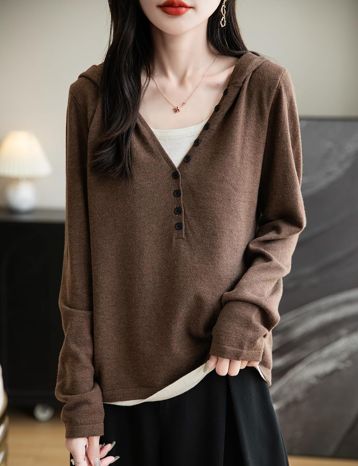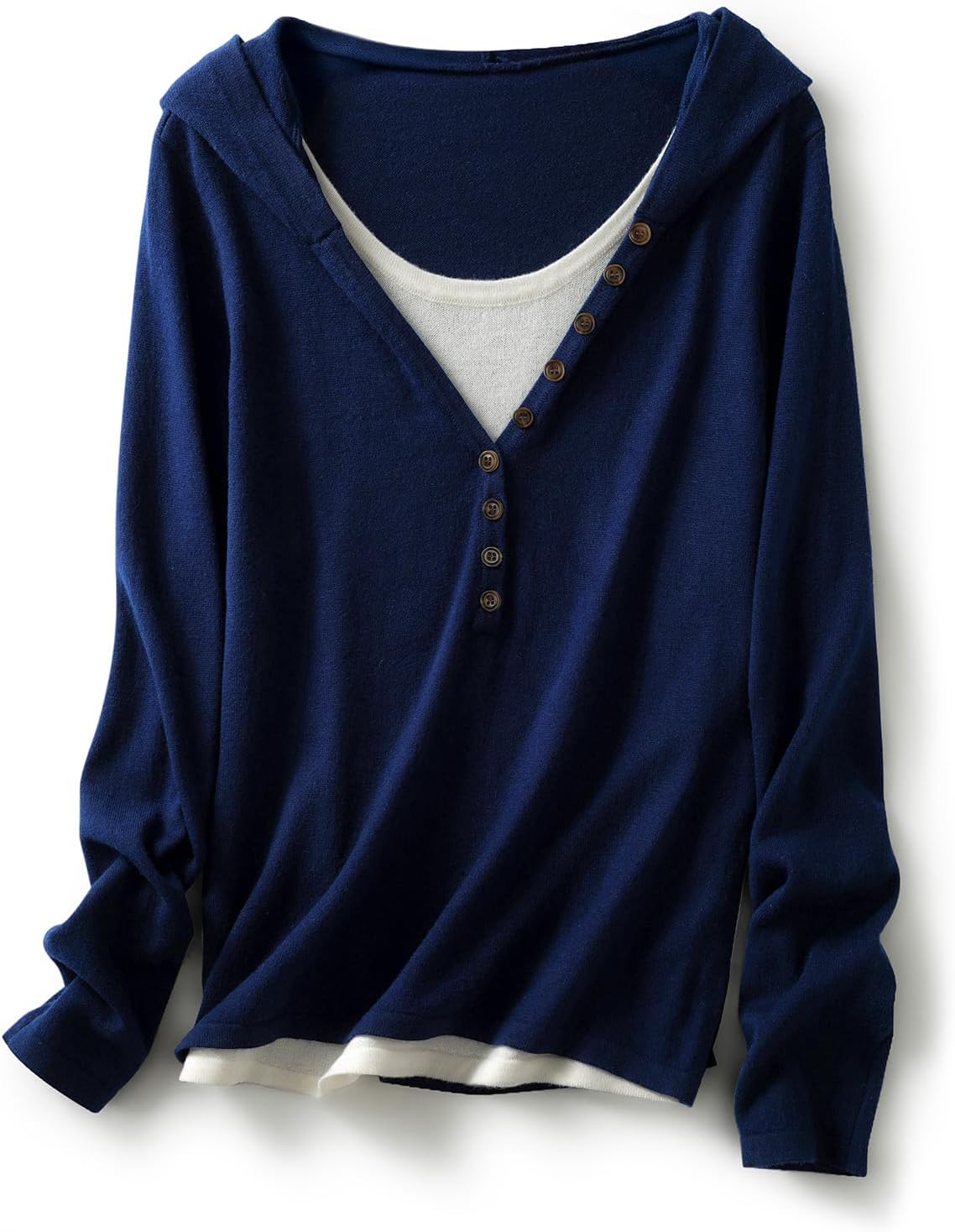 메리노 울 블렌드 컬러 블록 페이크 투피스 니트 후디