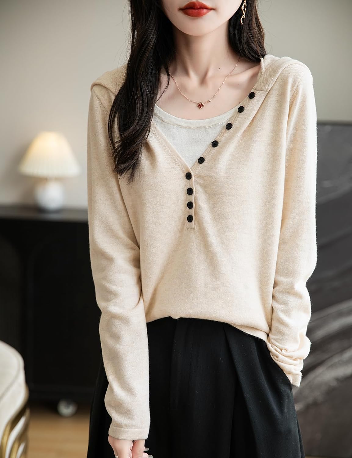- 특징: V넥 반소매 스웨터, 레귤러 핏, 중간 두께. 이 스웨터는 고급 무봉제 니트 기술을 적용하여 재단이나 봉제선이 없고, 부드럽고 편안한 라인으로 더욱 편안하게 착용할 수 있으며, 착용 시 조이거나 피부에 닿는 느낌이 들지 않습니다. 봄, 가을, 겨울 옷장의 필수 아이템입니다.